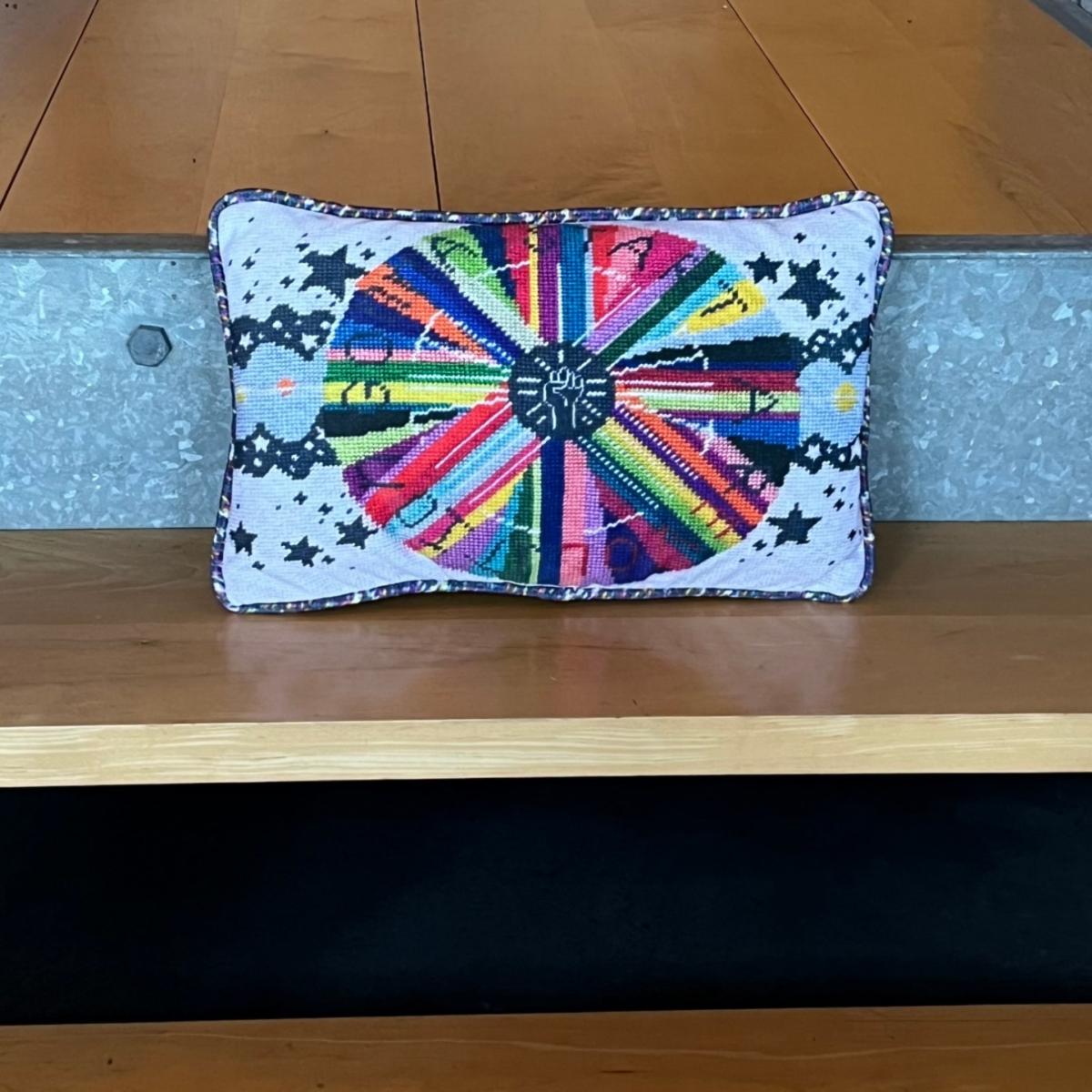 Not needlepoint This original design was influenced by many factors, all trending now but truly timeless in message: supporting minorities, finding your own power or showing off your love of music! John and Yoko, anybody? Or Oasis? custom made with crazy heart and soul by local artisans delivered new to you in eco-friendly packaging