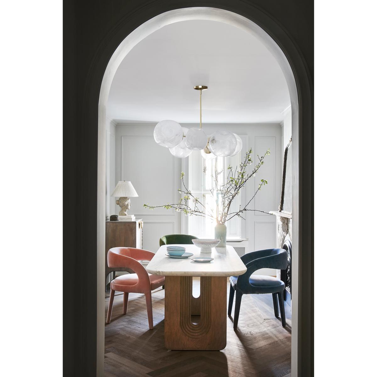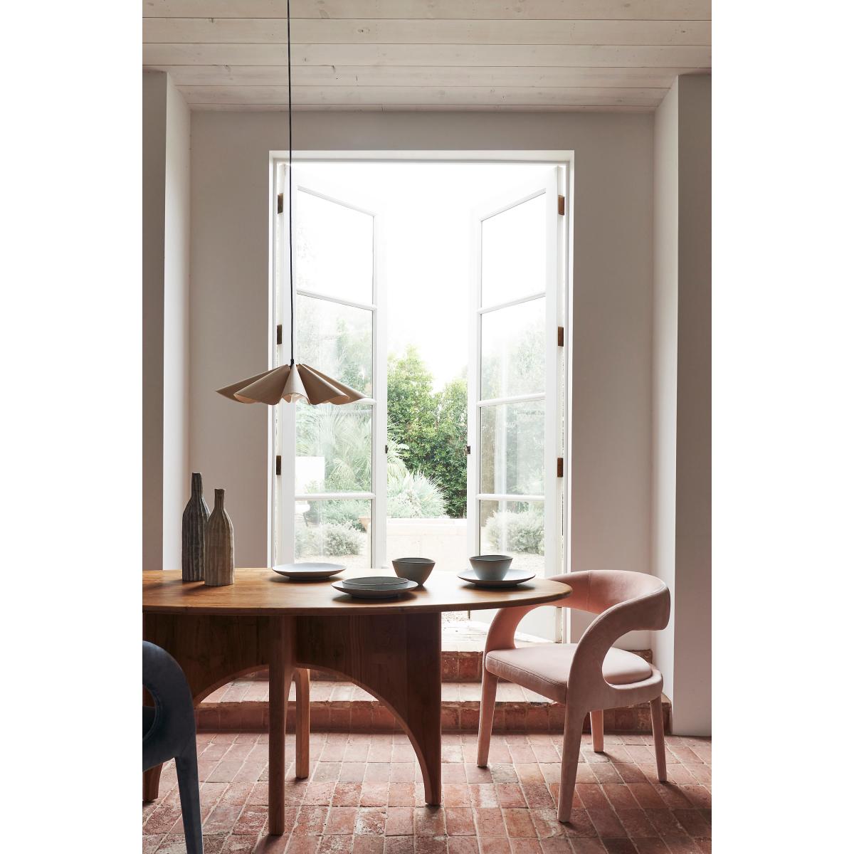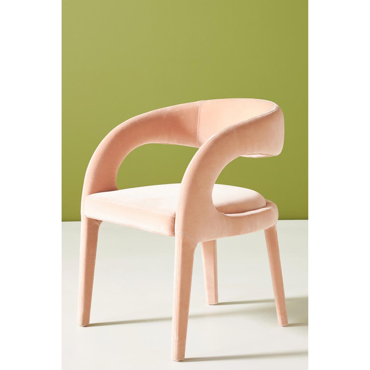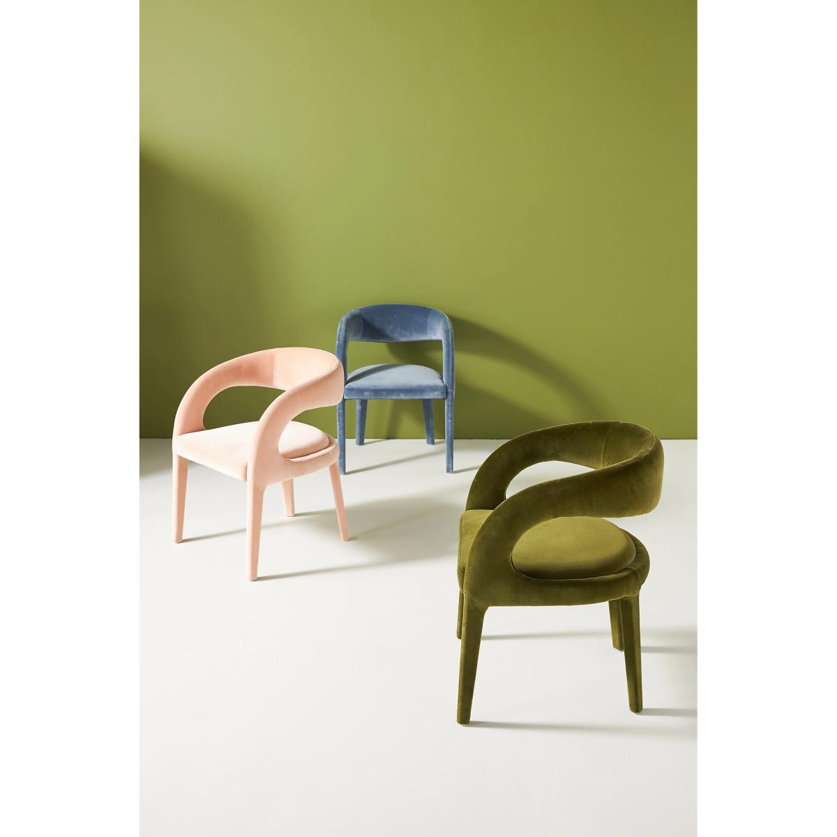 Fully upholstered in *soft-to-touch* velvet, this sculptural dining chair brings character and charm to your ta * Velvet upholstery; cotton, polyester * Webbed seat construction; foam and fiber fill * Poplar wood frame * Professionally clean; cleaning code S * This piece is intended for indoor use * No assembly required * Imported