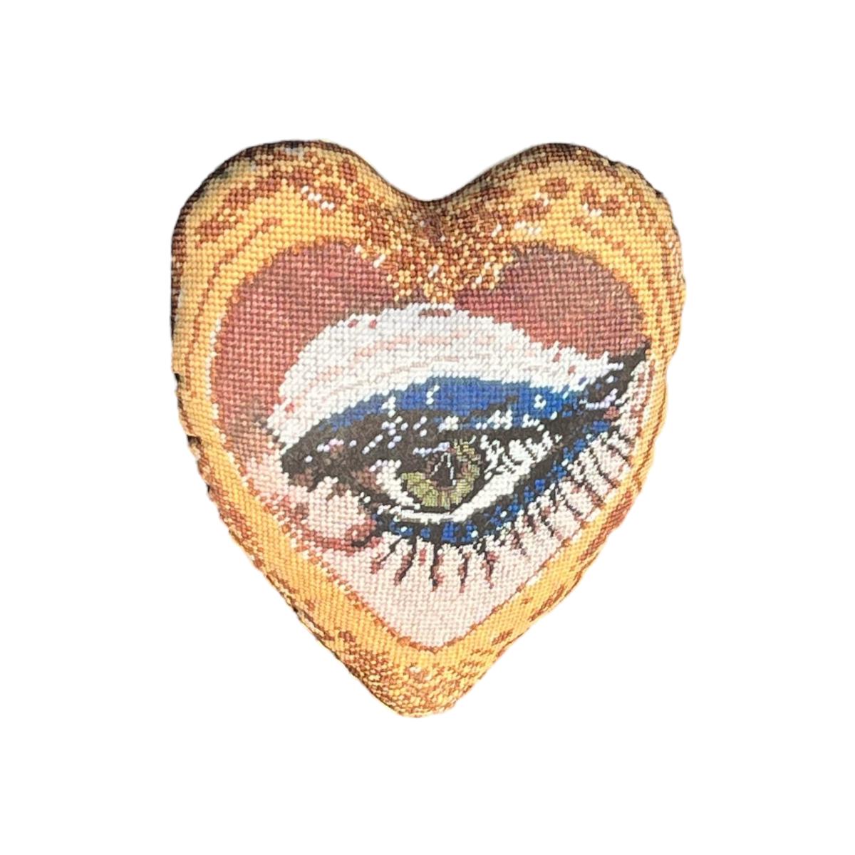 not needlepoint Our fabulous sculpted heart pillow is a collaboration with the most darling "Haricot Vert." "Heartfelt Glimpse" possesses a sultry, glitzy bohemian-chic vibe. She's a dreamy paean to lost love and romantic musings. 12 x 12 pillow face is created in private label matte velvet, buttery-soft ivory designer velvet reverse new blended down insert hand-stitched closed custom made with crazy heart and soul delivered new to you in eco-friendly packaging dry clean
