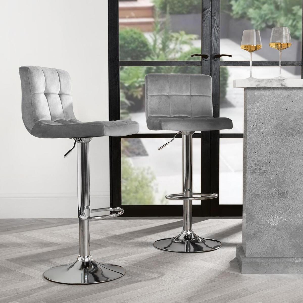Enhance your home with the adjustable velvet bar stools. These elegant and modern stools feature plush velvet upholstery, providing a touch of luxury and comfort. The adjustable height mechanism ensures versatile seating options, perfect for any counter or bar area. The sturdy metal base guarantees stability and durability, while the stool's foot rest makes these a comfortable sitting experience. Ideal for both casual dining and entertaining guests, these bar stools bring a sophisticated flair to any contemporary space.