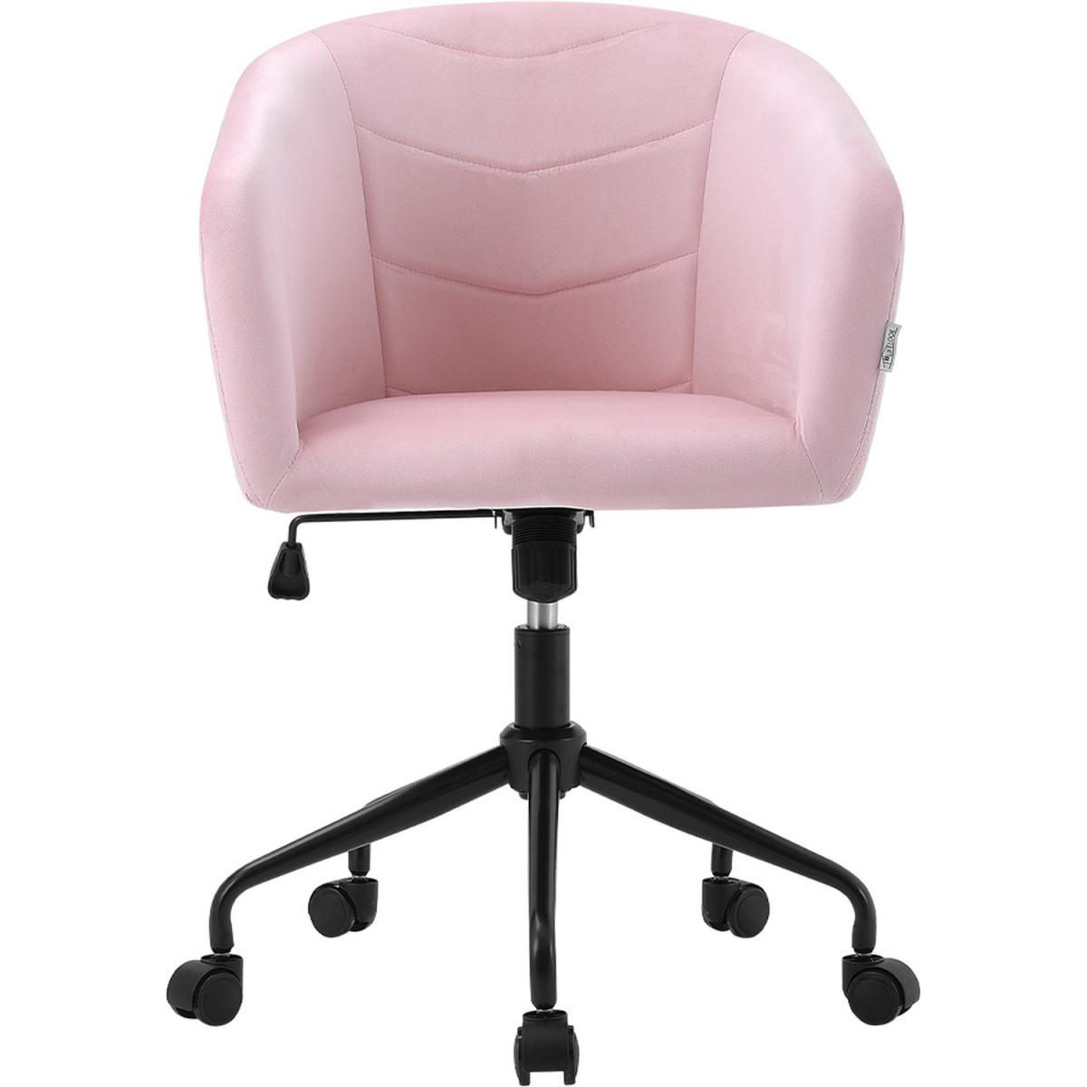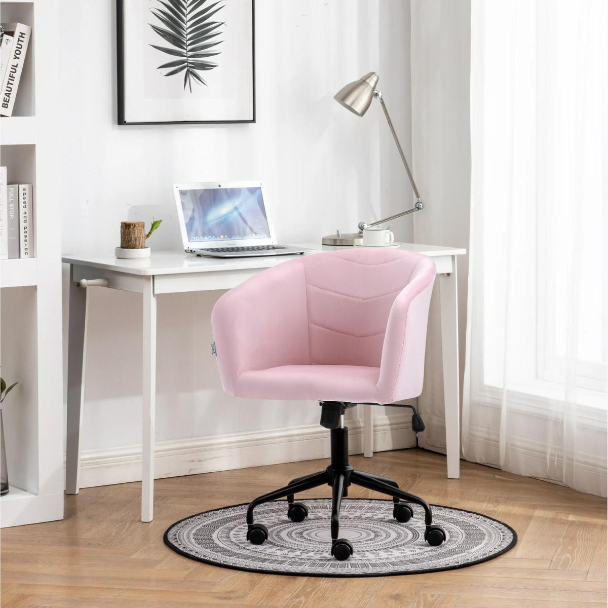 Elevate your workspace with the livingandhome Pink Velvet Swivel Office Chair - a harmonious blend of comfort and style. Super soft velvet upholstery will make long work days more enjoyable with this office chair, it's ergonomically designed for optimal back support and sitting comfort, and it's height-adjustable,with a sturdy 5-caster base, you can easily slide the chair around the office for discussions, ideal for productivity and aesthetics.