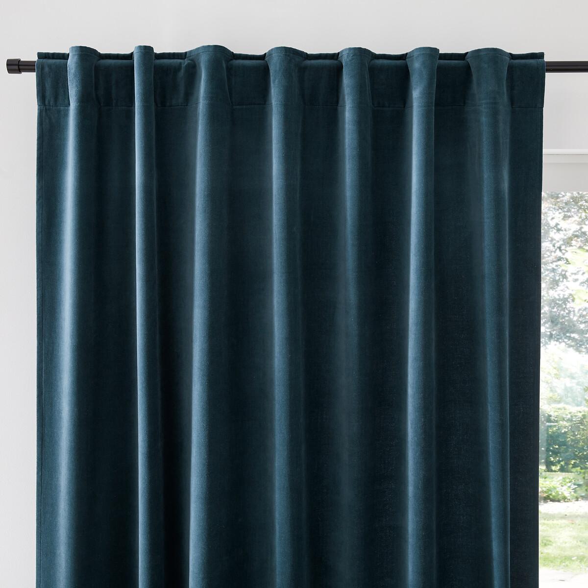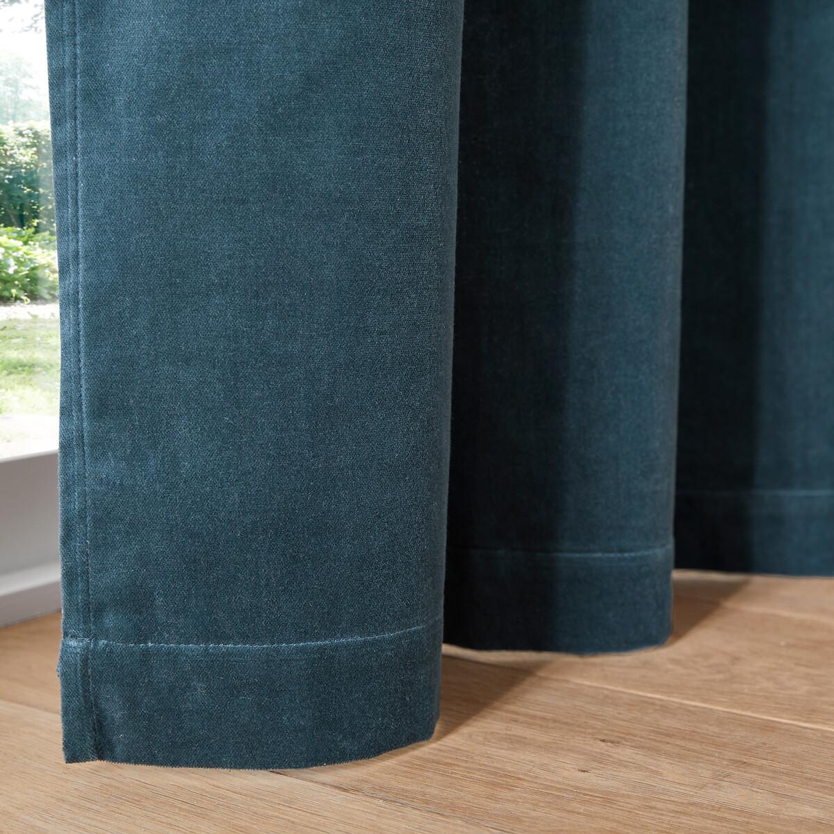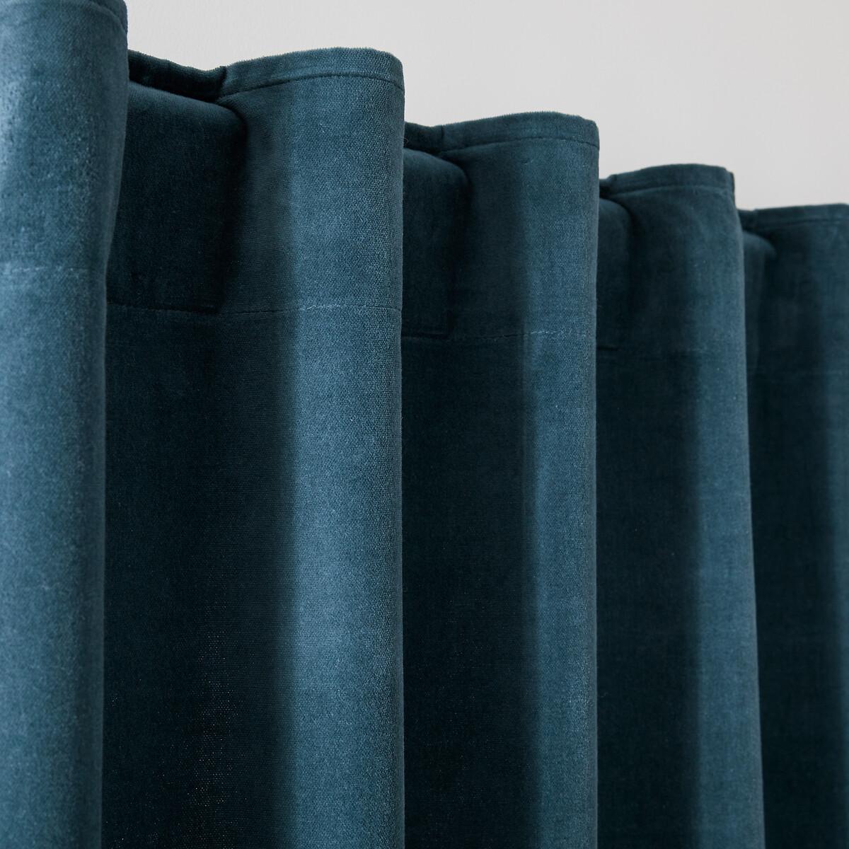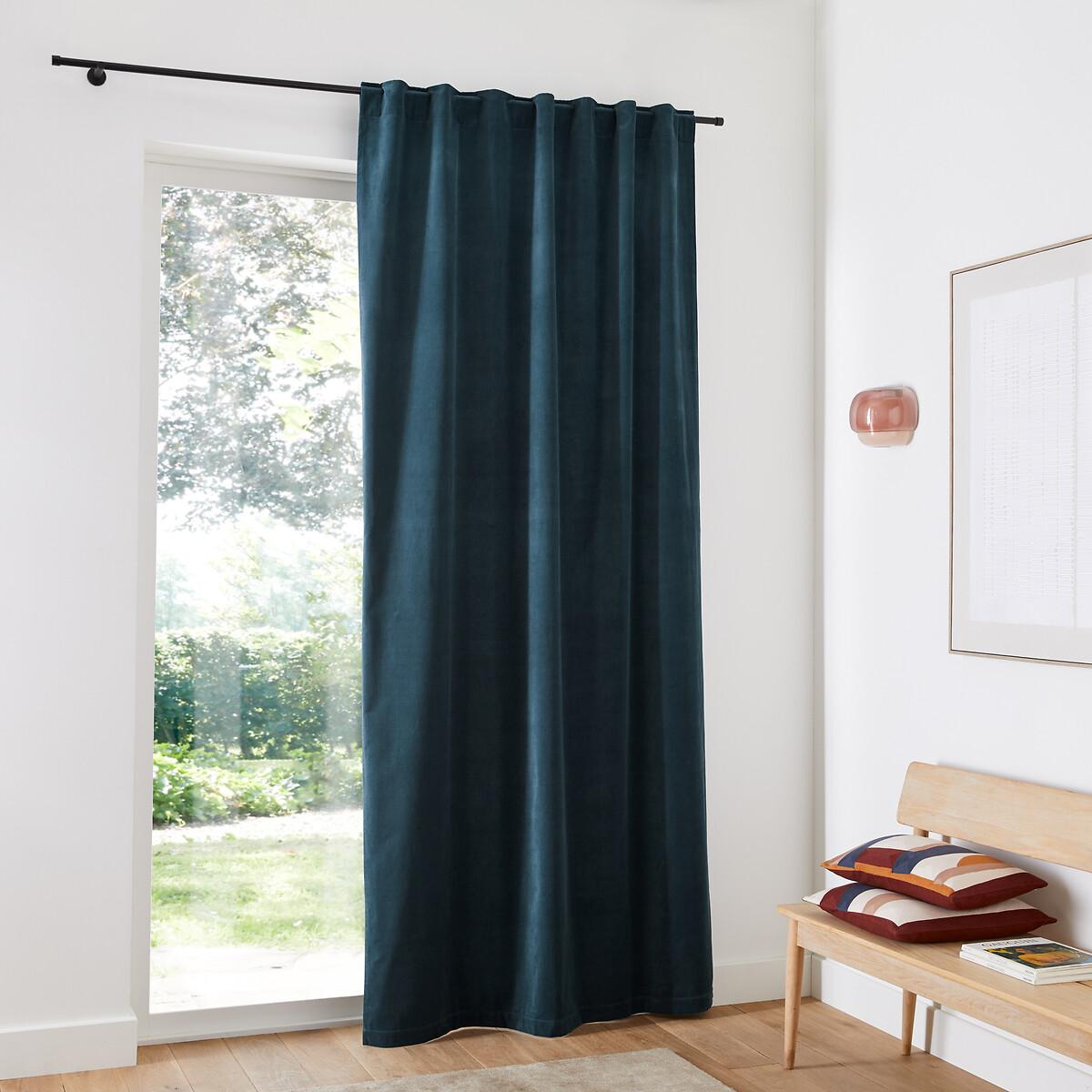 Bring colour, softness and style to your interior with this velvet curtain,: an excellent cut and superior finish for a truly luxury product!Warm and elegant, velvet is a soft, silky fabric with a tactile appearance. The tabs give a regular wave to the curtain and an impeccable straight fall. Hidden behind the fabric for an impeccable finish, they also hide the rod. Product Details • Screening • 100% cotton, 230g • Velour • Top finish : hidden legs • Finished bottom :Plain hemmed edging. To help you in the choice and maintenance of your curtains, do not hesitate to consult our guide by typing "Curtain Buying Guide" in our search engine on the site. Care Advice • Machine washable at 30°C • Maximum shrinkage after washing : Approximately 5 to 7%. Fabrics made from natural fibres may shrink in the first wash. Always wash your curtains before making any alterations. • Do not tumble dry • If you don't need to iron them (linen curtains, Voile Panel...), let the curtains air dry by hanging them immediately after washing, making sure to spread them out to their full width. • If you want to iron your curtains, we recommend using a low-temperature steam iron or a steamer. Dimensions • Drop 180 x W135cm • D220 x W135cm • D260 x W135cm • Drop 300 x W135cm • Drop 350 x W135cm • OEKO-TEX® Standard 100. Standard 100 certification by OEKO-TEX® tests textile products for harmful substances via an independent, international label.