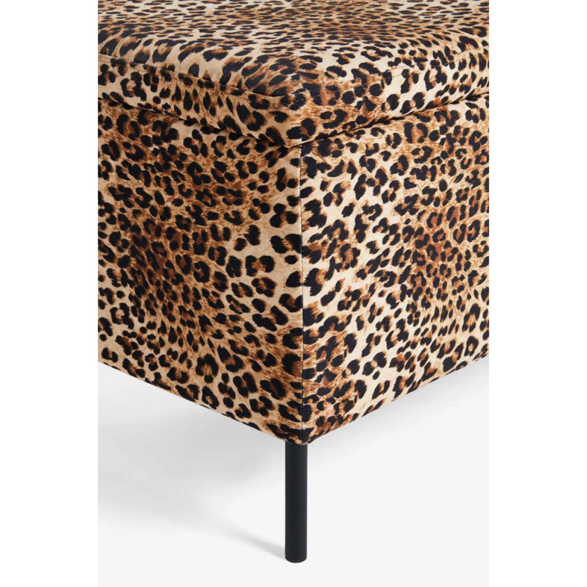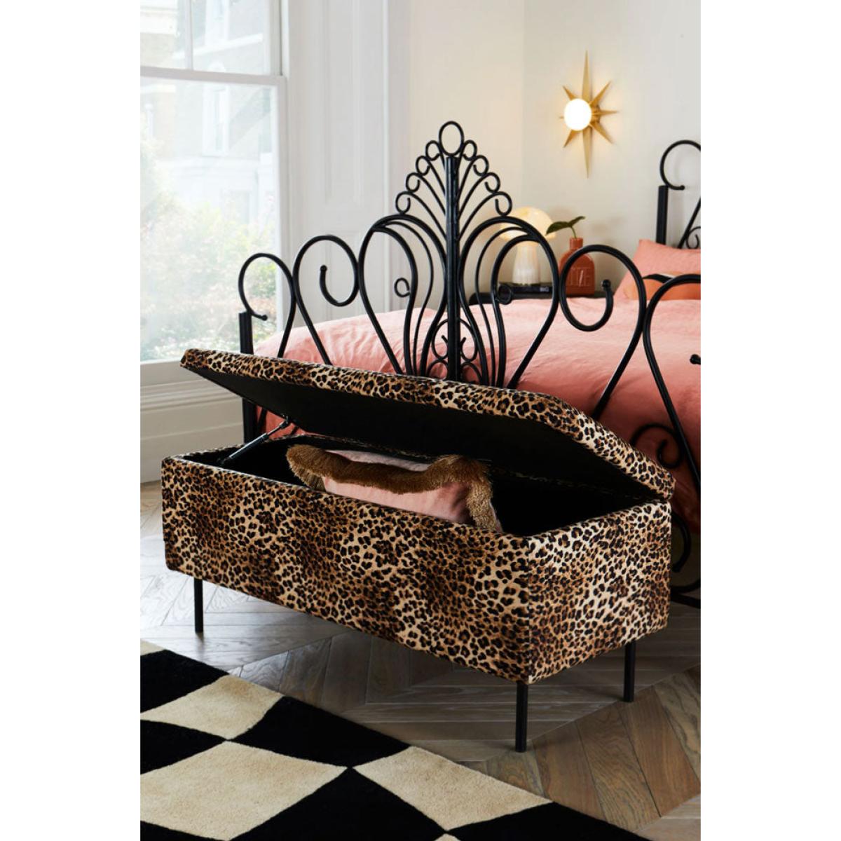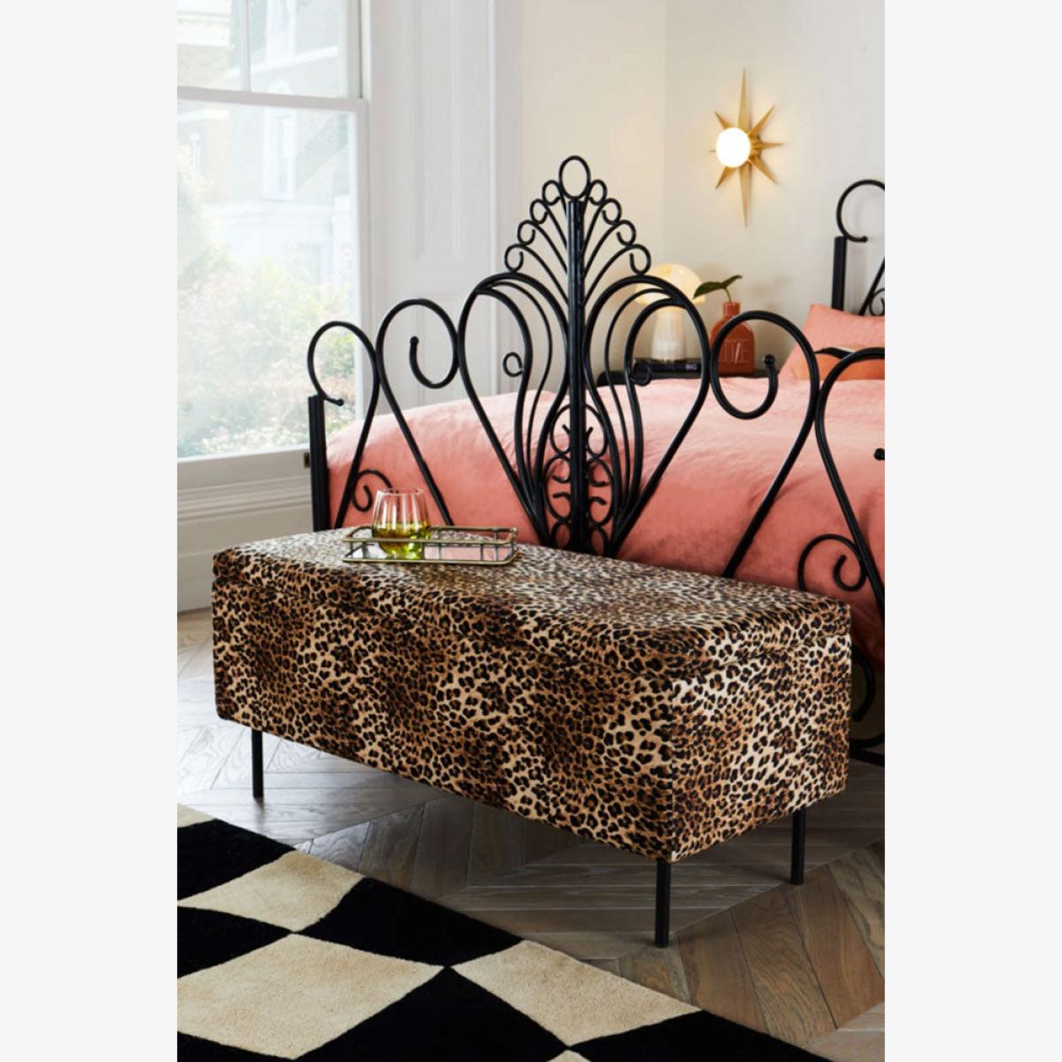 Meet the storage furniture your bedroom’s been begging for – our Velvet Leopard Print Ottoman Storage Bench. This is the epitome of storage solutions, with the kind of attitude that turns a bedroom into a boudoir. Wrapped in sumptuous velvet with a fierce leopard print pattern, this footstool with storage is made to sit proudly at the foot of your bed. This beauty is certainly not just a pretty face, just lift that luxe lid and voila – secret storage space for your spare throws, winter jumpers, or those impulse-buy cushions you can't stop collecting. So, whether you’re going full-on glam or just adding a bit of sass to your space, this Ottoman bench is here to bring the drama and keep your clutter under wraps. Stylish, functional and perfectly wild – what more could you want? - Velvet Leopard Print Ottoman Storage Bench - Measures:W110cm x D45cm x H47cm - Leg H: 15cm - Materials: Pine, Plywood, Foam, Steel & Polyester