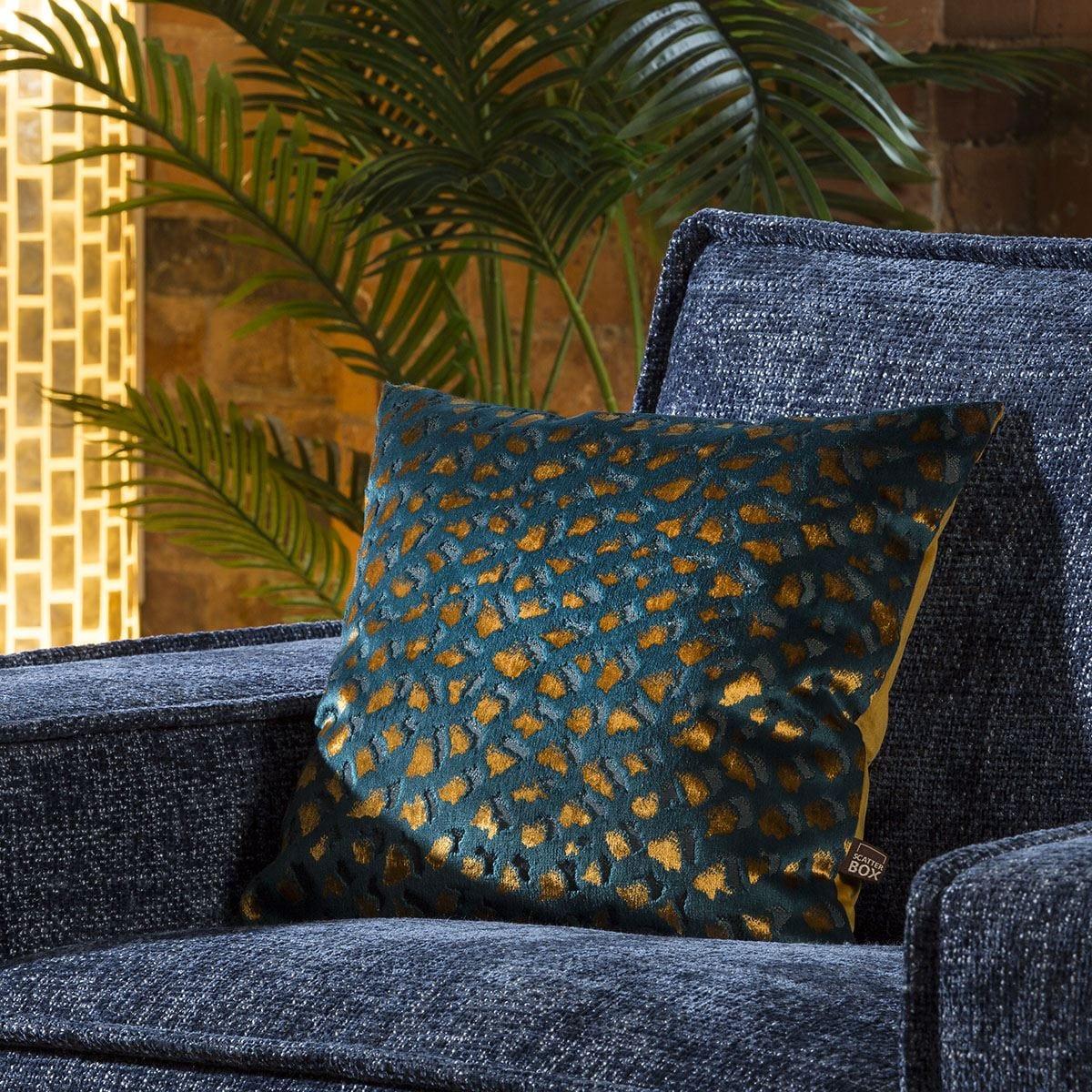 Bring your home to life with a piece of art for your armchair or sofa The fabrics and colours are bang on trend and make the perfect addition to any lounge or bedroom. Care instructions: Dry clean only, remove inner filling. Revive your soft furnishings with a luxurious cut velvet cushion. The Leopard cushion features a sumptuous teal & gold design finished with a gold velvet reverse. W43cm D15cm H43cm Top off your living decor with this luxury accessory Premium Scatter Cushion