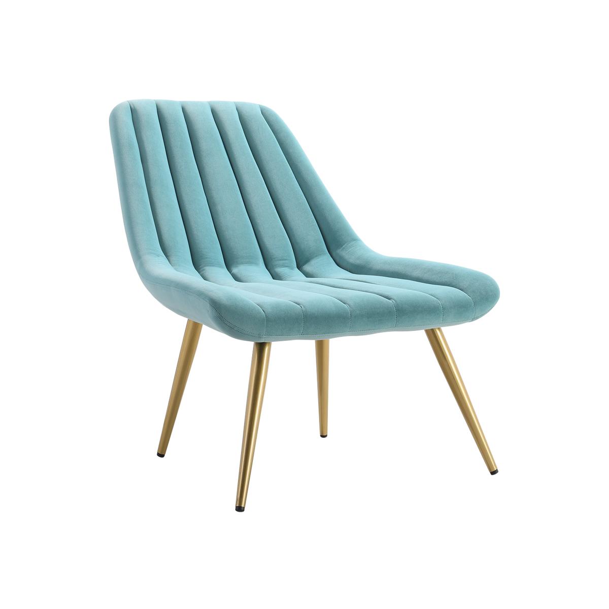 Velvet Lounge Chair with Gold Metal Legs - Blue