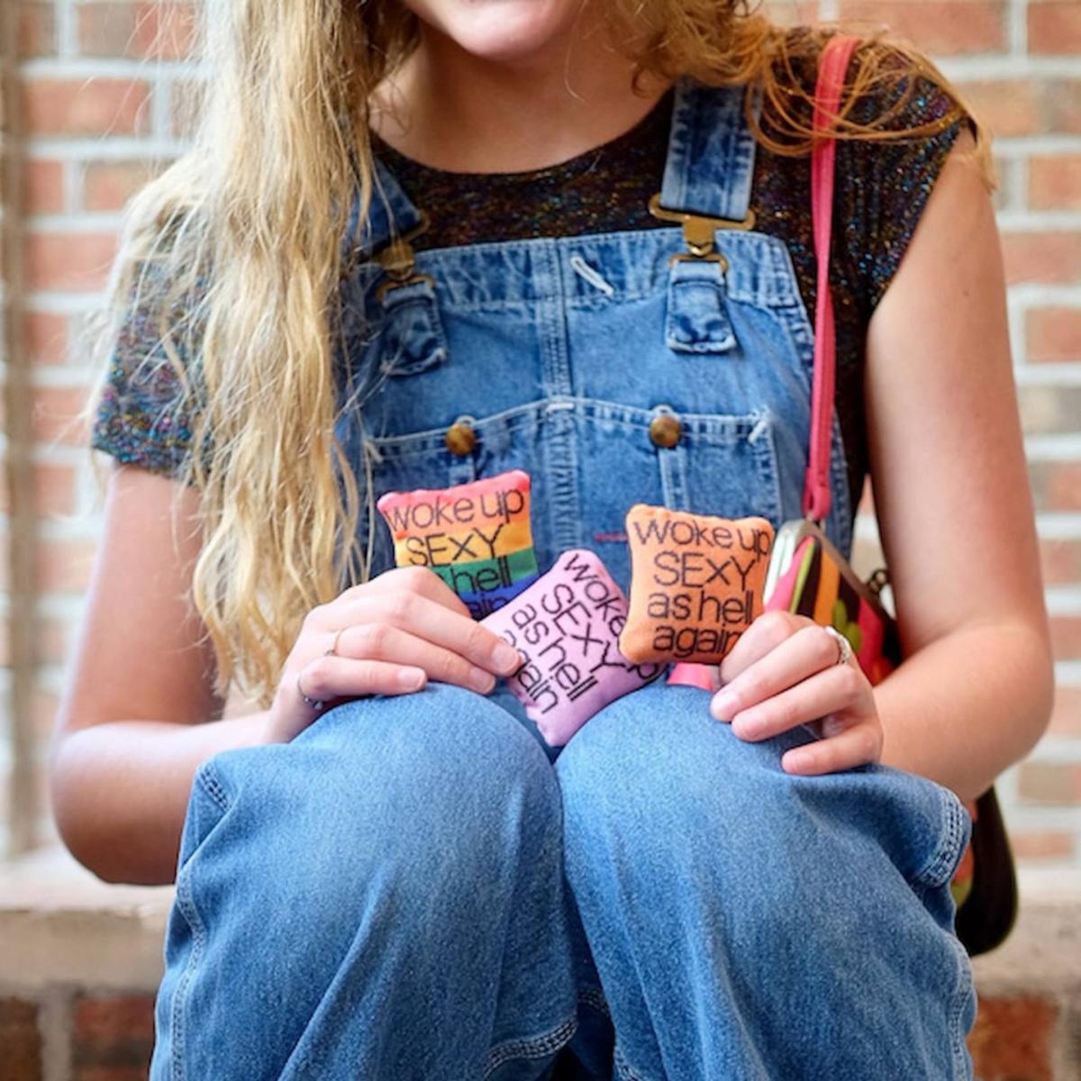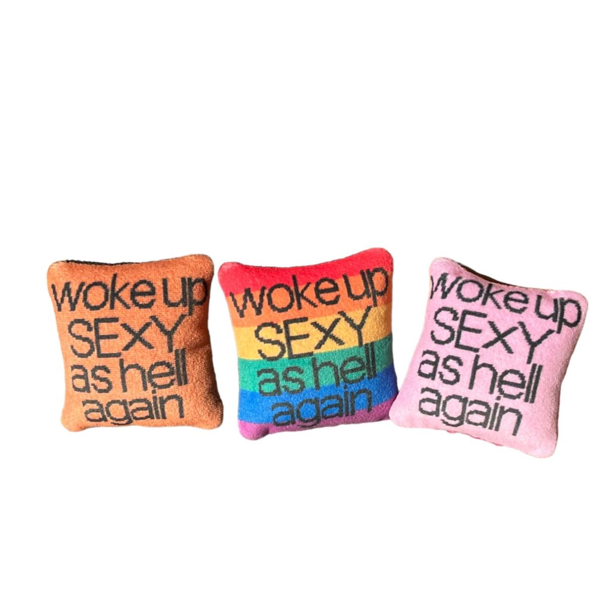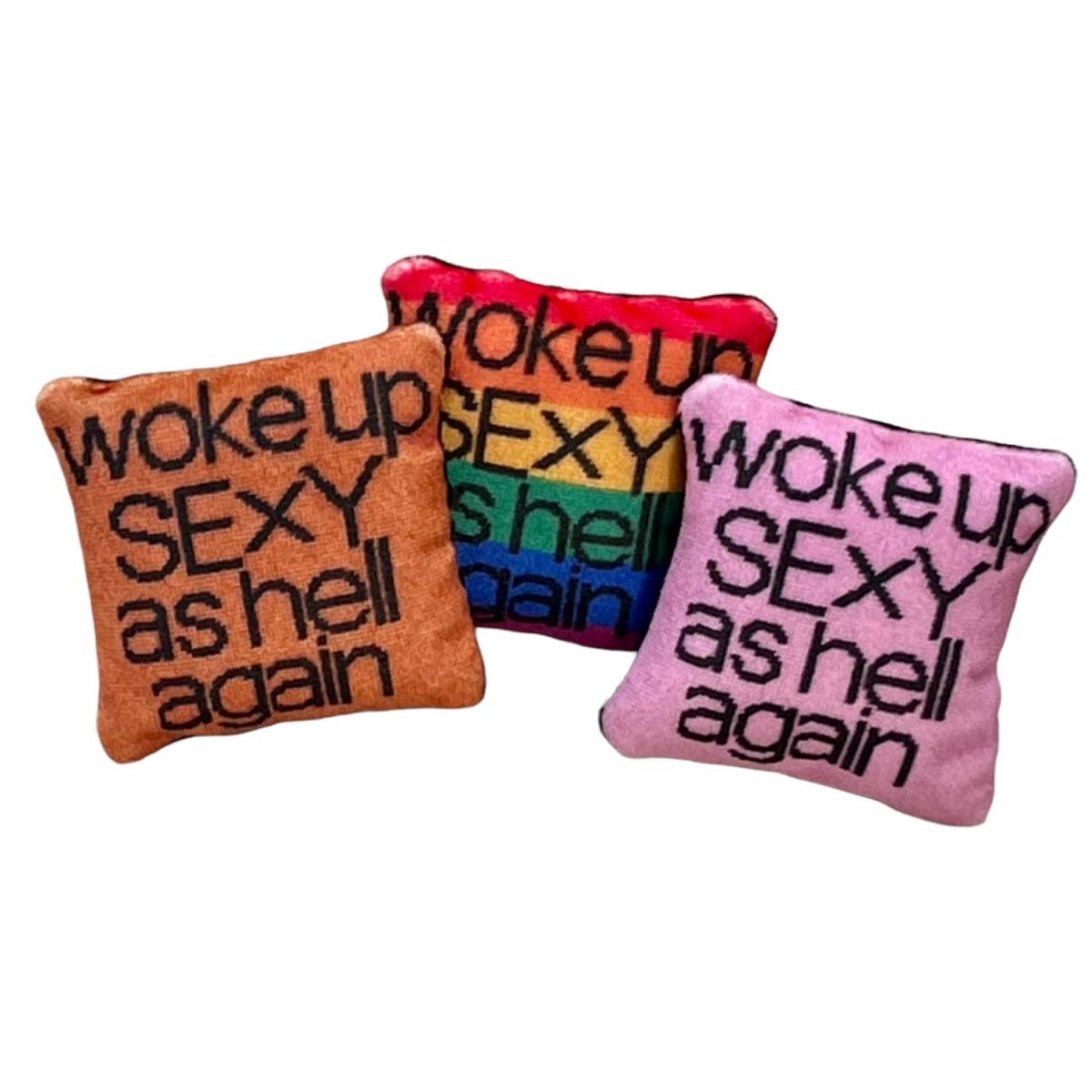 Tuck these se. Xy baby pillows anywhere! We suggest front and center on your nightstand, her dashboard, his sock drawer. Just in case anyone needs reminding! set of three - copper, rainbow and pink velvet filled with poly-fiber fill and hand sewn closed custom made with crazy heart and soul by local artisans delivered new to you in eco-friendly packaging