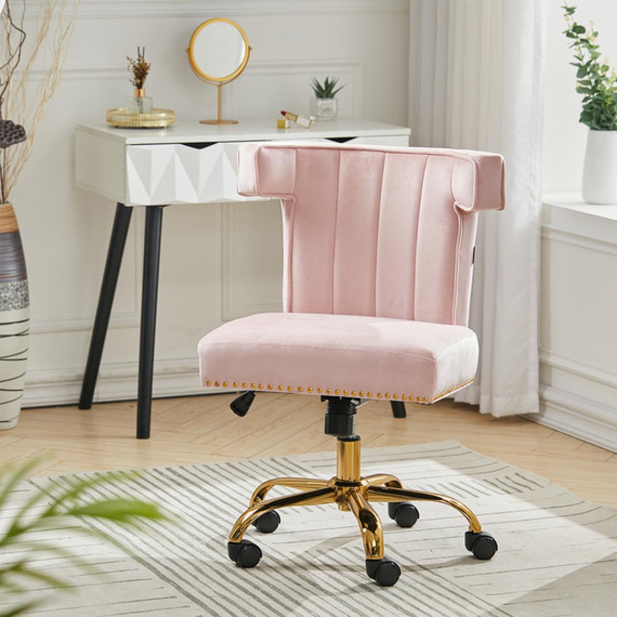 Velvet Office Computer Chair Striped Backrest Swivelling Padded Seat Home - Pink