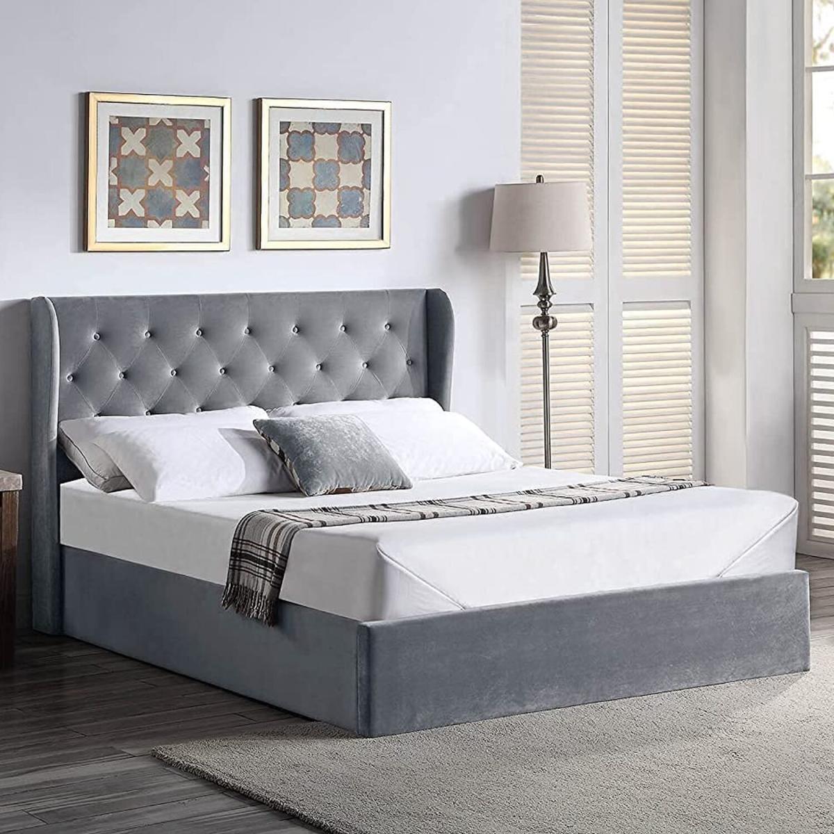 The ottoman bed frame is upholstered in high-end luxurious fabric which is easy to clean and soft to the touch. The bed frame has a headboard and bed frame which is covered in a plush soft brushed velvet bed frame. The headboard has a hand-stitched crisscross button design. The ottoman bed frame comes with a smooth gas-lifting mechanism. The front opening ottoman allows you to store items such as clothes, bedding, shoes, towels and many more. The fabric base cover which is included means that any items you store away don't touch the floor. The ottoman bed frame gives you a HUGE amount of extra storage space.