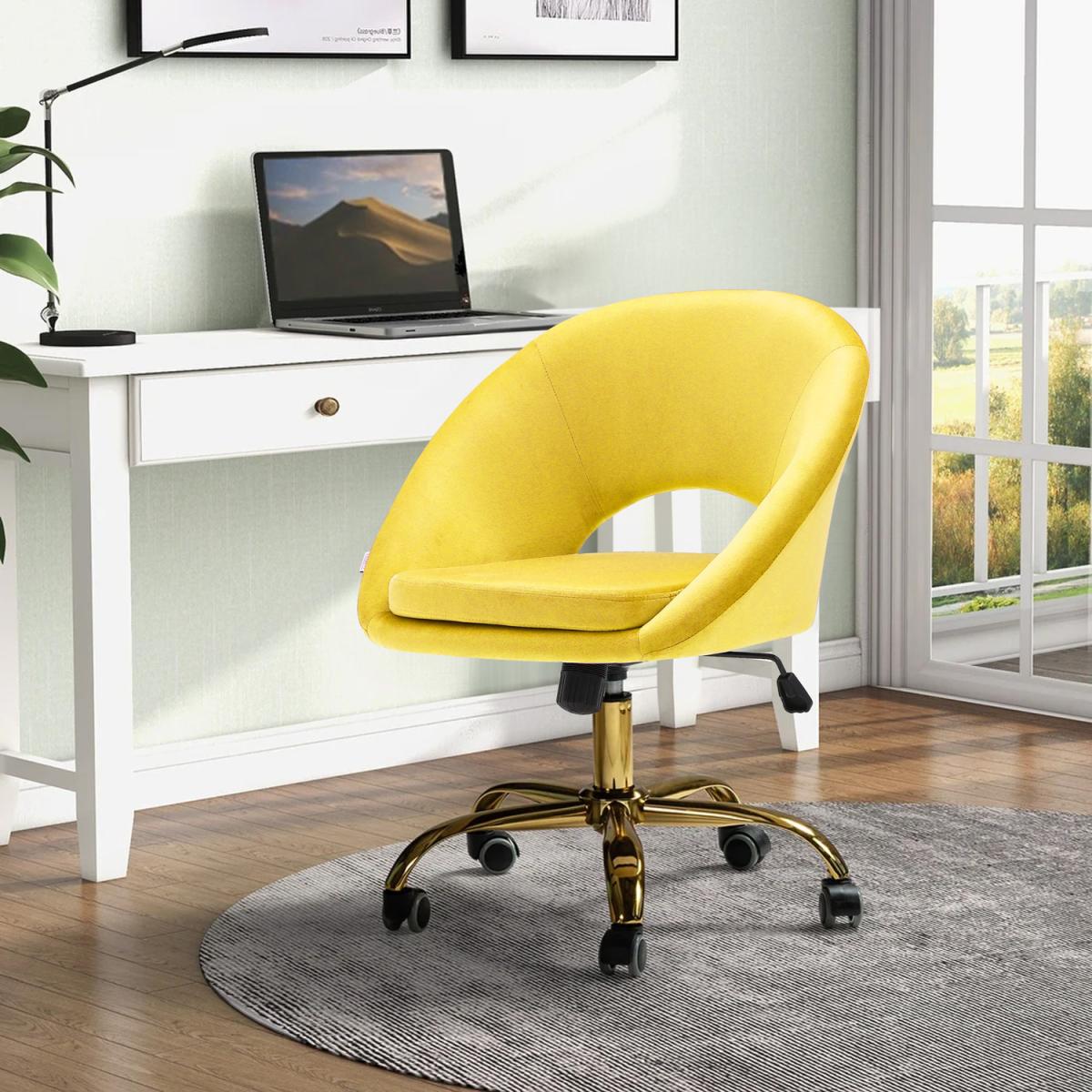 Velvet Padded Cushion Swivel Office Chair - Yellow