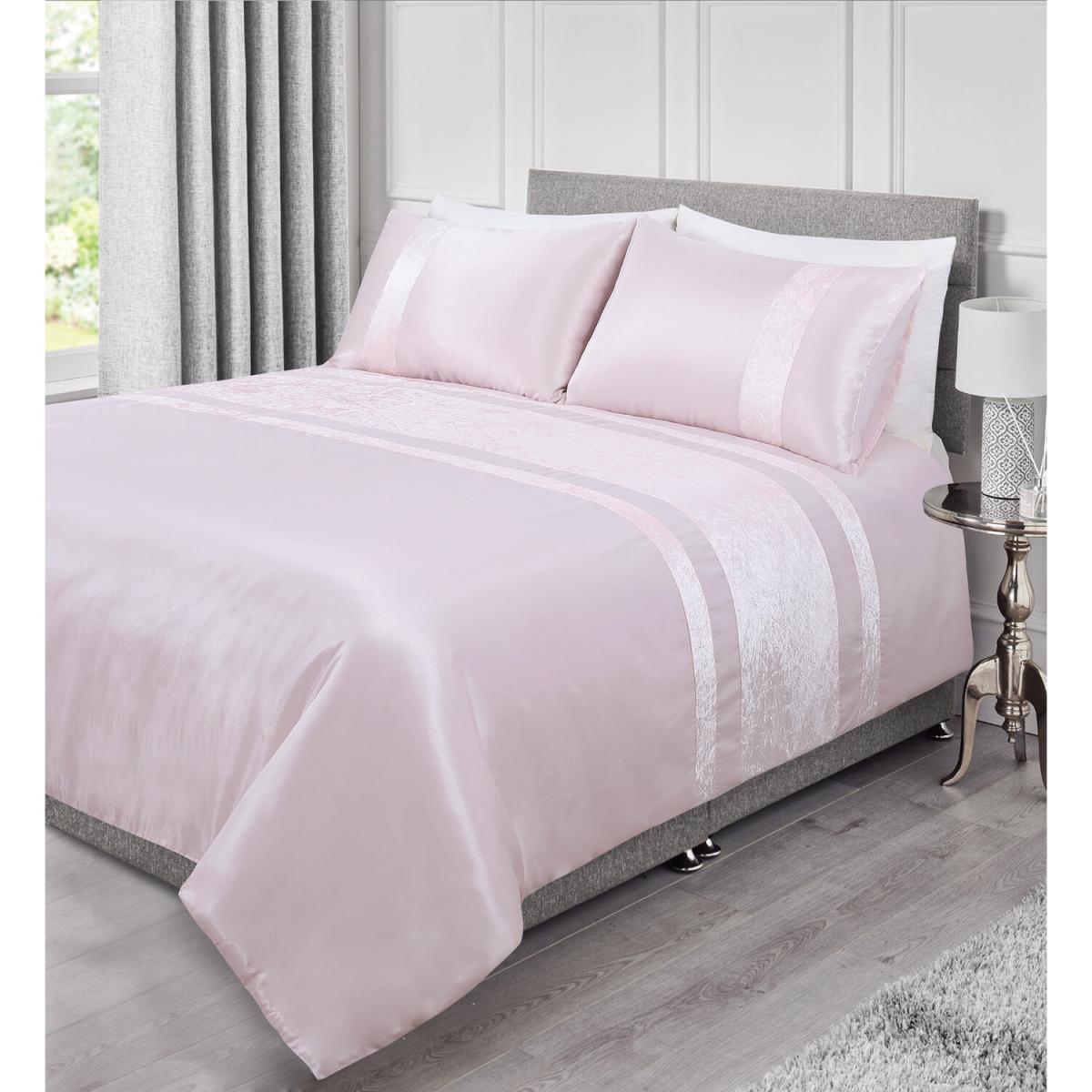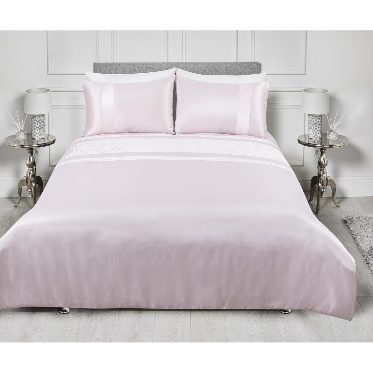 Velvet Panel Pillow Case and Duvet Set - Blush / Super King