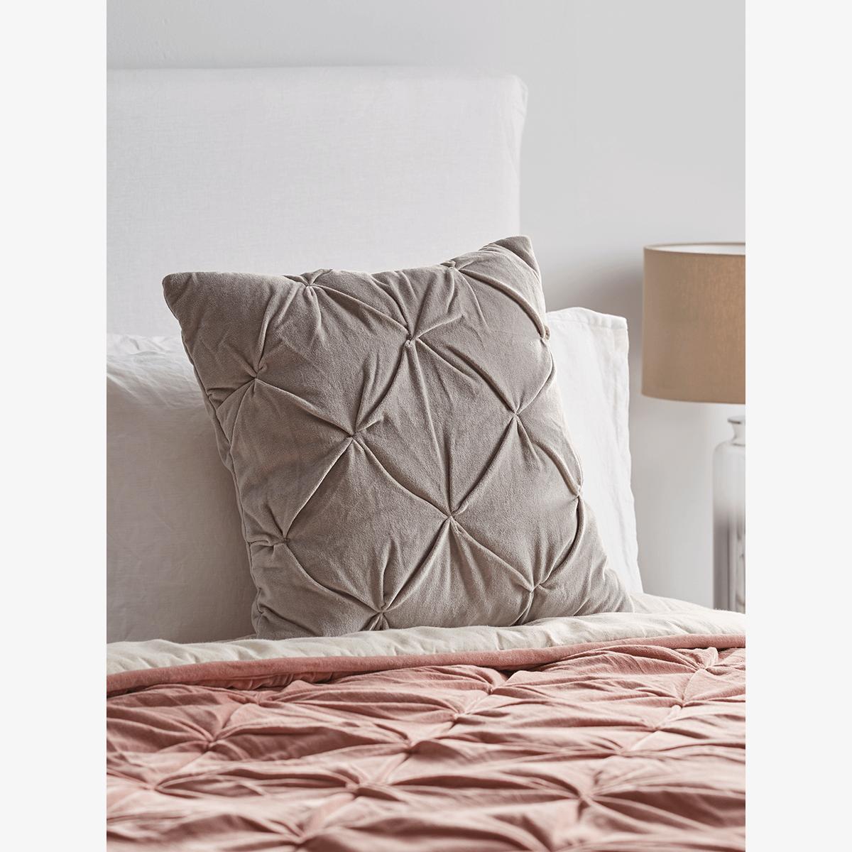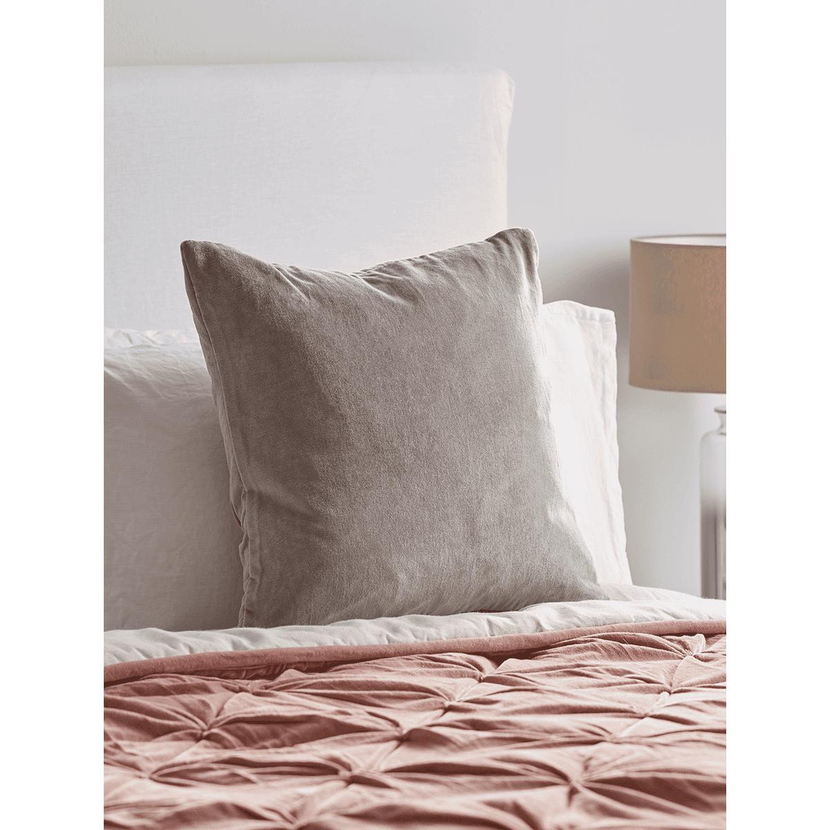 The perfect complement to our luxurious. Velvet Quilts. , our velvet cushions feature a textured pin tuck design to the front with a plain cotton velvet back. In beautiful muted shades, these cushions make a beautiful addition to both beds and sofas. The grey is a sophisticated shade which provides a subtle warmth.