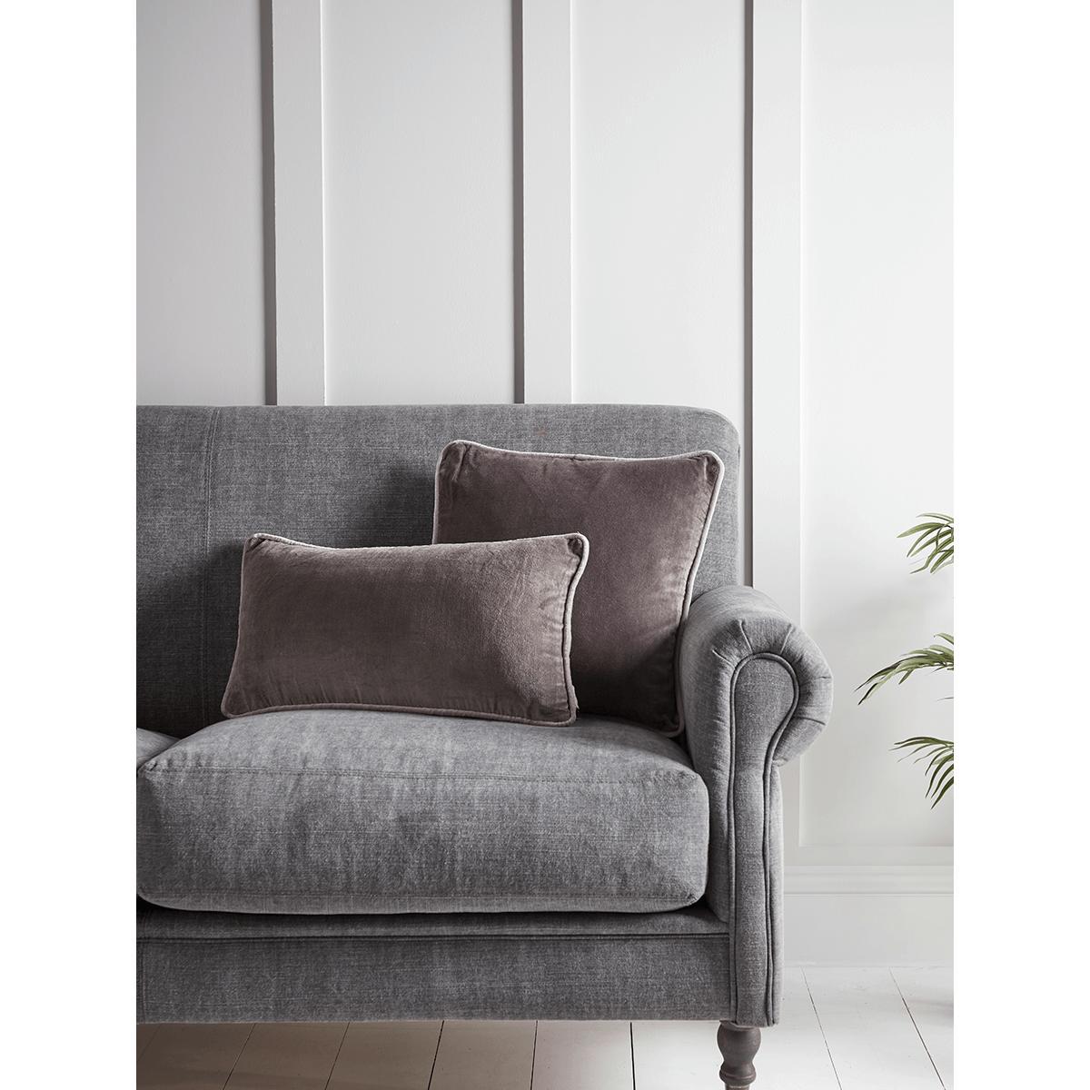 Velvet Piped Square Cushion - Grey