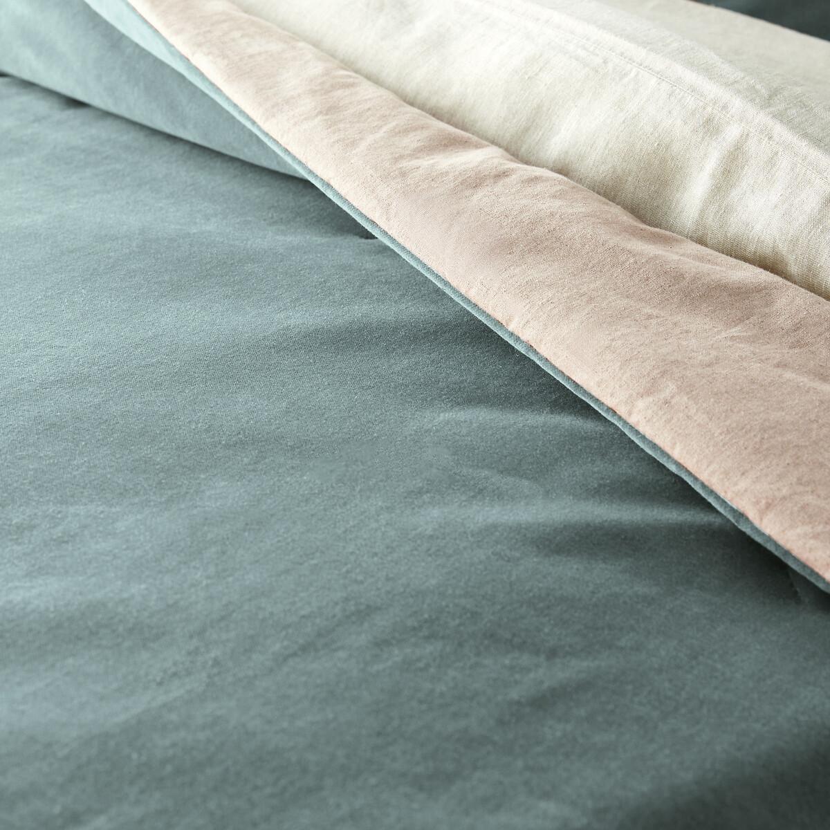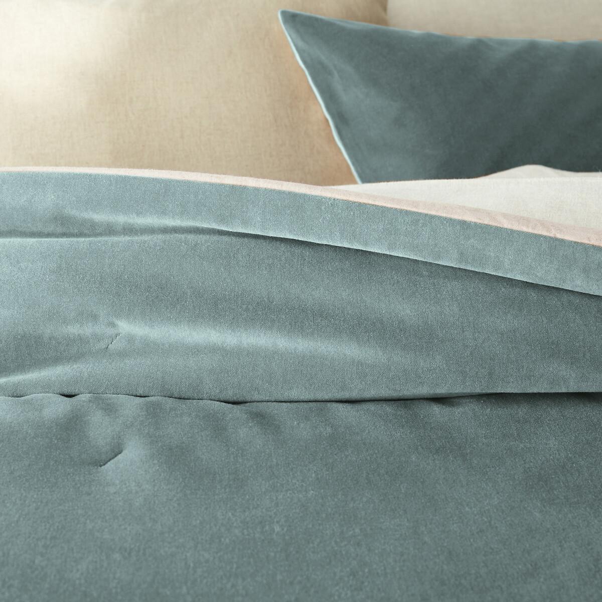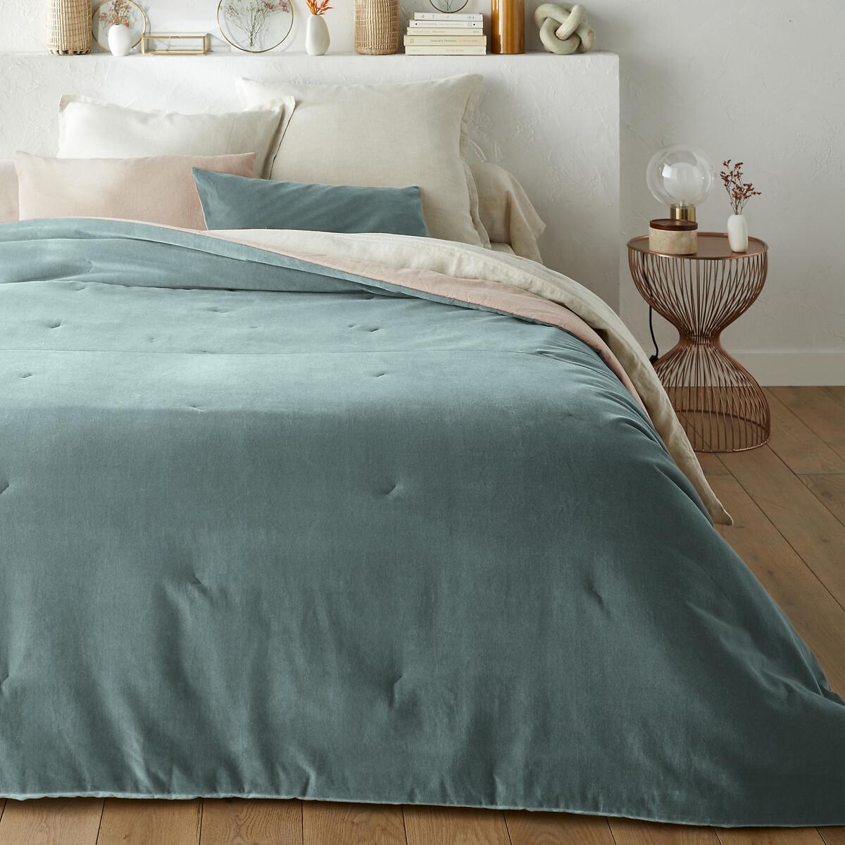 The Velvet coverlet quilt. It will bring colour and softness to your interiors!Product Details • Front: 100% cotton, velour velvet • Back: Linen/Cotton (52% linen/48% cotton) natural colour • 100% polyester fill • Light coverlet. Care Advice • Machine washable at 30°C on a delicate cycle. Sizes • 180 x 230cm • 230 x 250cm • OEKO-TEX® Standard 100. Standard 100 certification by OEKO-TEX® tests textile products for harmful substances via an independent, international label.