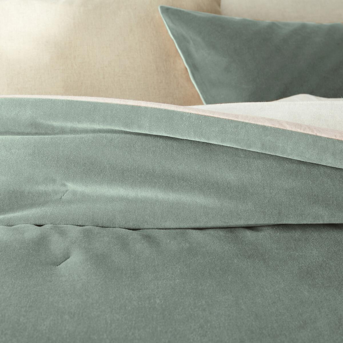 The Velvet coverlet quilt. It will bring colour and softness to your interiors!Product Details • Front: 100% cotton, velour velvet • Back: Linen/Cotton (52% linen/48% cotton) natural colour • 100% polyester fill • Light coverlet. Care Advice • Machine washable at 30°C on a delicate cycle. Sizes • 180 x 230cm • 230 x 250cm • OEKO-TEX® Standard 100. Standard 100 certification by OEKO-TEX® tests textile products for harmful substances via an independent, international label.