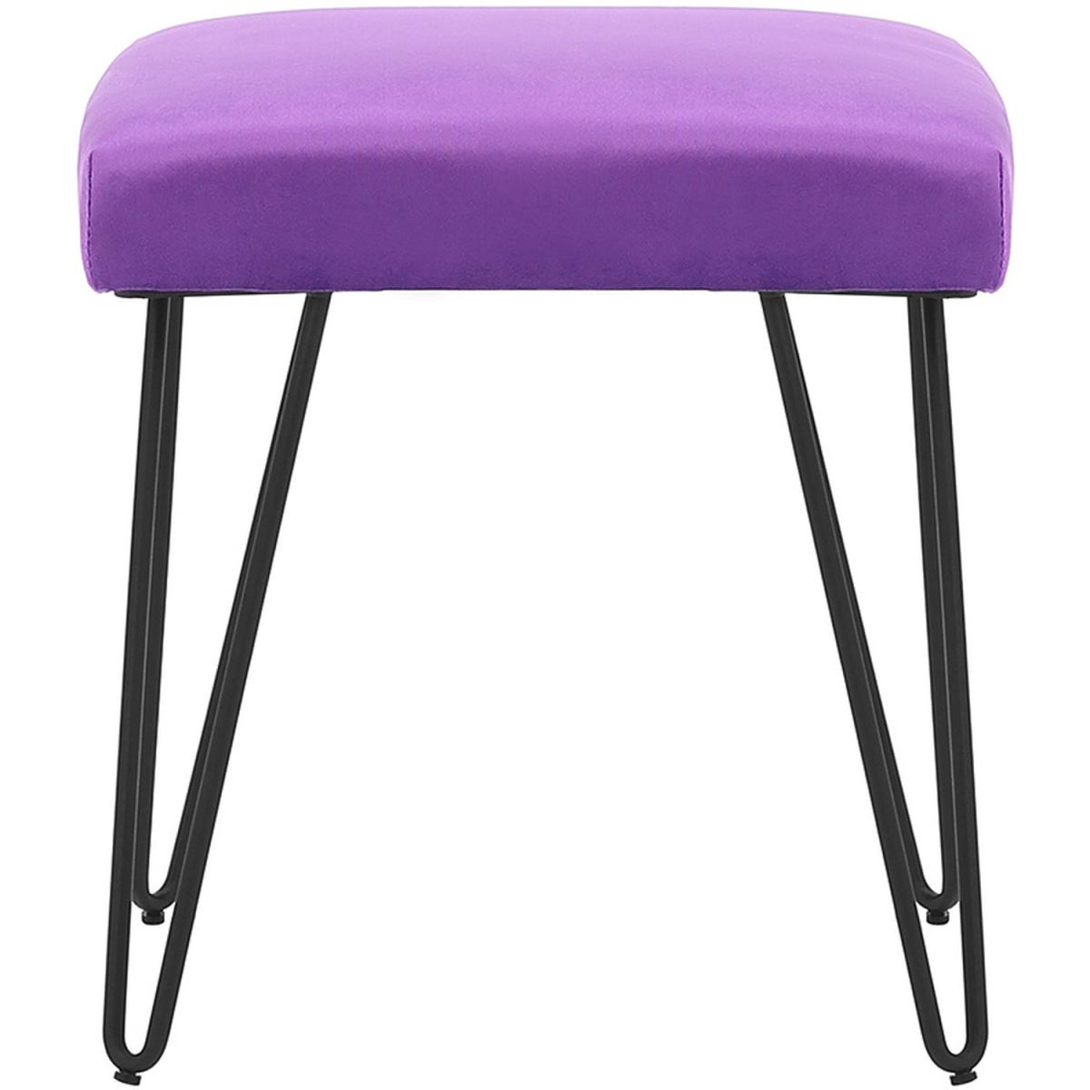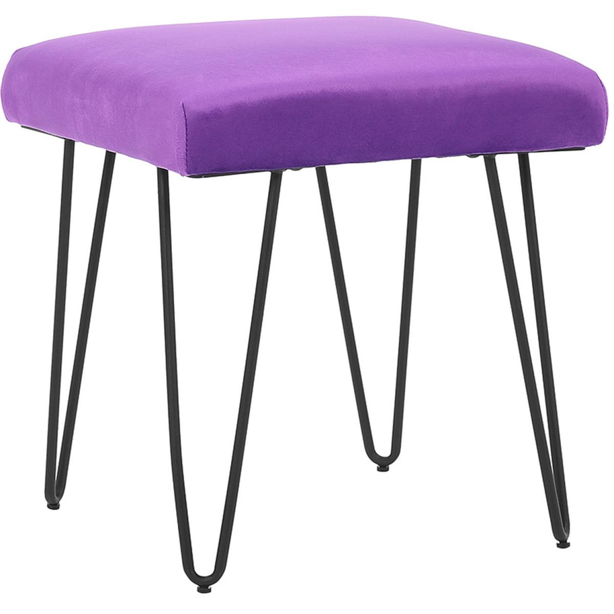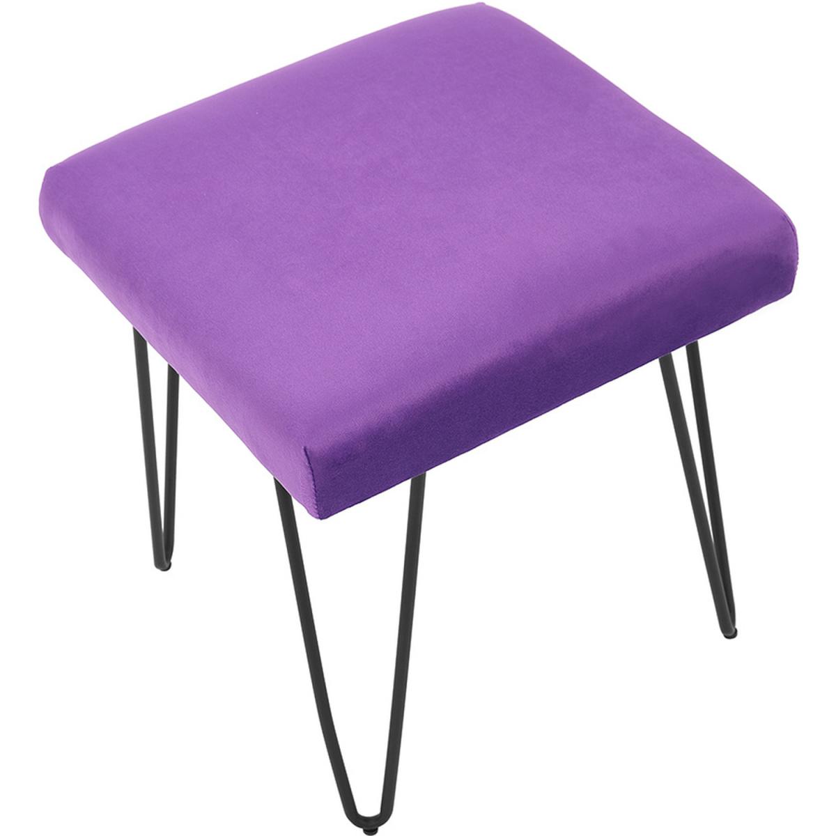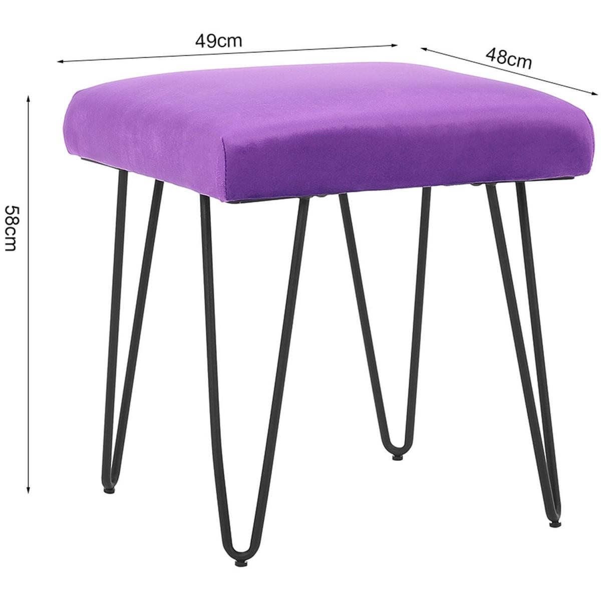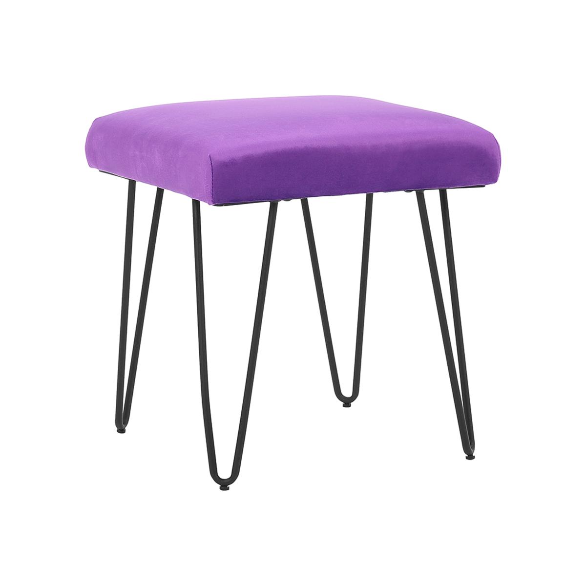 I really like this purple velvet footstool for adding colour and texture to a space. Its bold hue works well in modern, eclectic, or even classic interiors when you want a pop of colour. The sleek black hairpin legs give it a contemporary vibe, making it versatile enough to pair with both neutral and vibrant schemes. Practical styling tips include using it as extra seating in a living room or as a cosy footrest in a reading nook. It can also double up as a side table when topped with a tray, making it both functional and stylish. Its compact size makes it easy to reposition, so it’s perfect for smaller spaces or for adding a splash of colour where needed.