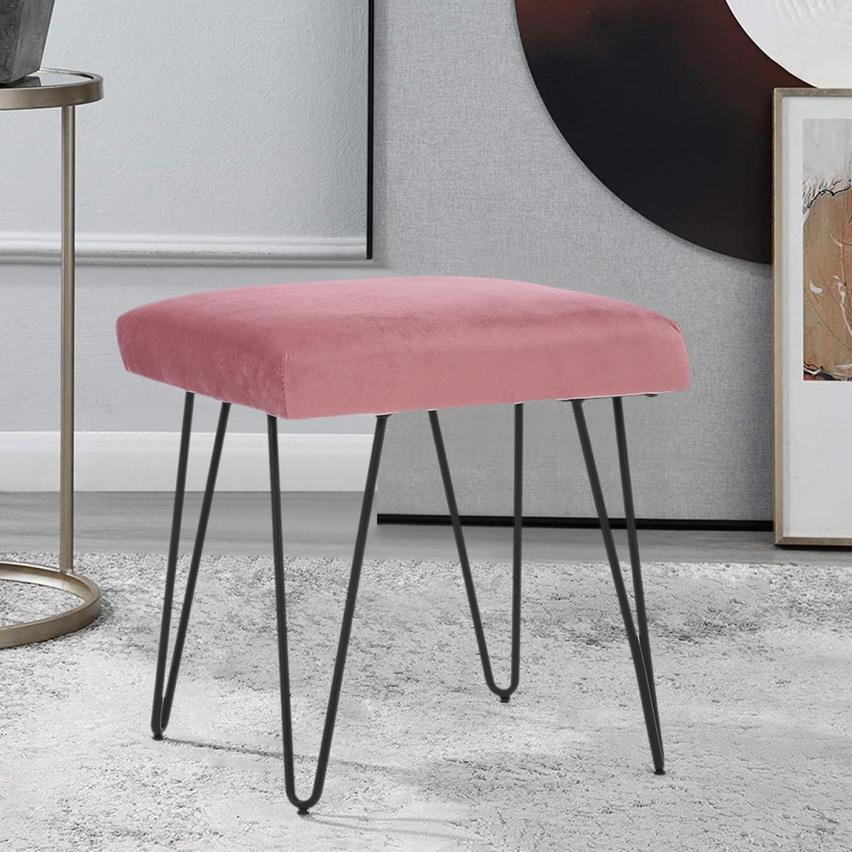 The footrest stool ottoman is wrapped with soft velvet fabric filled with high density sponge, with soft and comfortable cushions. Rectangle ottoman has extremely steady 4 gold metal legs, and leg base is upgraded to metal and it is great for a small place. The backless design allows you to directly put the stool under the table to save space.