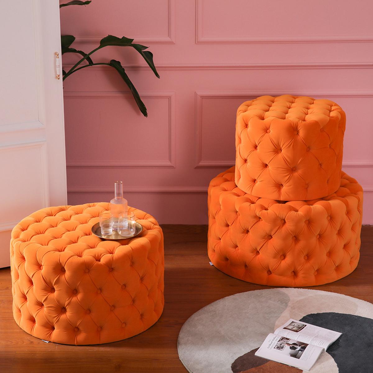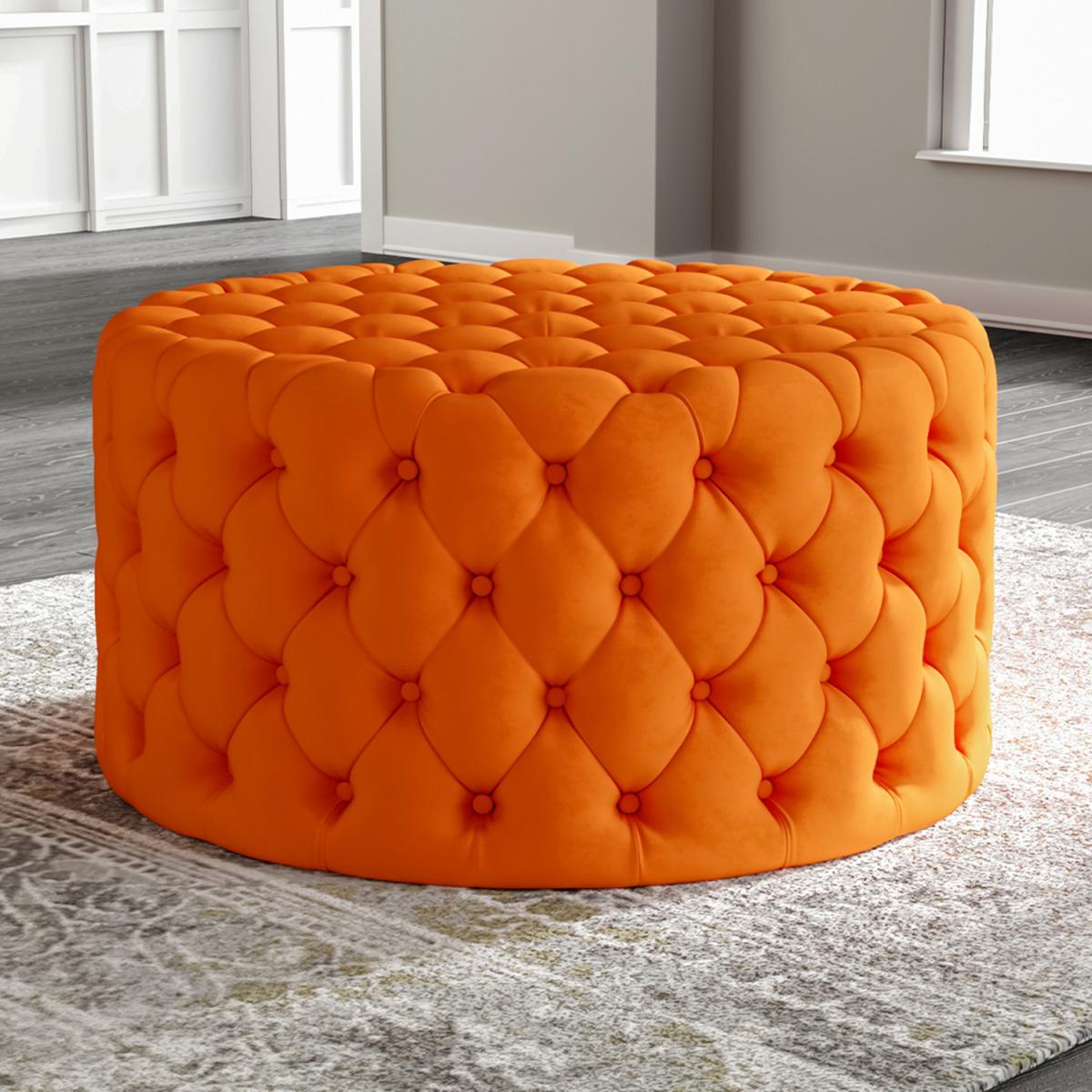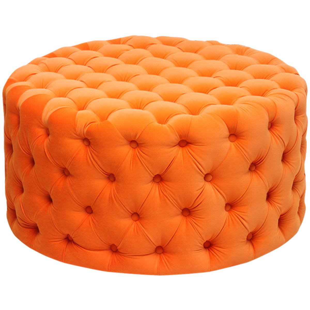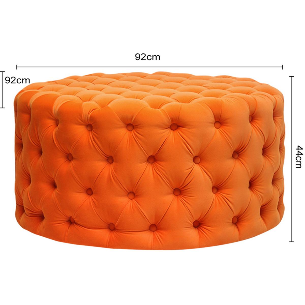 Velvet Round Buttoned Footstool - Orange / 92cm