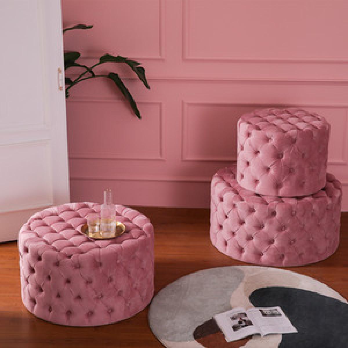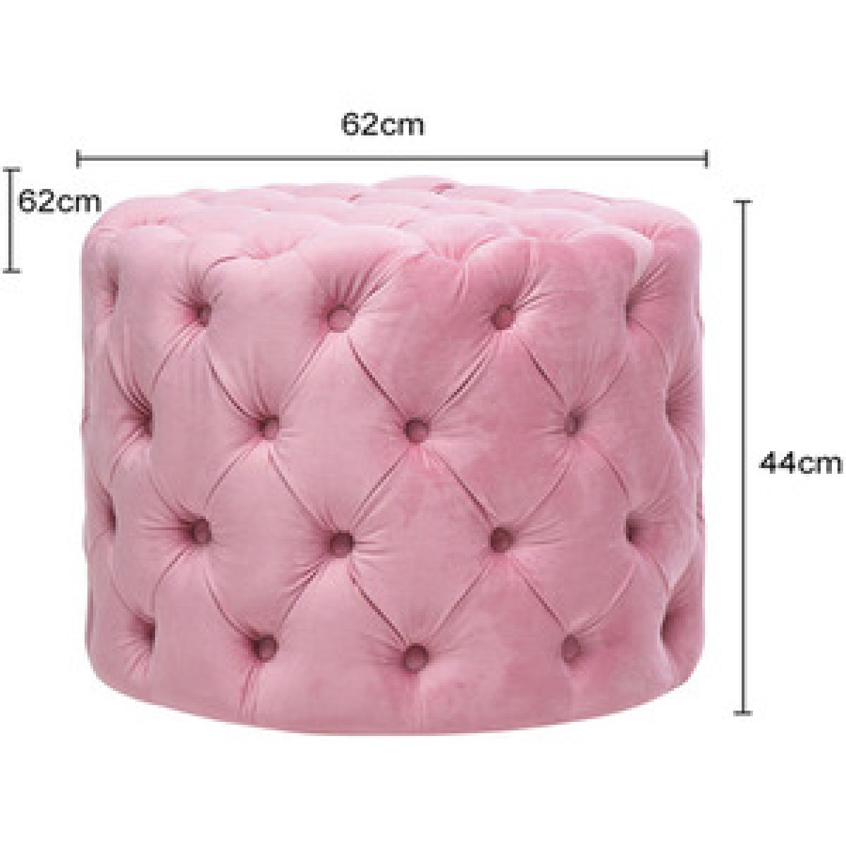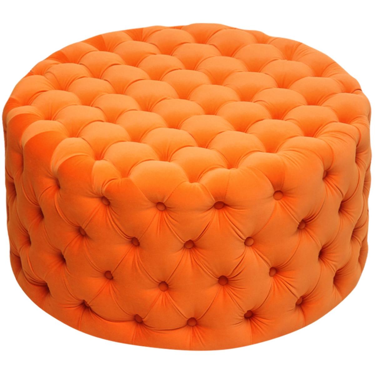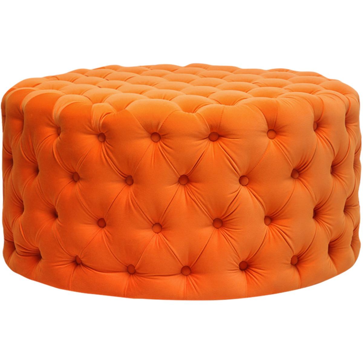 Velvet Round Buttoned Footstool - Orange / 92cm