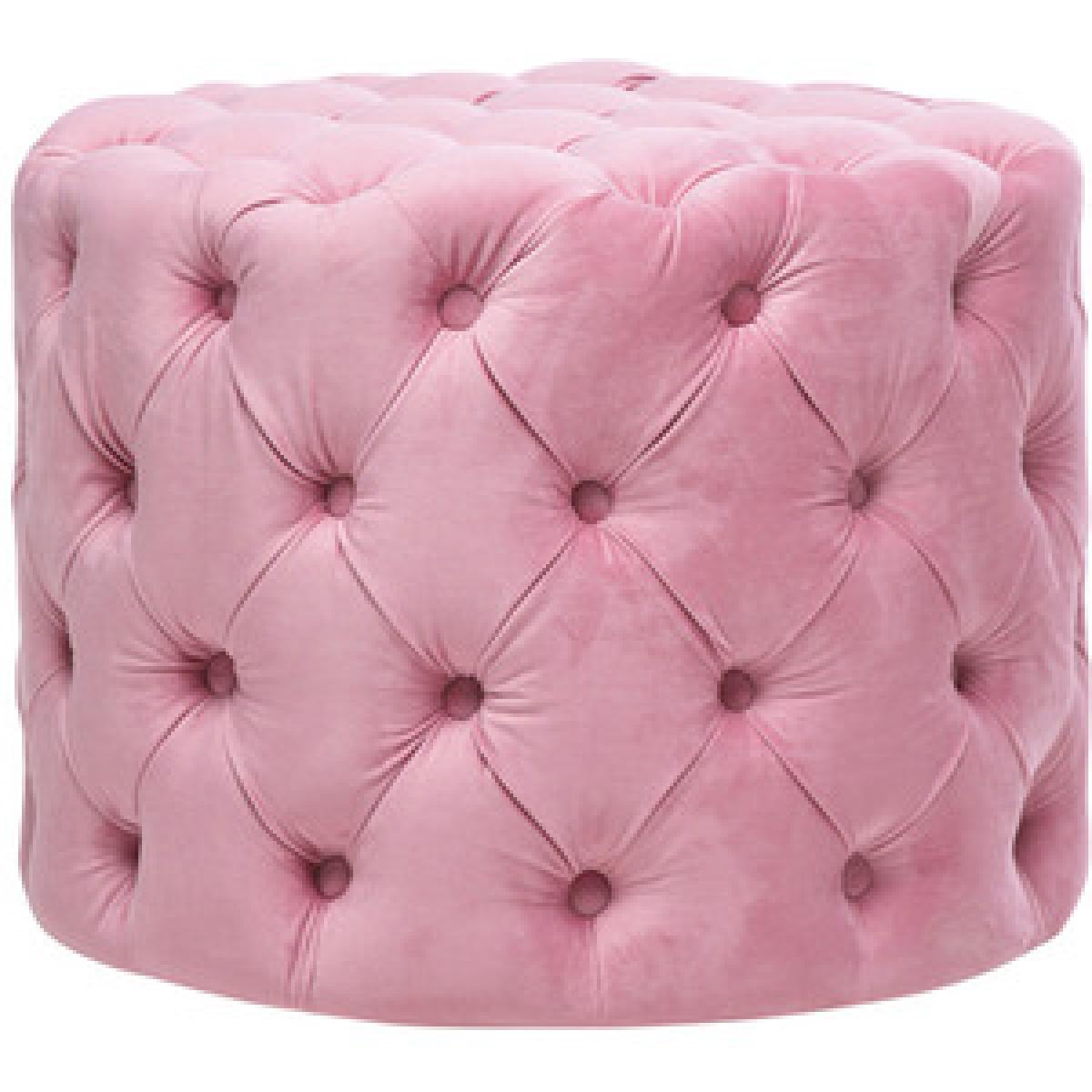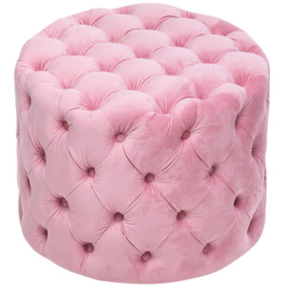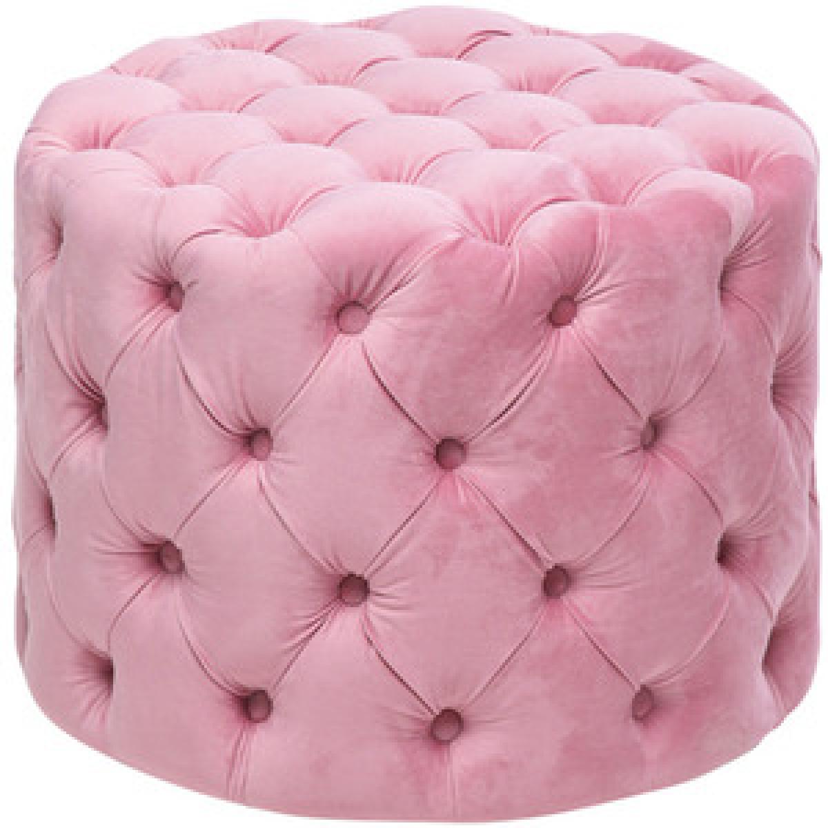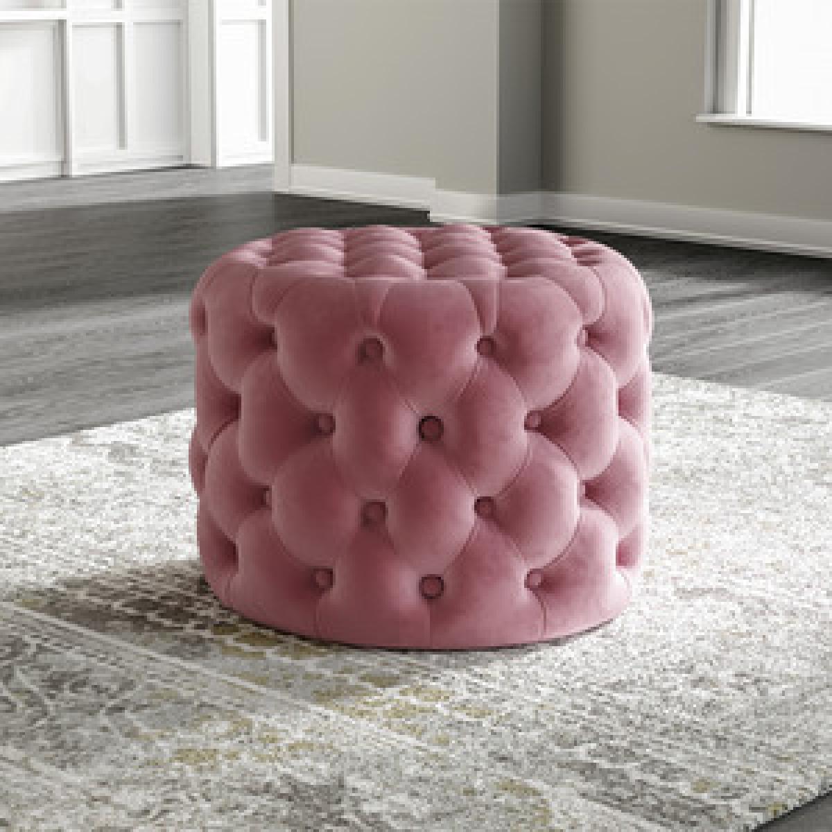 Velvet Round Buttoned Footstool - Orange / 92cm
