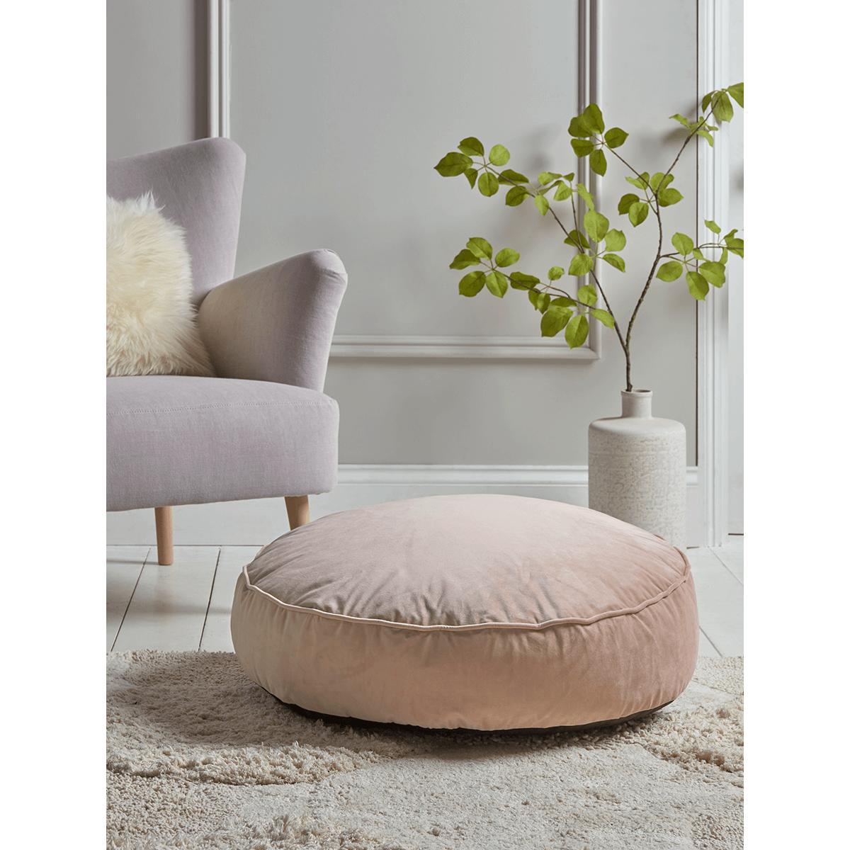 Velvet Round Floor Cushion - Blush