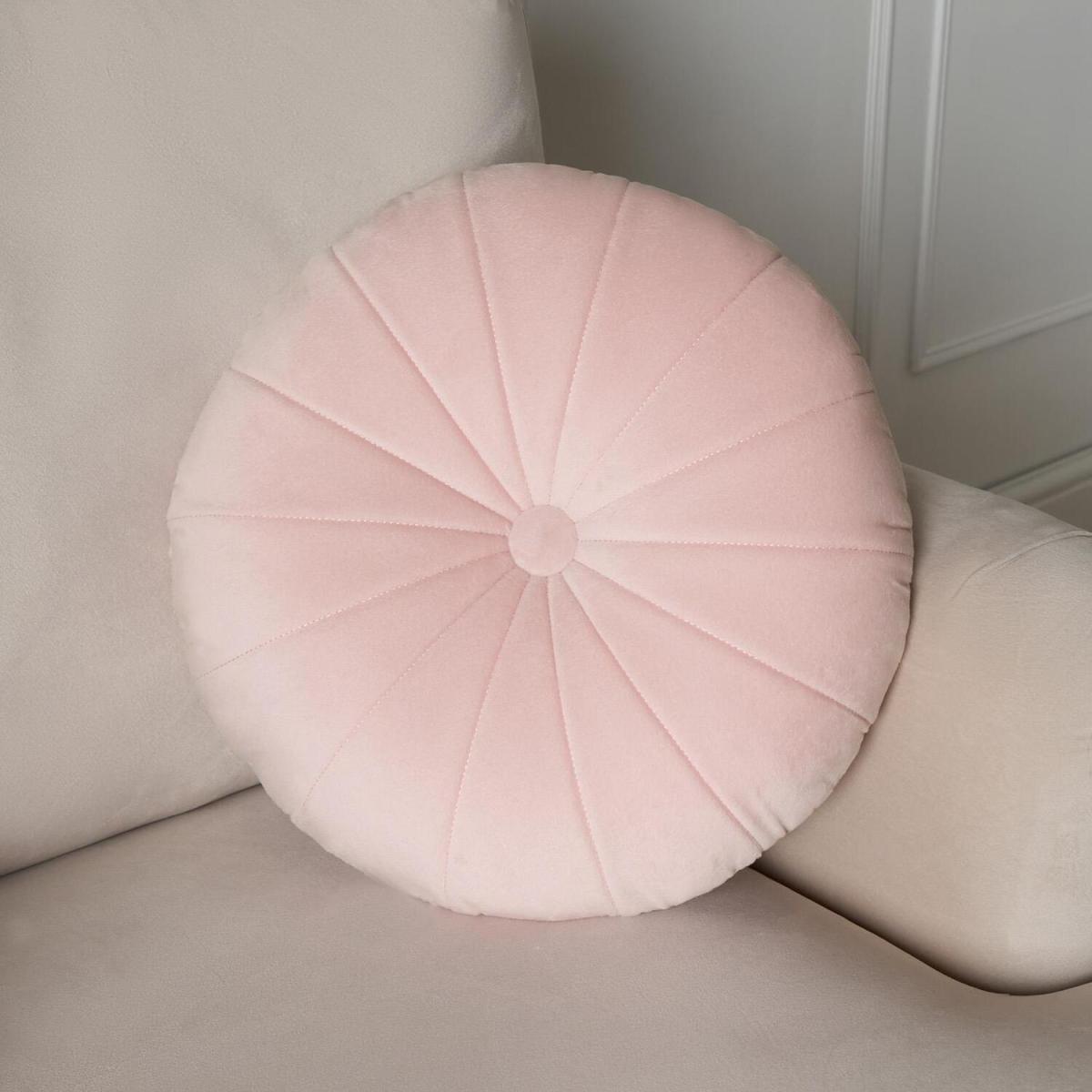 Velvet Round Pleat Scatter Cushion - Blush Pink