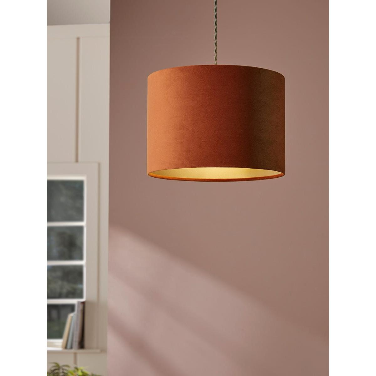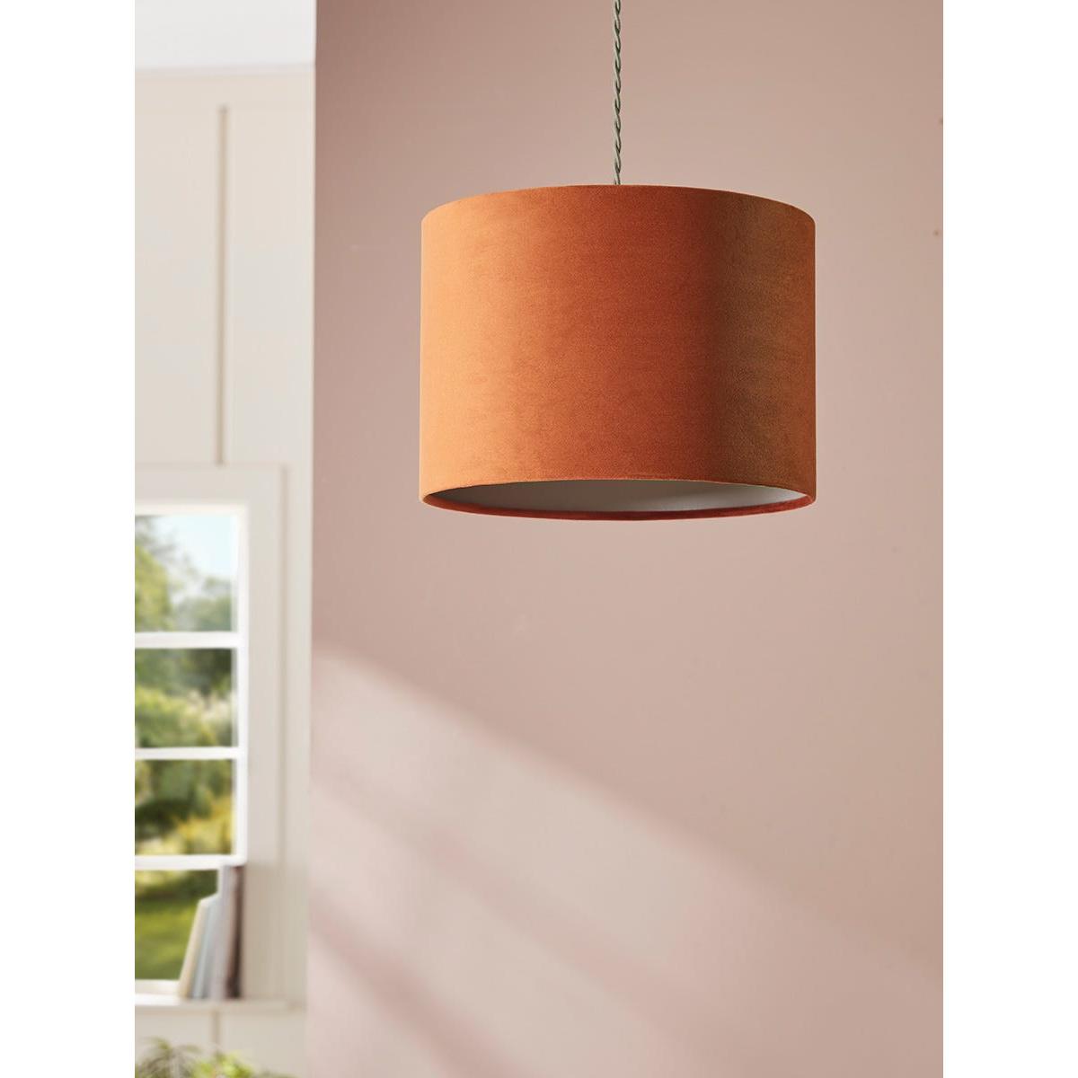 I love this small shade because its rich cinnamon tone adds warmth and depth to a variety of interiors. It works particularly well in cosy, intimate settings like living rooms or bedrooms with neutral or earthy colour palettes. The velvet finish gives it a luxe feel, making it suitable for more sophisticated or vintage-inspired spaces. Practical styling tips include pairing it with warm-toned bulbs or incorporating similar hues in surrounding decor for a cohesive look. Its size makes it versatile for use on smaller pendant lights or as an accent piece in layered lighting schemes, helping to create a welcoming atmosphere without overwhelming the space.
