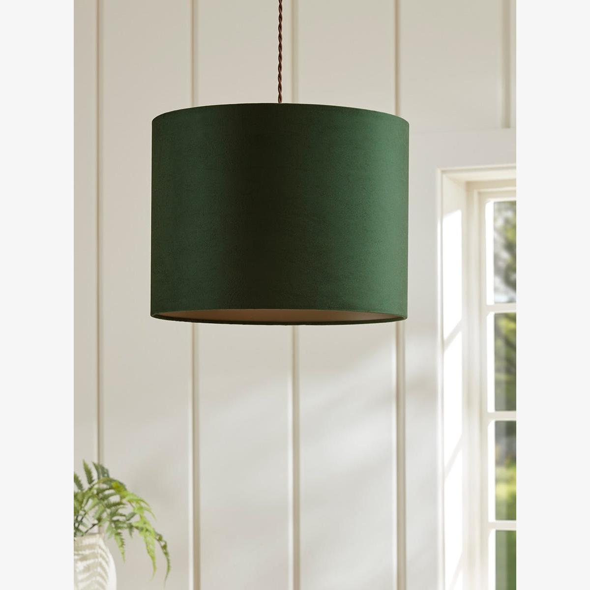 Add a touch of luxury to your home with our velvet lampshade in forest green. The dark green brings a subtle pop of colour to your space, while the velvet adds wonderful rich texture. Available in small and large. Discover how to create the perfect lighting scheme for your home using our Lighting Buying Guide.