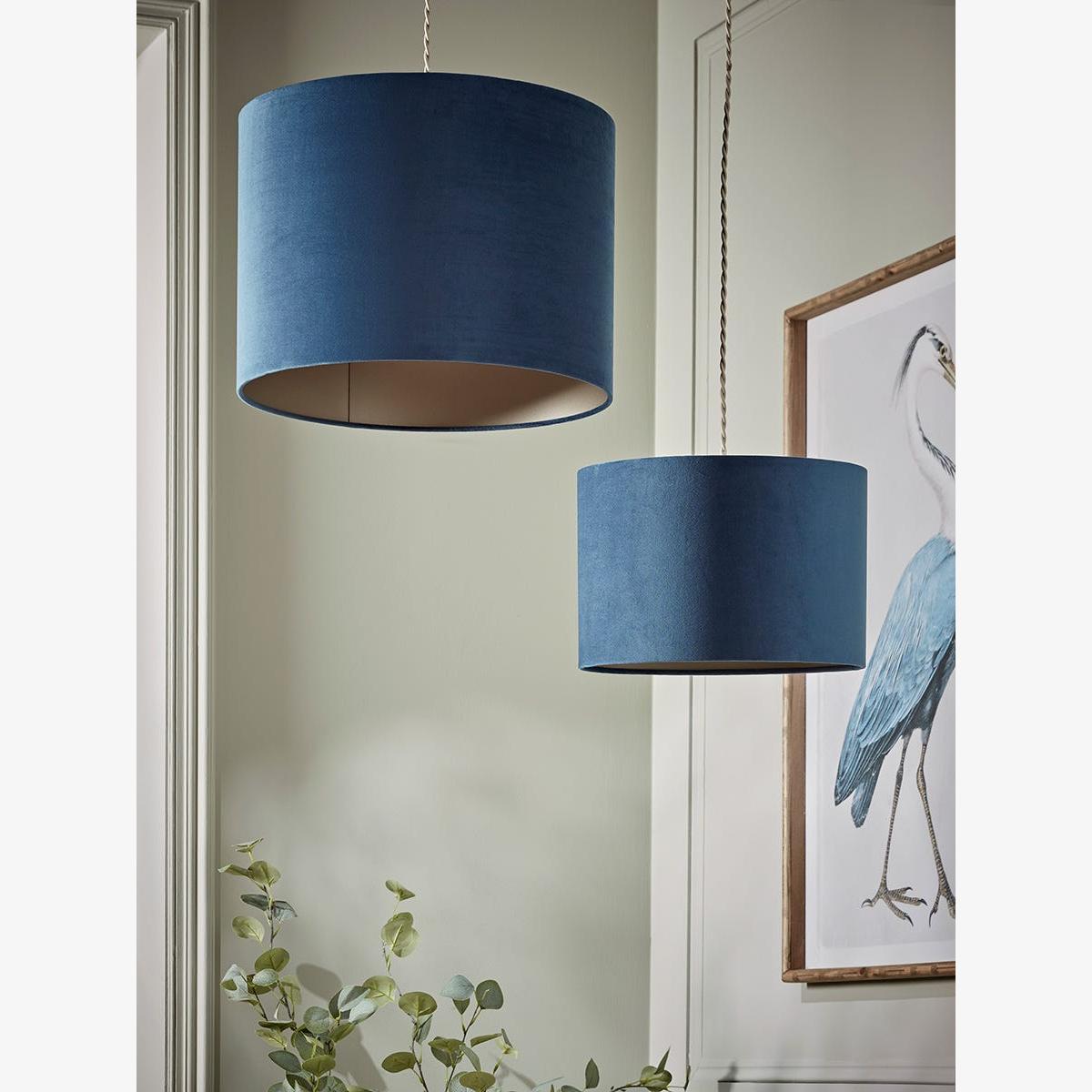 Add a touch of luxury to your space with our velvet lampshades in navy blue. A deep and rich navy blue brings an opulent pop of colour to your space, whilst also adding a gentle and warming glow to your home. Availble in two sizes - small and large.