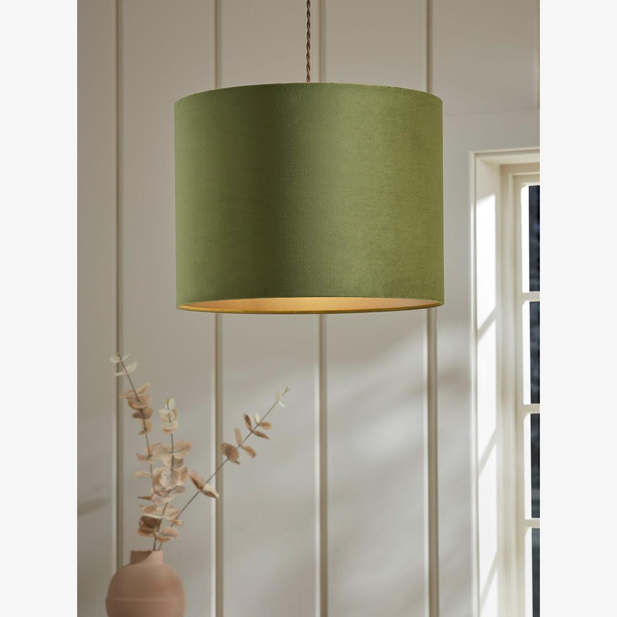 Bring a luxurious pop of colour to your space with our velvet lampshades in olive green. A soft green tone brings a subtle pop of colour to your space, whilst also adding a gentle and warming glow to your home. Available in small and large. Discover how to create the perfect lighting scheme for your home using our Lighting Buying Guide.