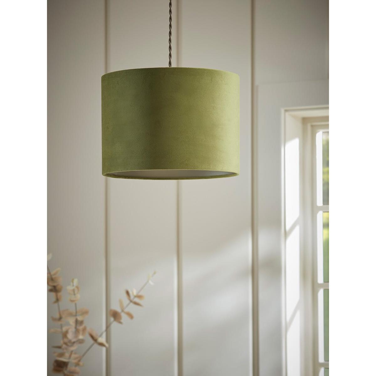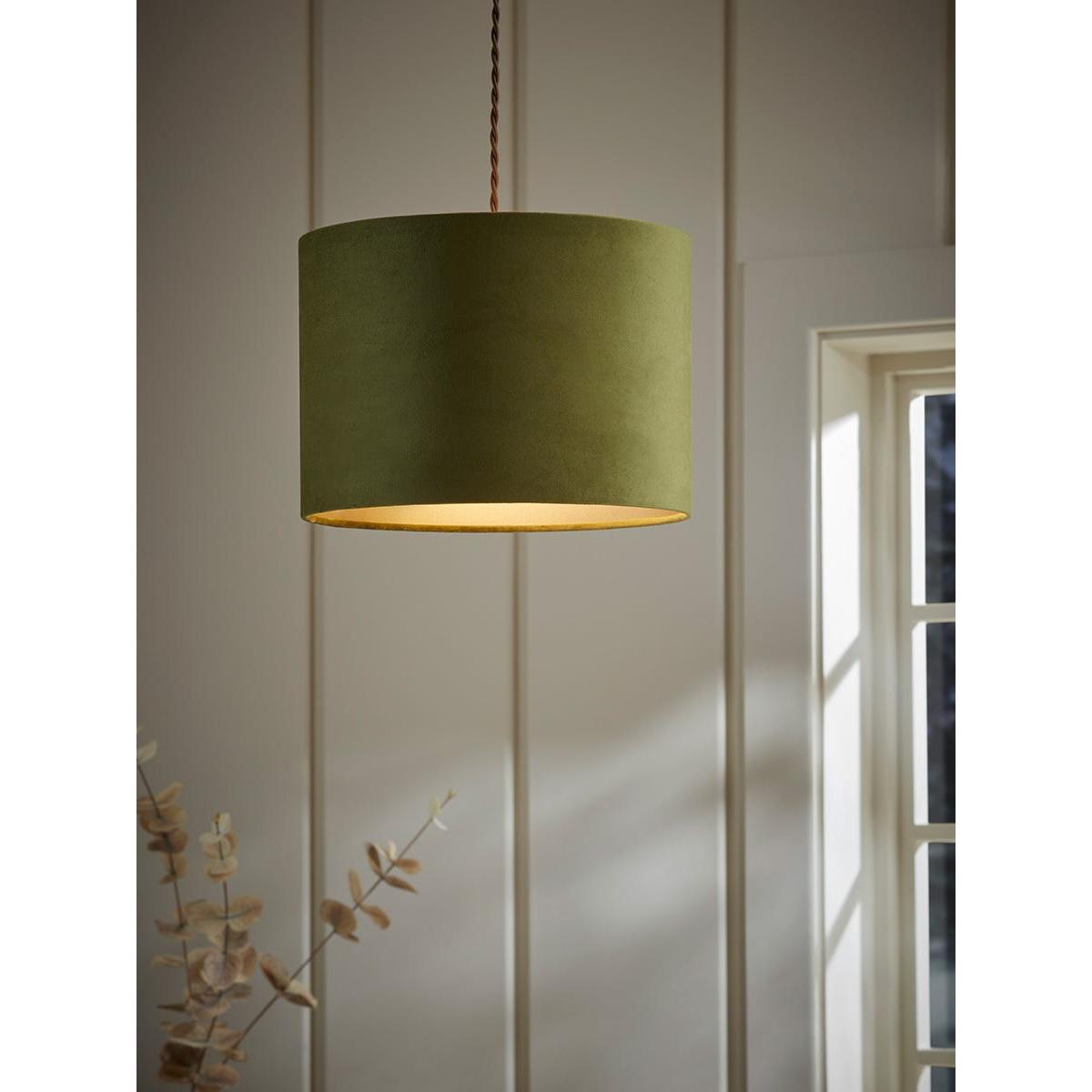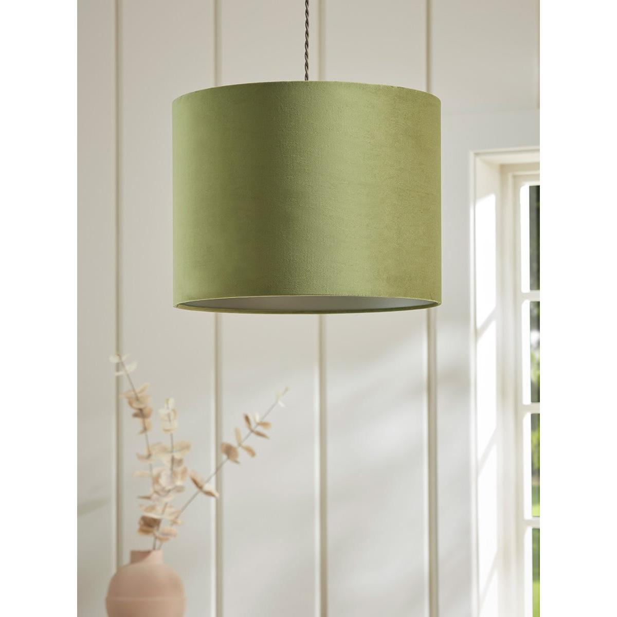 Bring a luxurious pop of colour to your space with our velvet lampshades in olive green. A soft green tone brings a subtle pop of colour to your space, whilst also adding a gentle and warming glow to your home. Available in small and large. Discover how to create the perfect lighting scheme for your home using our Lighting Buying Guide.