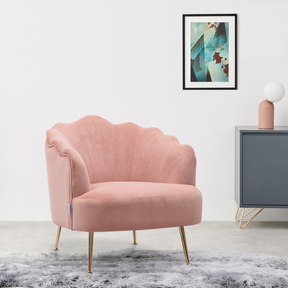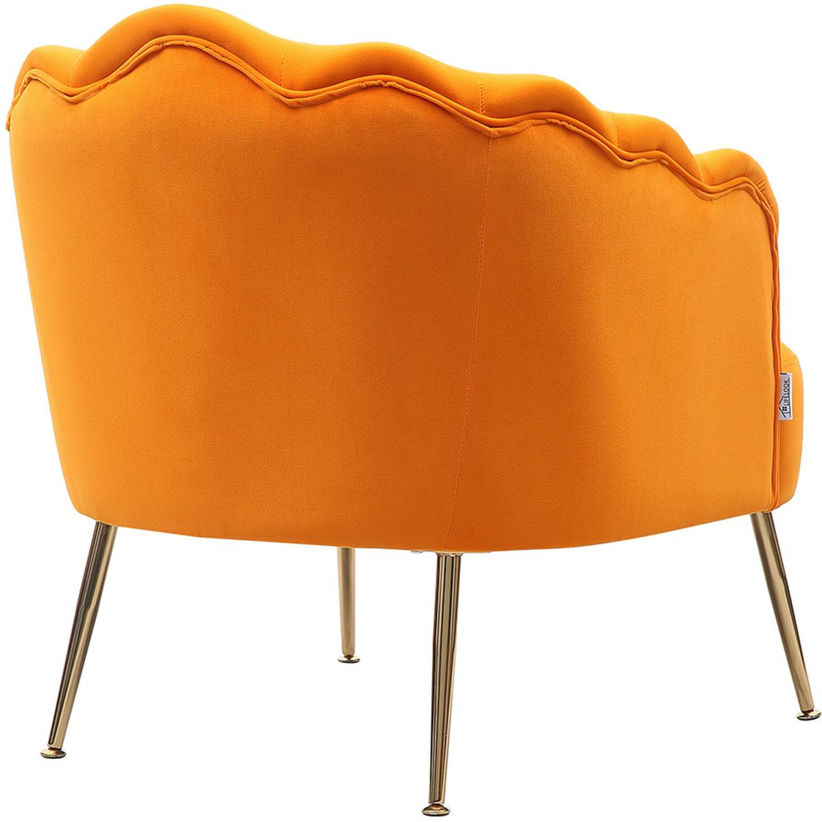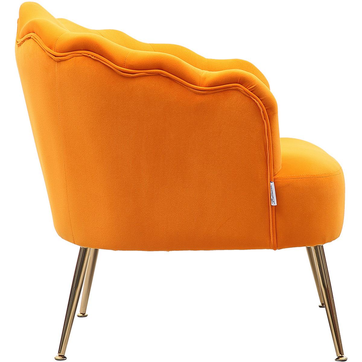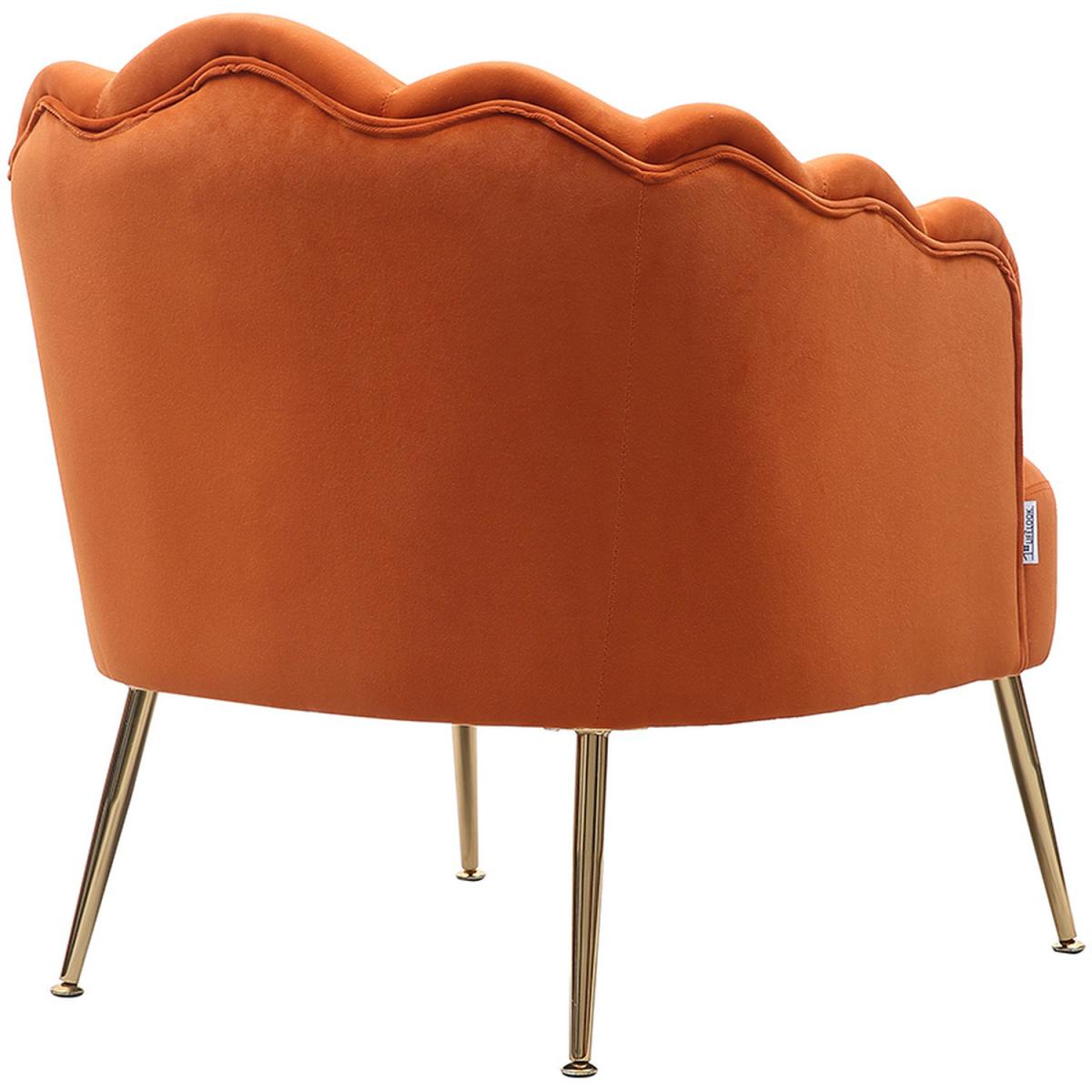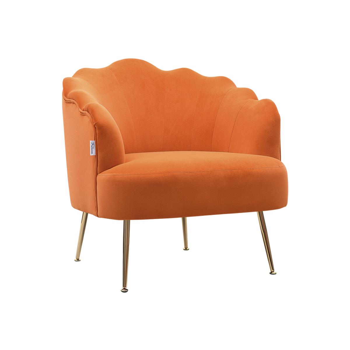 Bring the charm of fashion to your living space with this accent chair in the shape of a shell. Featuring a gently curved silhouette and ergonomic backrest, the tub chair delivers a luxurious seating experience due to its soft velvet fabric and dense foam filling. Supported by gold metal legs with protected footpads, this chair is not only good-looking and durable but also top-notch comfort.