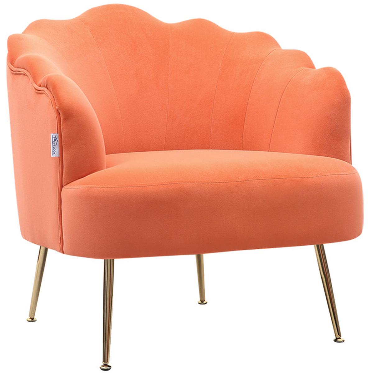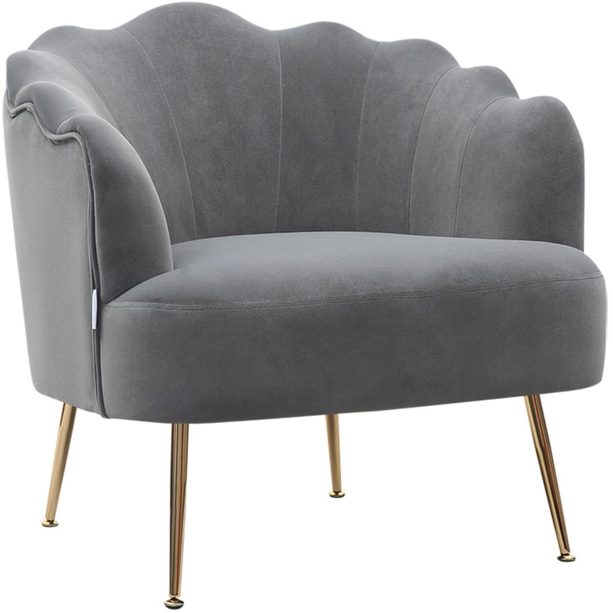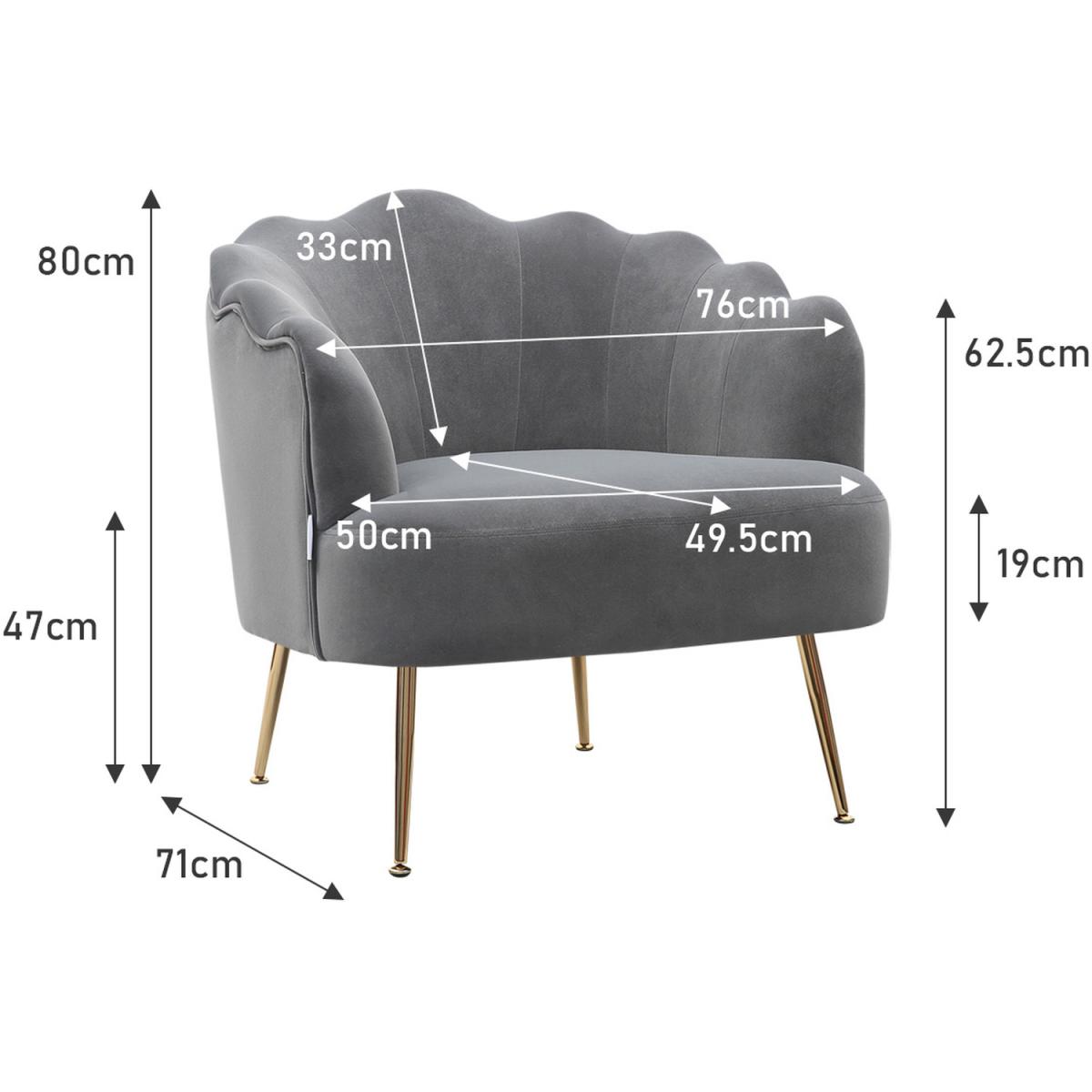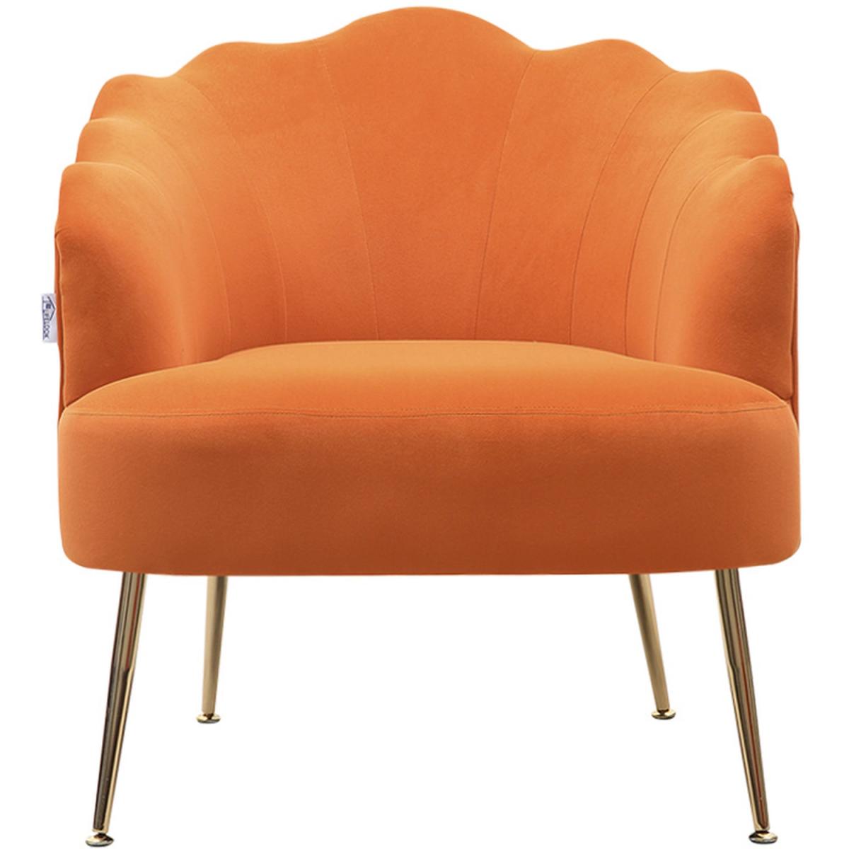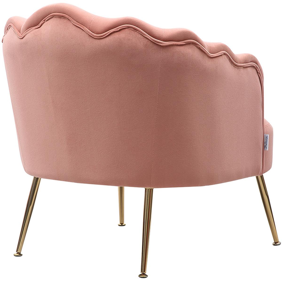 Bring the charm of fashion to your living space with this accent chair in the shape of a shell. Featuring a gently curved silhouette and ergonomic backrest, the tub chair delivers a luxurious seating experience due to its soft velvet fabric and dense foam filling. Supported by gold metal legs with protected footpads, this chair is not only good-looking and durable but also top-notch comfort.