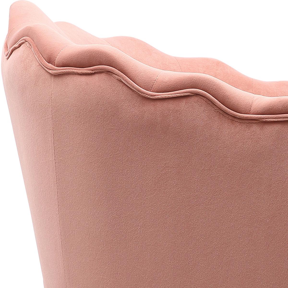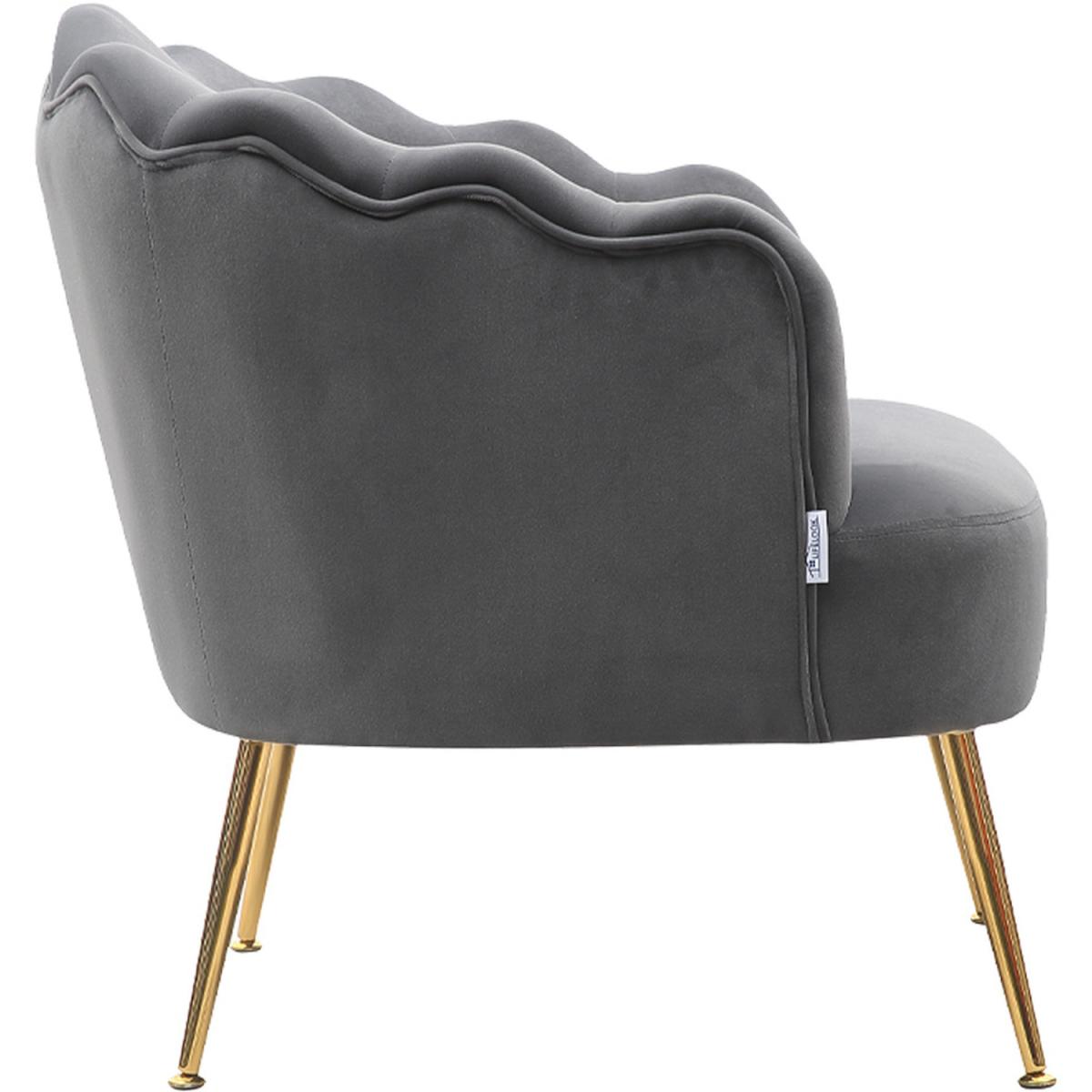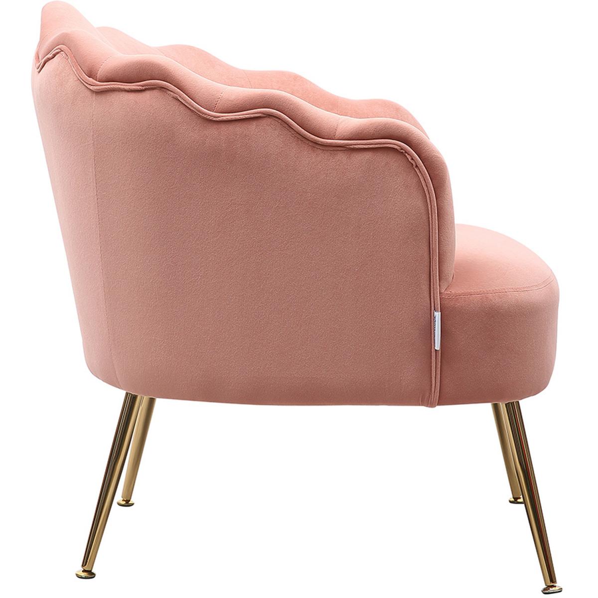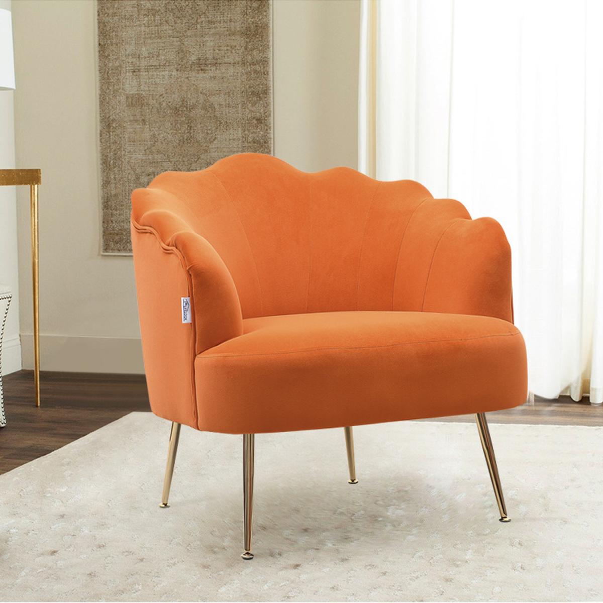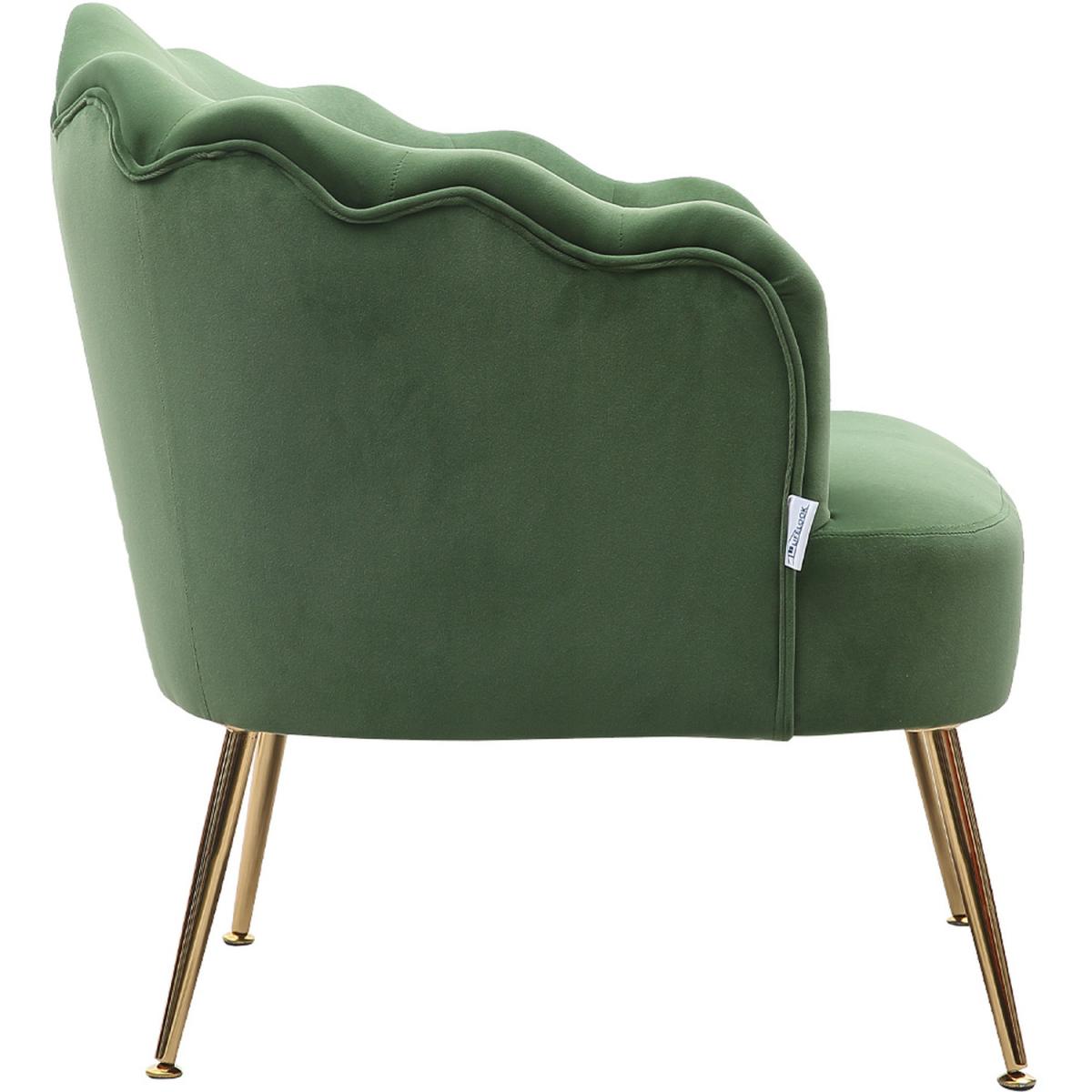 Bring the charm of fashion to your living space with this accent chair in the shape of a shell. Featuring a gently curved silhouette and ergonomic backrest, the tub chair delivers a luxurious seating experience due to its soft velvet fabric and dense foam filling. Supported by gold metal legs with protected footpads, this chair is not only good-looking and durable but also top-notch comfort.