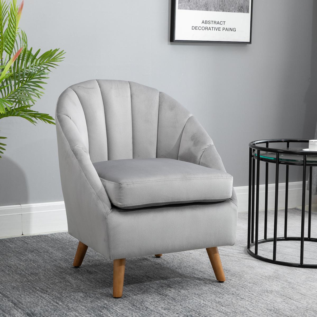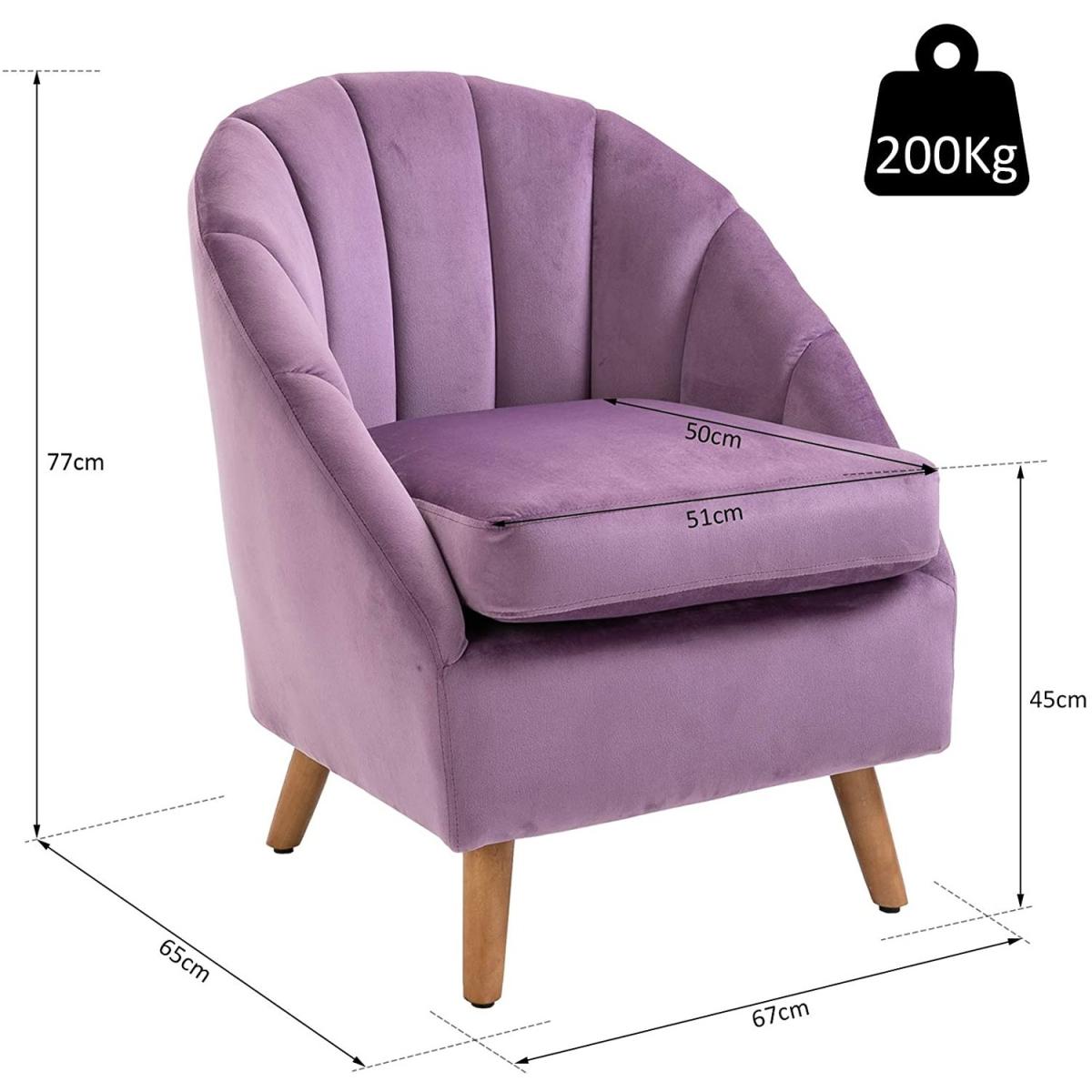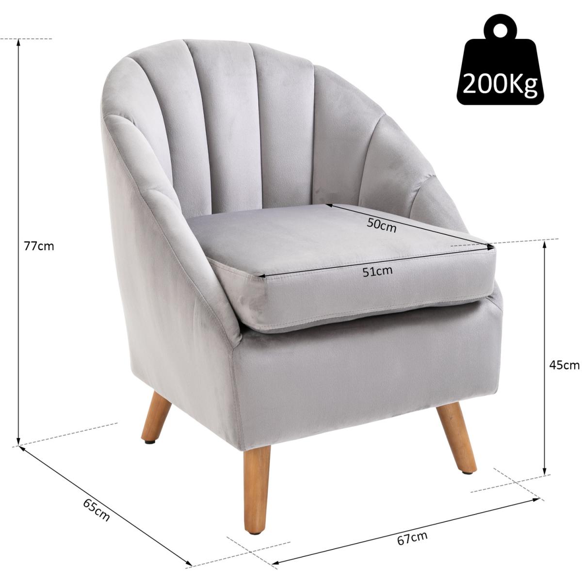 Allow yourself to indulge in comfort and sophistication with help from this single armchair from HOMCOM. Made from wood, the frame is strong and supportive for a weight up to 200kg, with it crafted into a curved, seashell style design for an inviting and sophisticated look. Thickly padded all over for prolonged comfort and fitted with four solid wood legs with anti-slip foot pads for stability and protection. It is finished with velvet look upholstery for an elegant focal point you won't ever regret having.