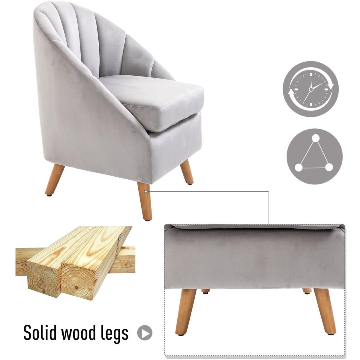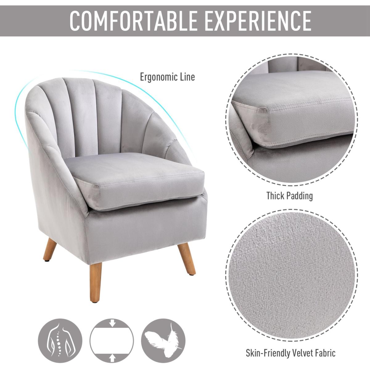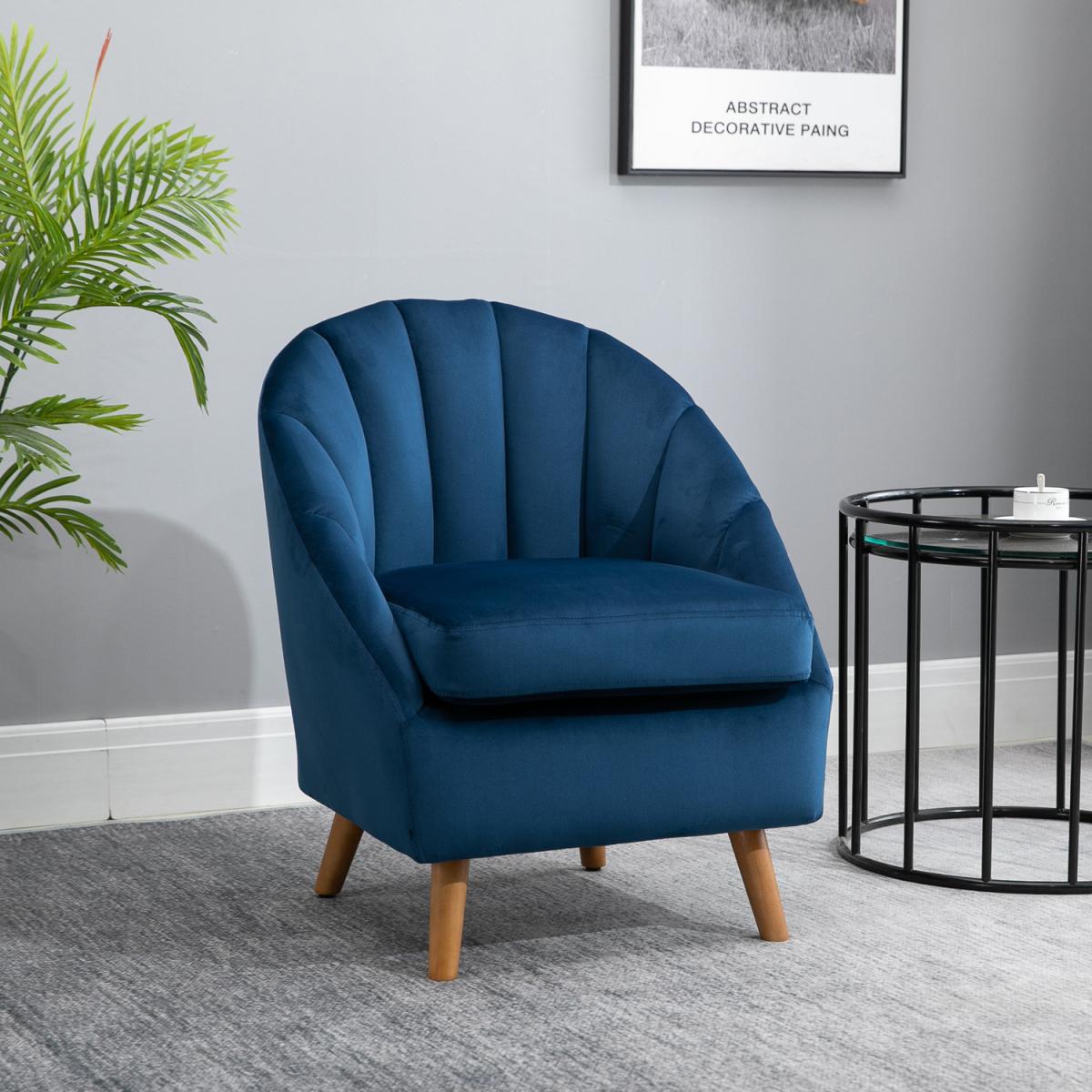 Allow yourself to indulge in comfort and sophistication with help from this single armchair from HOMCOM. Made from wood, the frame is strong and supportive for a weight up to 200kg, with it crafted into a curved, seashell style design for an inviting and sophisticated look. Thickly padded all over for prolonged comfort and fitted with four solid wood legs with anti-slip foot pads for stability and protection. It is finished with velvet look upholstery for an elegant focal point you won't ever regret having.