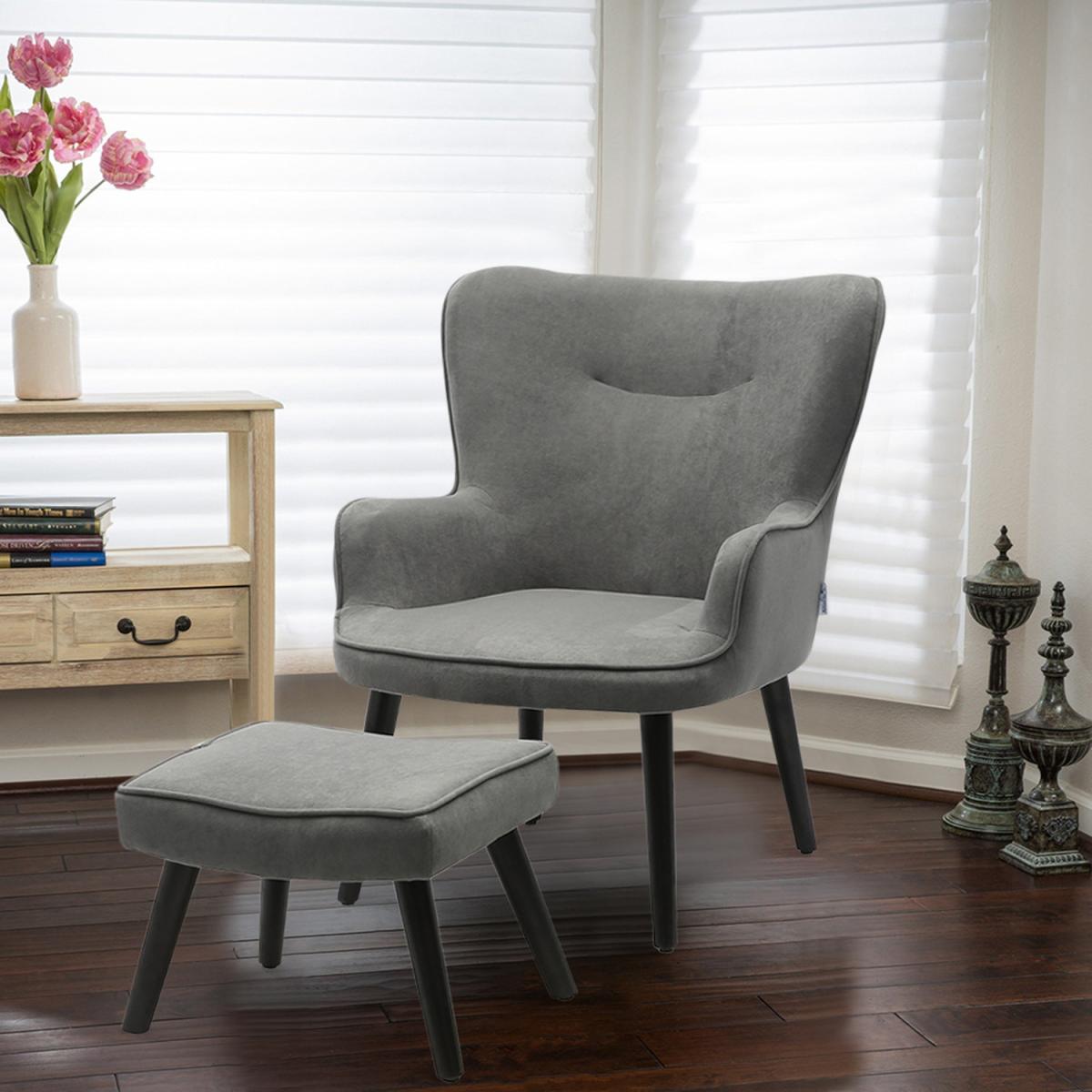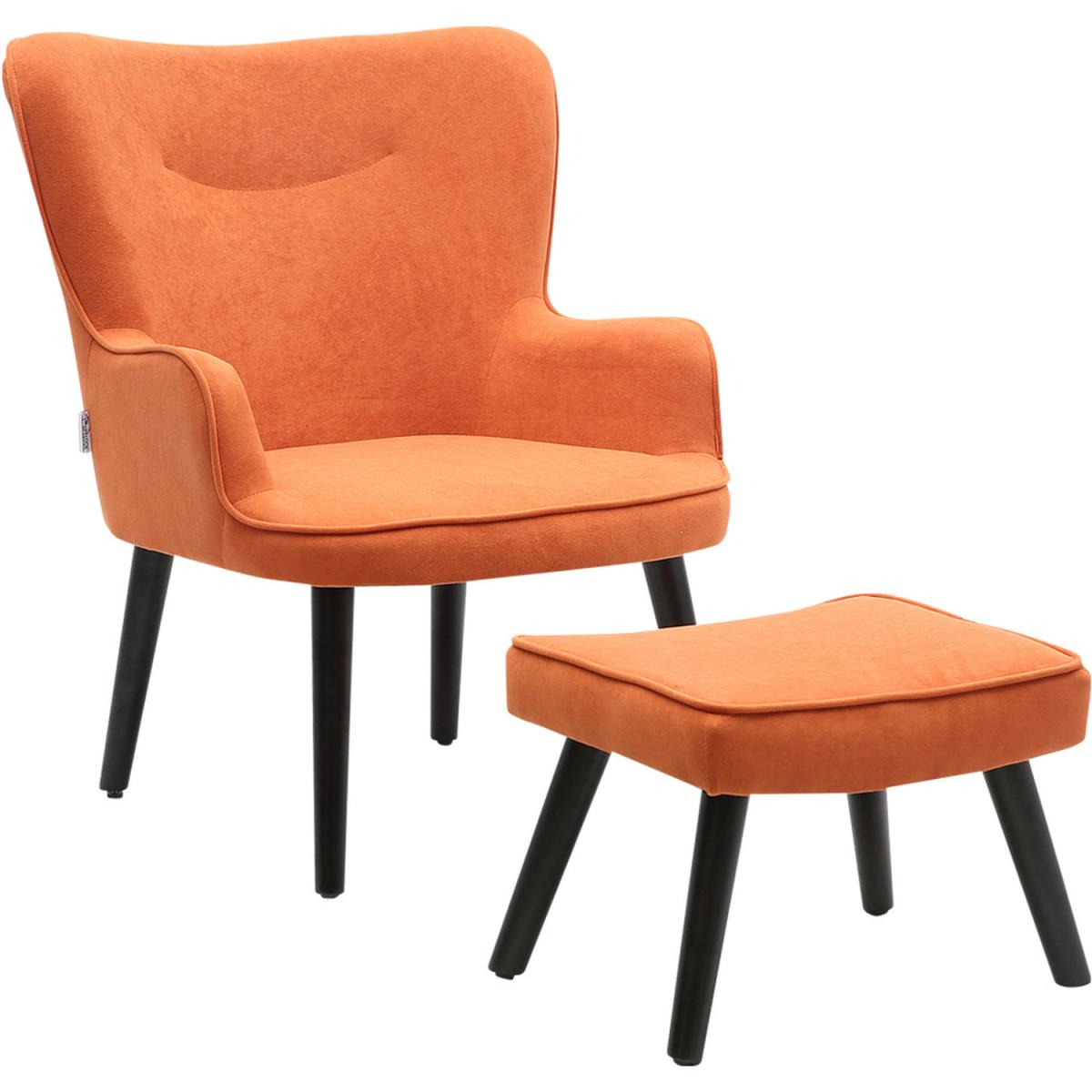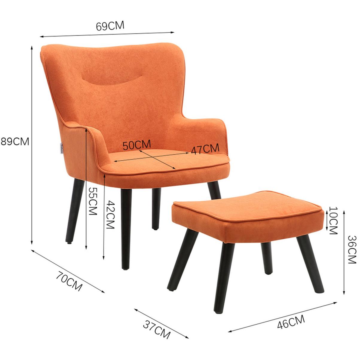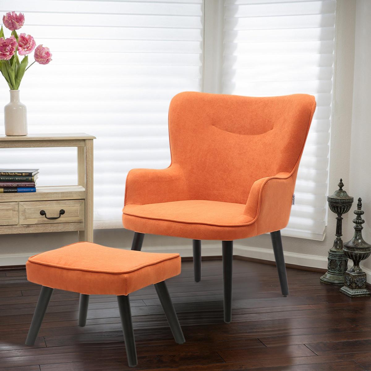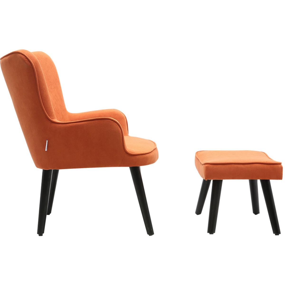 Velvet Smile Chair and Footstool - Orange