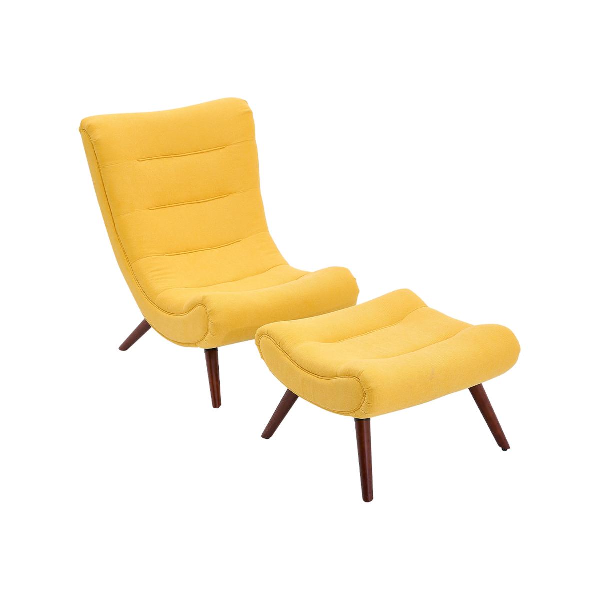 Velvet Sponge Lounge Chair with Footstool - Yellow