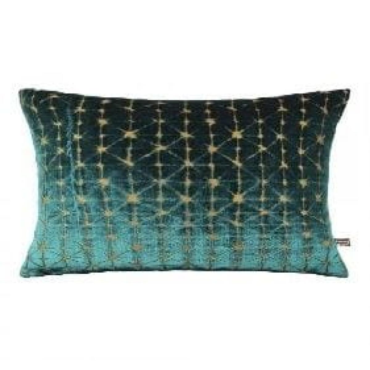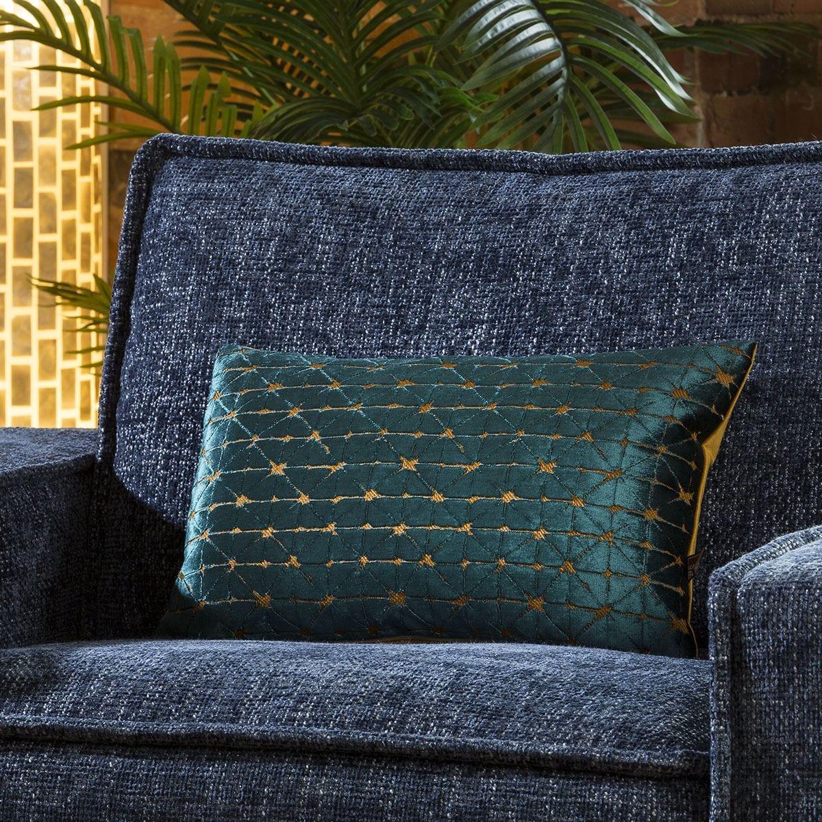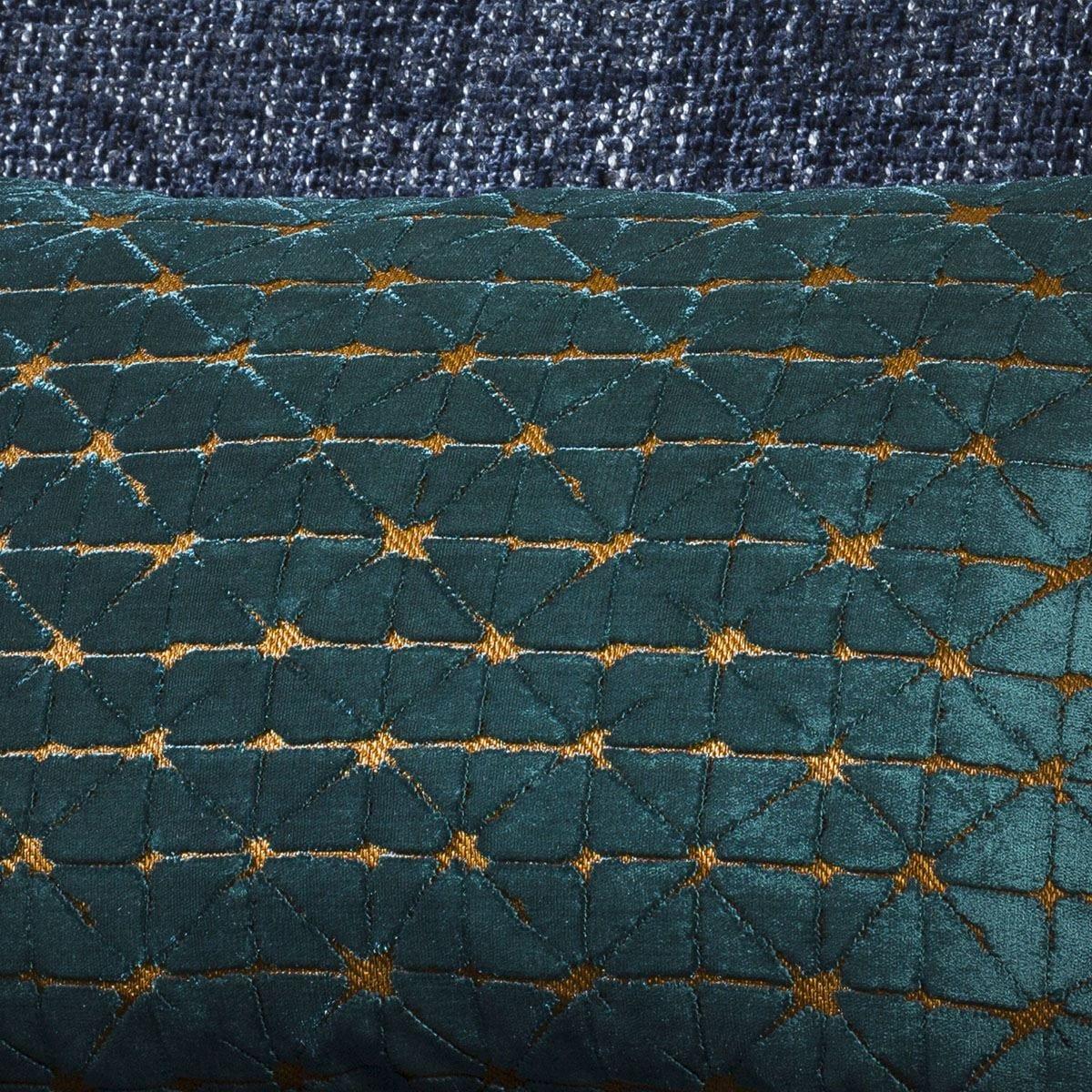 Velvet Starburst Diamond Bolster Cushion Pillow 350 x 500mm Teal Gold