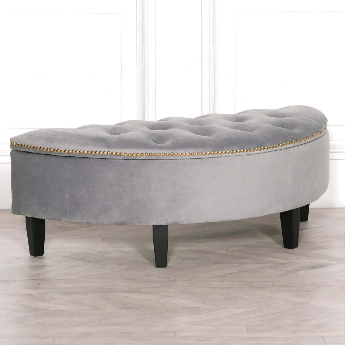 Velvet Storage Bench Ottoman with Black Legs - Grey