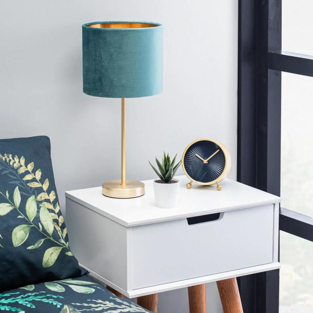 Our Velvet Table Lamp is the perfect addition to your home’s interior lighting arrangements, with a beautiful, Brass finished base reaching up to a gorgeous velvety Teal shade, creating a stylish contrast and giving off a mid-century modern vibe in your home. The warm light within is diffused through the velvet shade, projecting a soft, relaxed atmosphere through your room and reflecting the brass tones wonderfully.