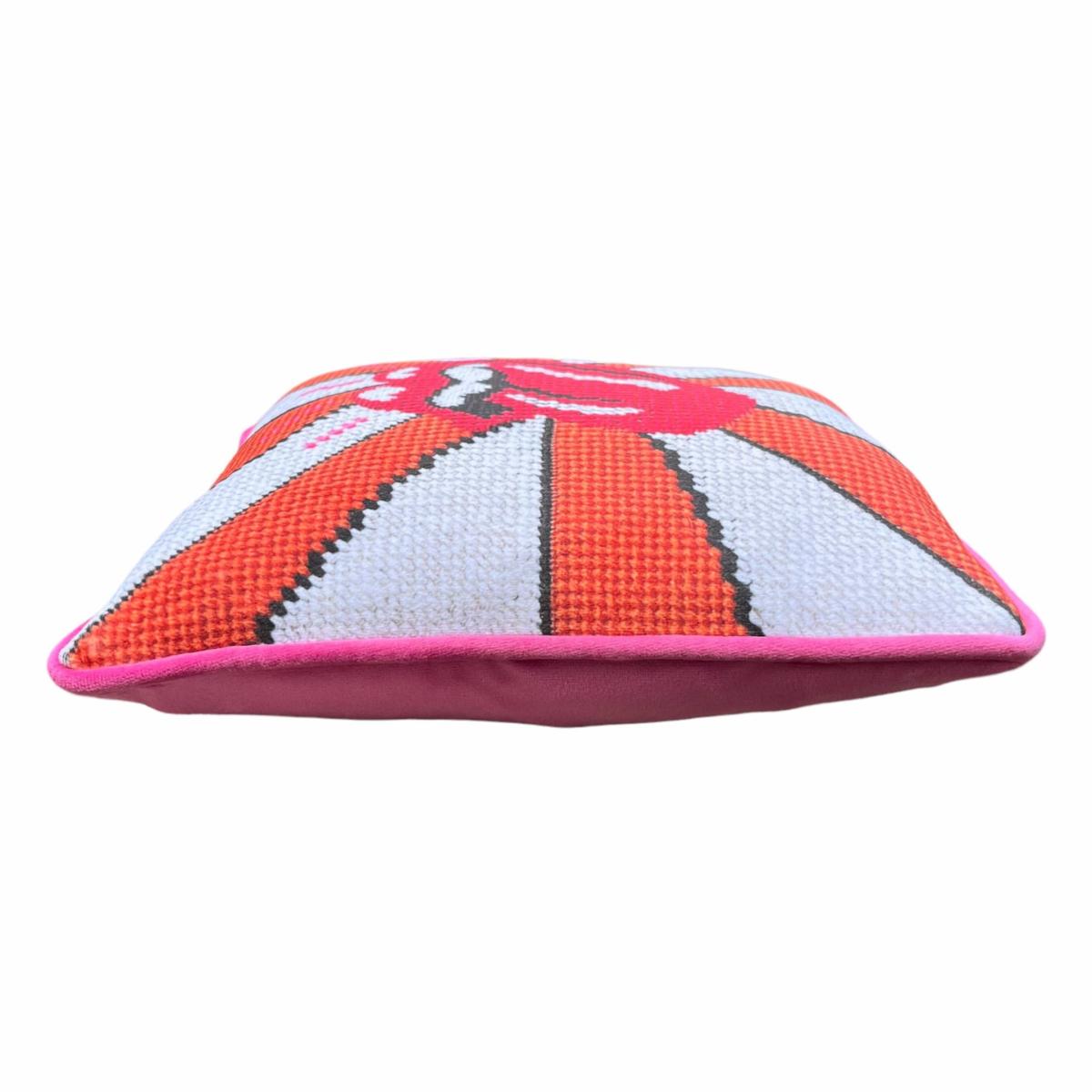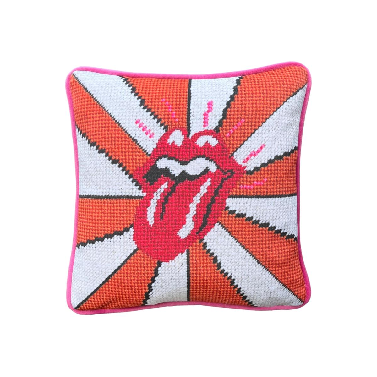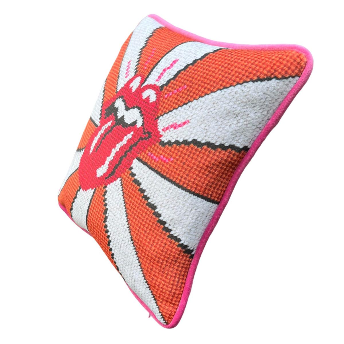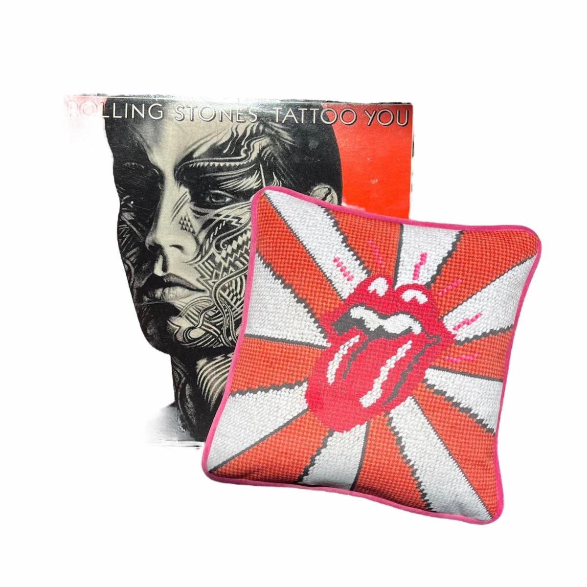 Not needlepoint Is that Keith or Mick's tongue? We never could figure that out. We added a little kick to the iconic logo with pink sparks and spinning wheel accent! custom made with crazy heart and soul
