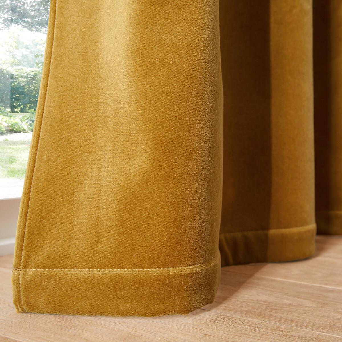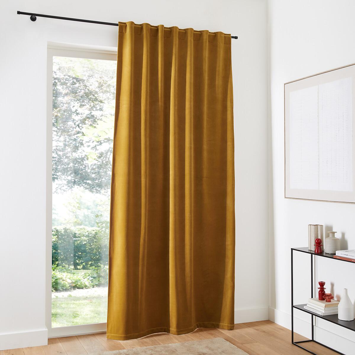Bring colour, softness and style to your interior with this velvet curtain: an excellent cut and superior finish for a truly luxury product!Warm and elegant, velvet is a soft, silky fabric with a tactile appearance. The tabs give a regular wave to the curtain and an impeccable straight fall. Hidden behind the fabric for an impeccable finish, they also hide the rod. Product Details • Thermal • 100% cotton, (230g/m²) • 100% polyester tone-on-tone fleece lining • Top finish : hidden legs • Finished bottom :Plain hemmed edging. To help you in the choice and maintenance of your curtains, do not hesitate to consult our guide by typing "Curtain Buying Guide" in our search engine on the site. Care Advice • Machine washable at 30°C • Maximum shrinkage after washing : Approximately 5 to 7%. Fabrics made from natural fibres may shrink in the first wash. Always wash your curtains before making any alterations. • Do not tumble dry • If you don't need to iron them (linen curtains, Voile Panel...), let the curtains air dry by hanging them immediately after washing, making sure to spread them out to their full width. • If you want to iron your curtains, we recommend using a low-temperature steam iron or a steamer. Dimensions • Drop 180 x W135cm • D220 x W135cm • D260 x W135cm • Drop 300 x W135cm • Drop 350 x W135cm • OEKO-TEX® Standard 100. Standard 100 certification by OEKO-TEX® tests textile products for harmful substances via an independent, international label.