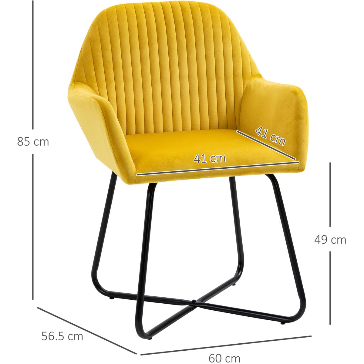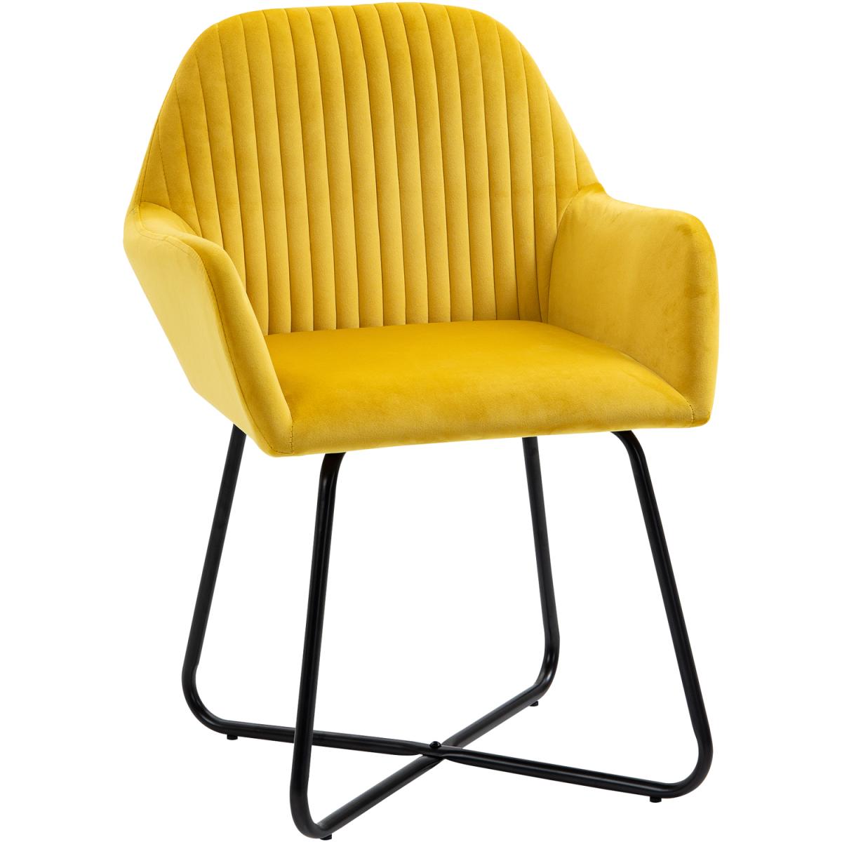Velvet Upholstered Accent Chair with Metal Base Armrests - Yellow