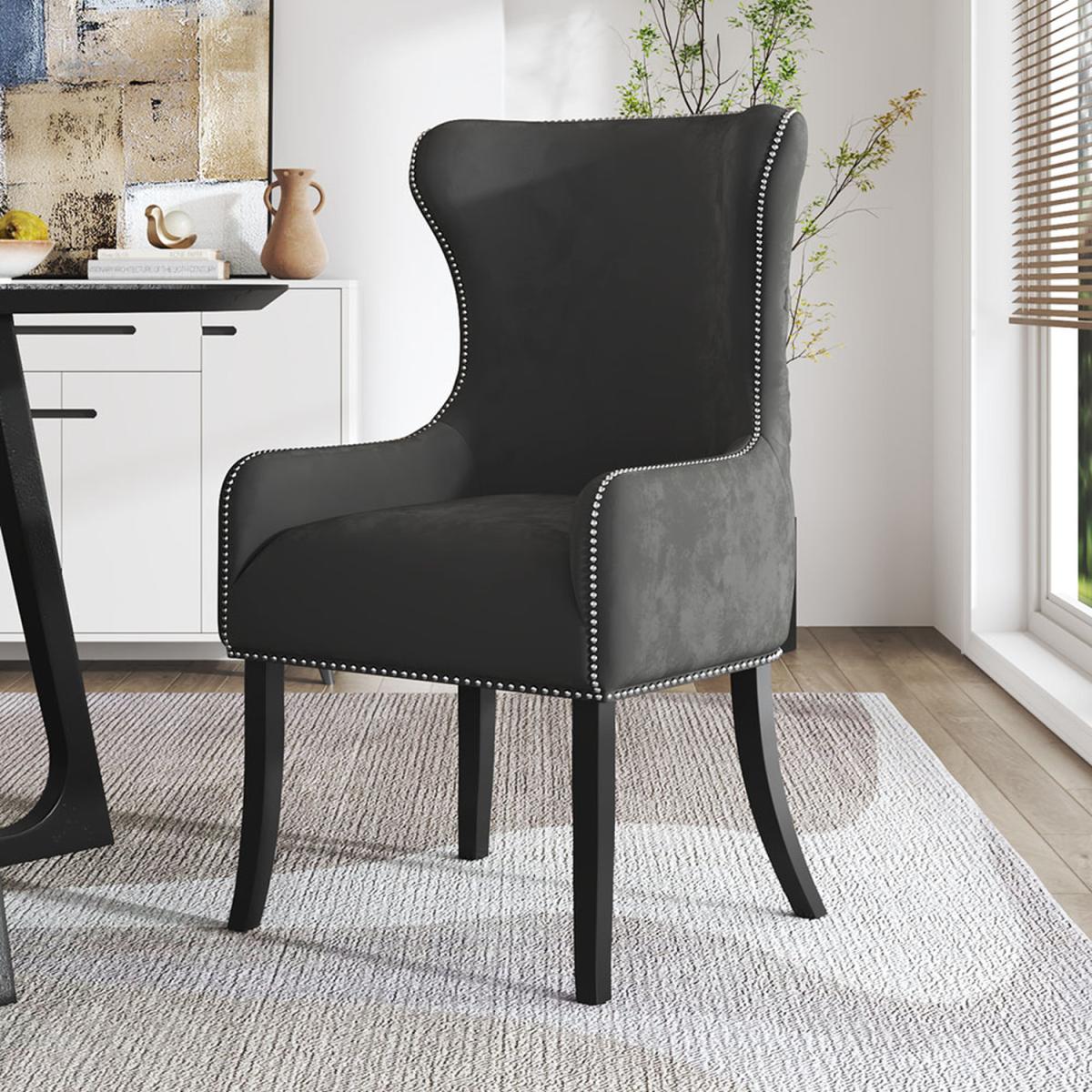 Velvet Upholstered Dining Chair with Nailhead Trim - Coffee