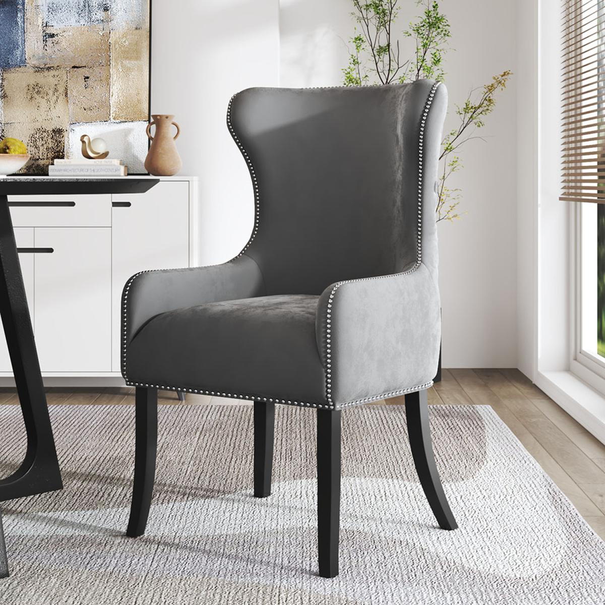 Velvet Upholstered Dining Chair with Nailhead Trim - Grey