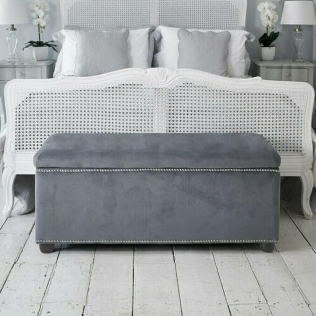 Velvet Upholstered Ottoman Storage Box - Grey Monaco / Non-Tufted Lid