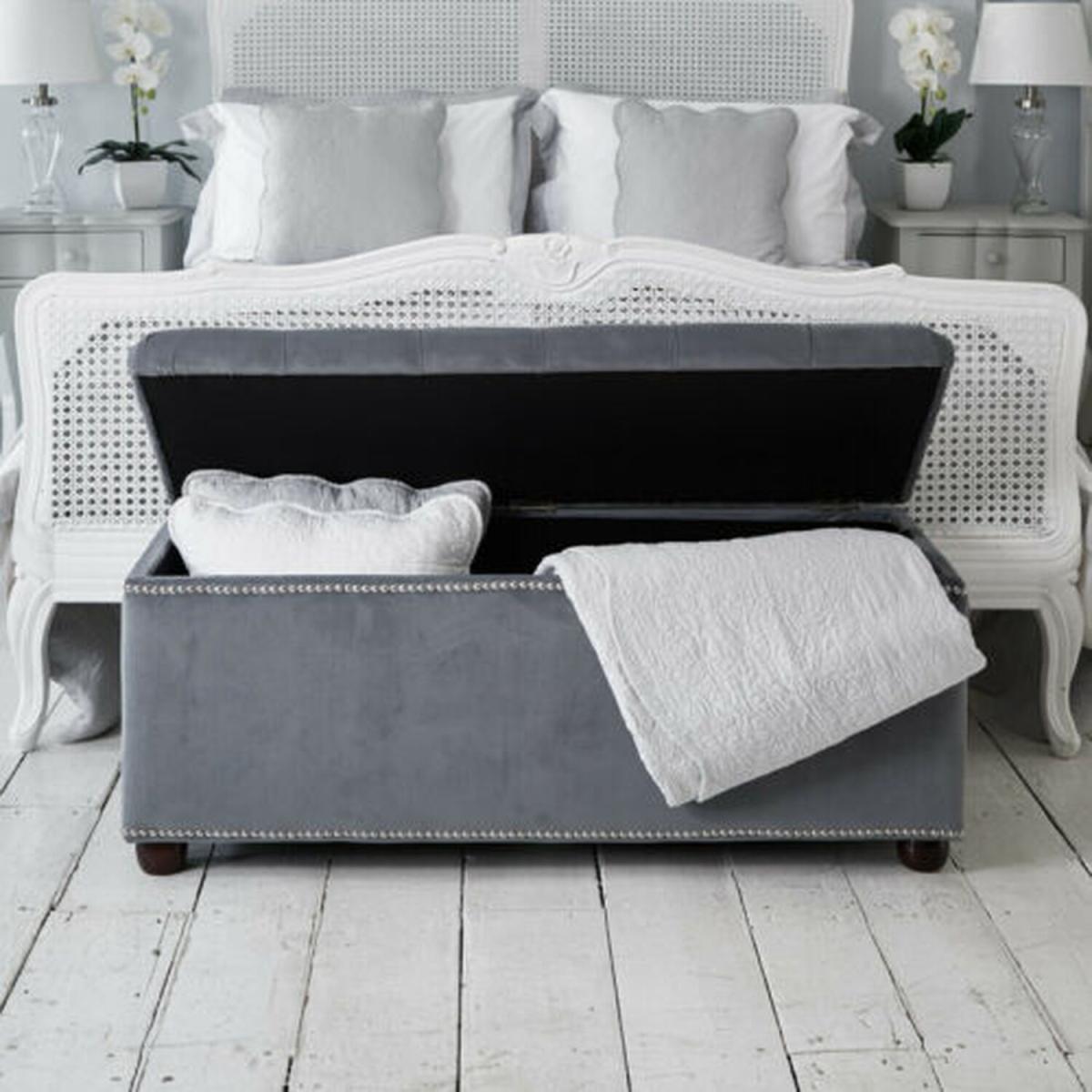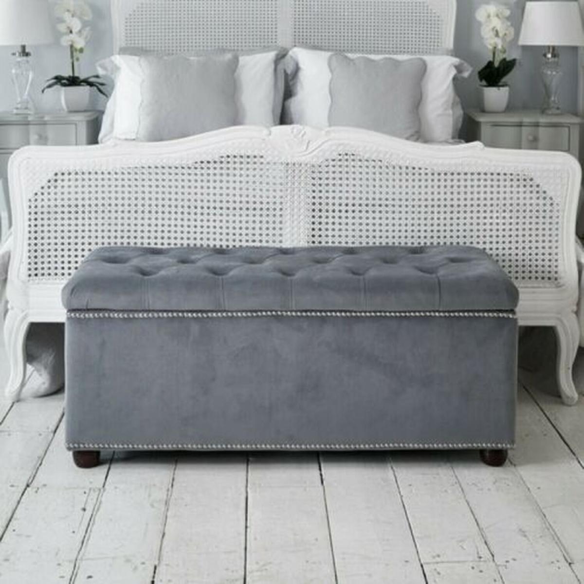 Velvet Upholstered Ottoman Storage Box - Grey Monanco / Tufted Lid