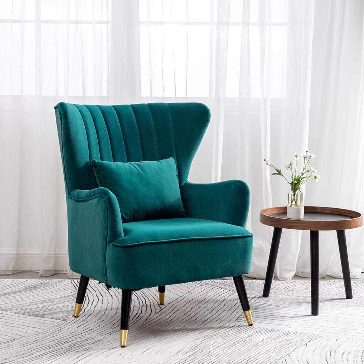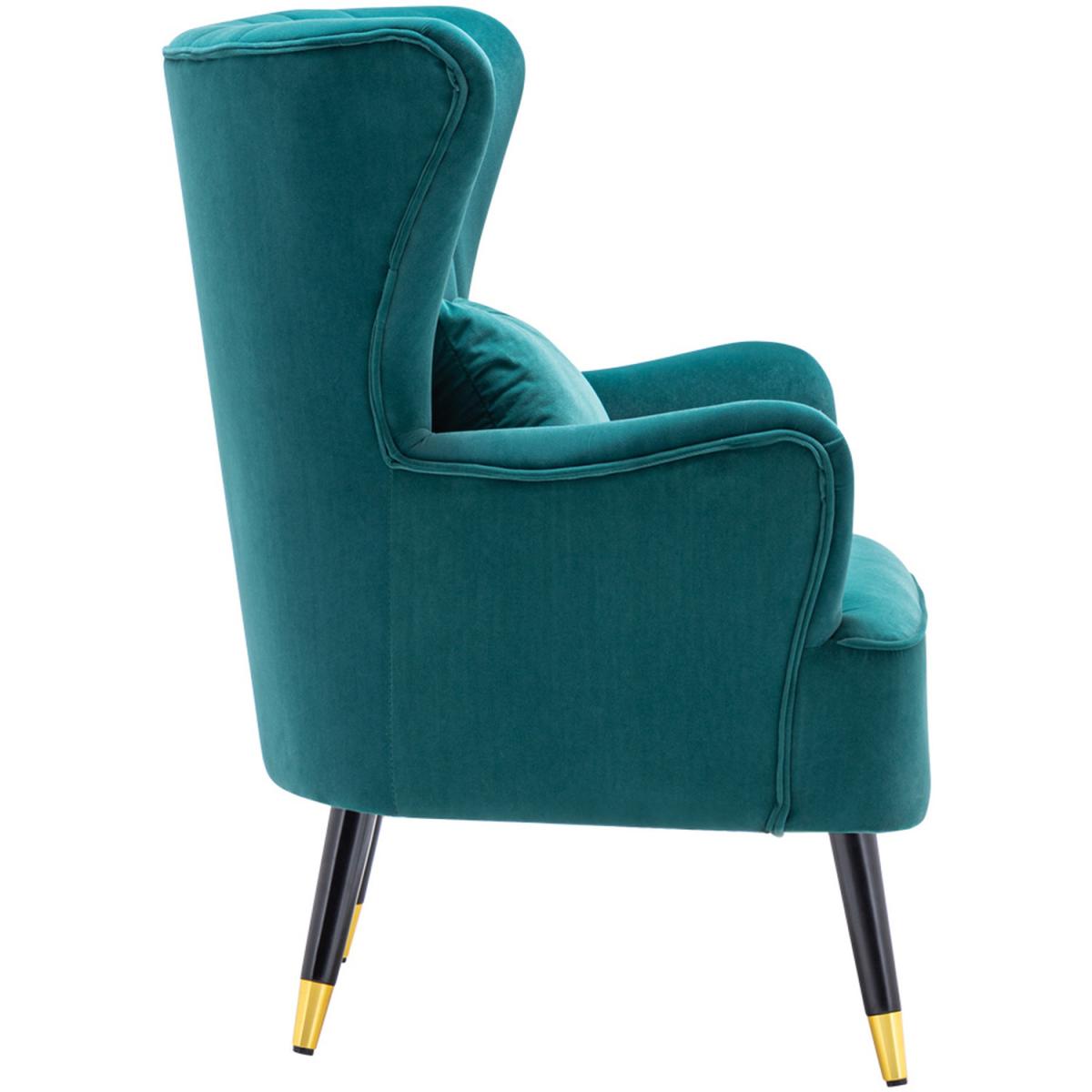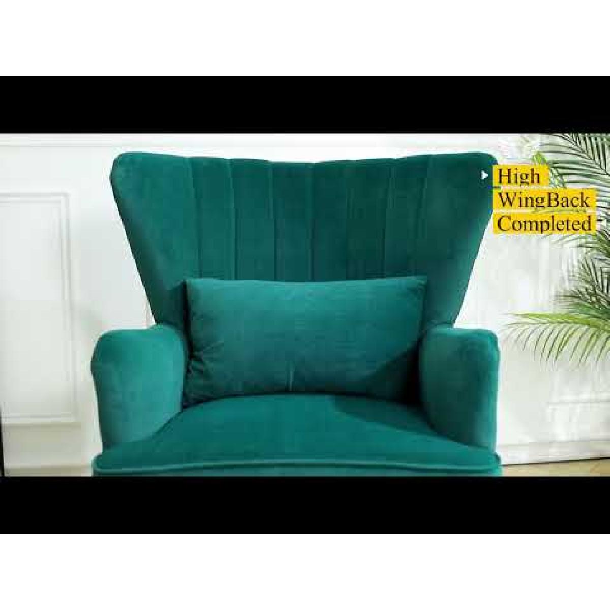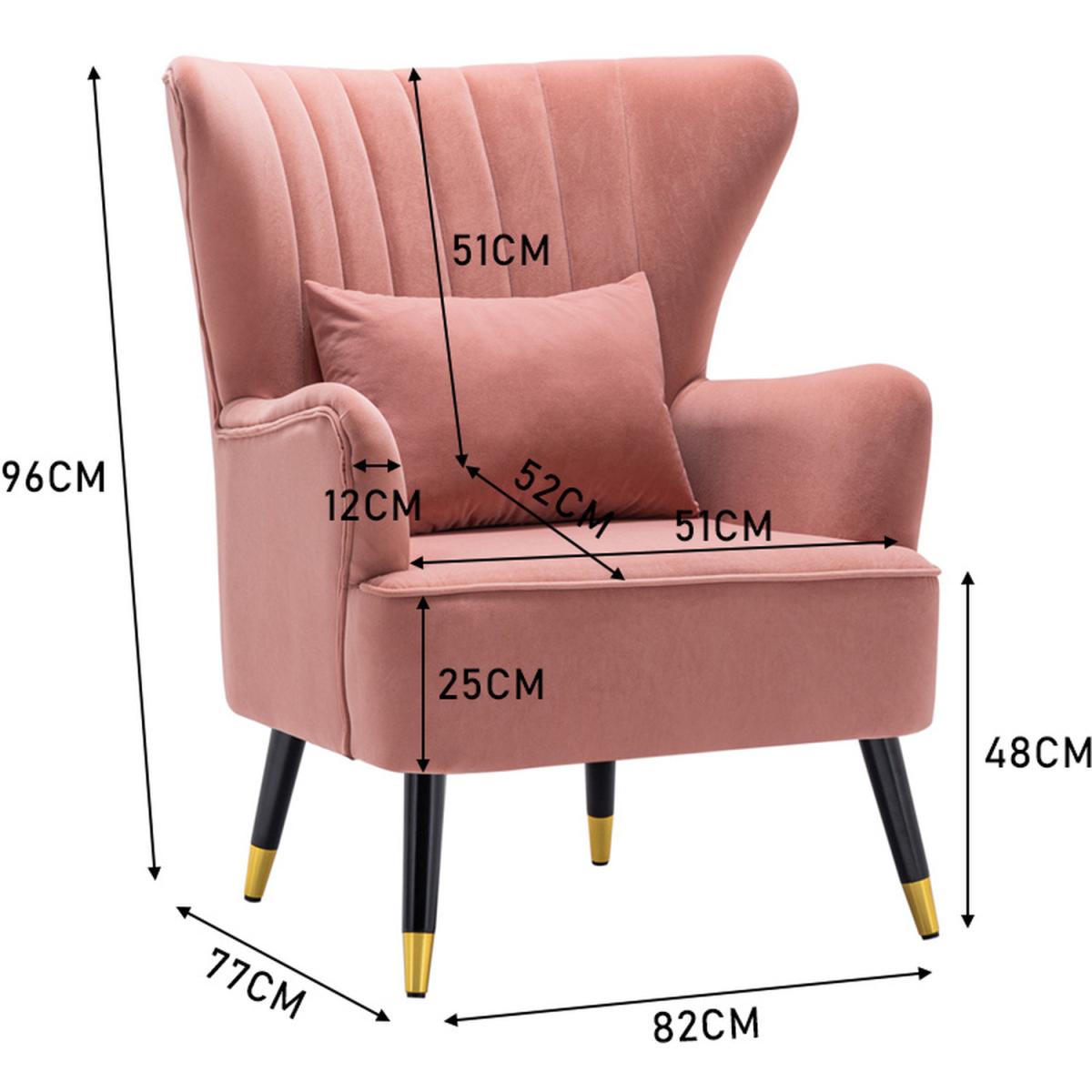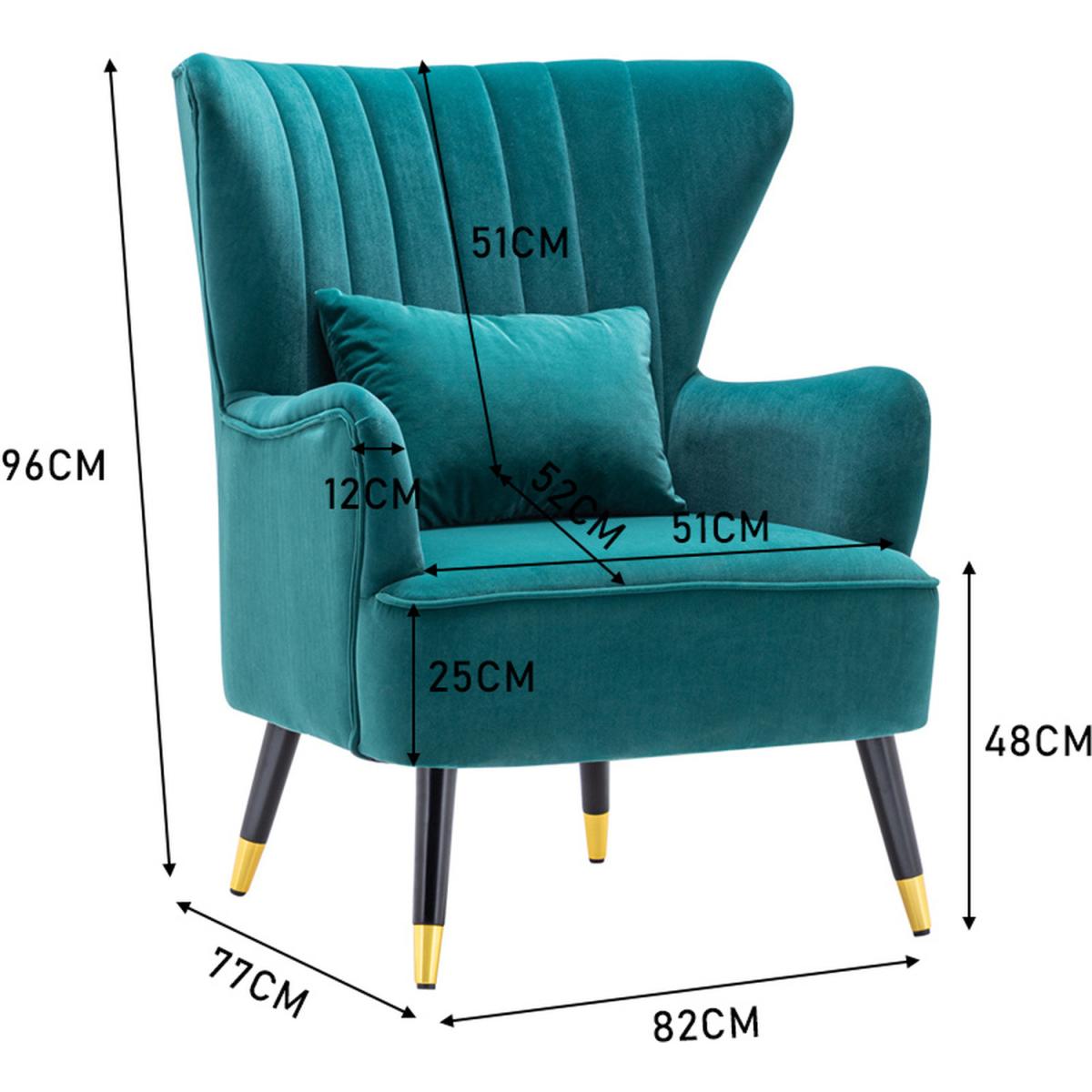 Choose this elegant single chair and decorate your home. The Chair finished with wooden legs and has a pillow, which offers a more comfortable resting place. The angle formed by the wingback and armrest adds a sense of design to the chair. Its plush padding is upholstered in velour fabric in a selection of colours. Assembly is required.