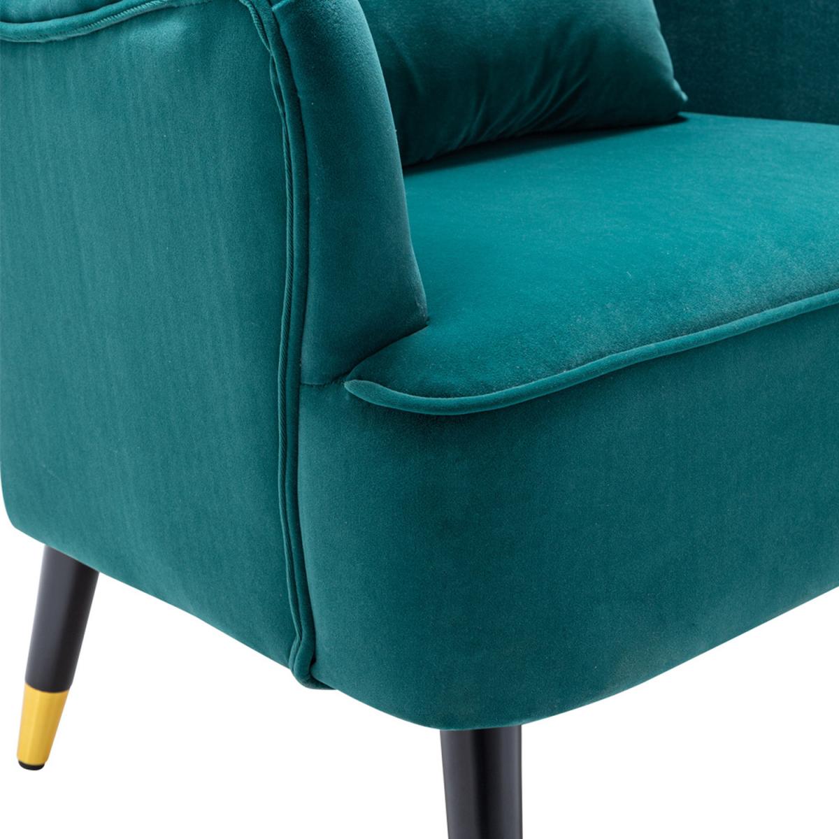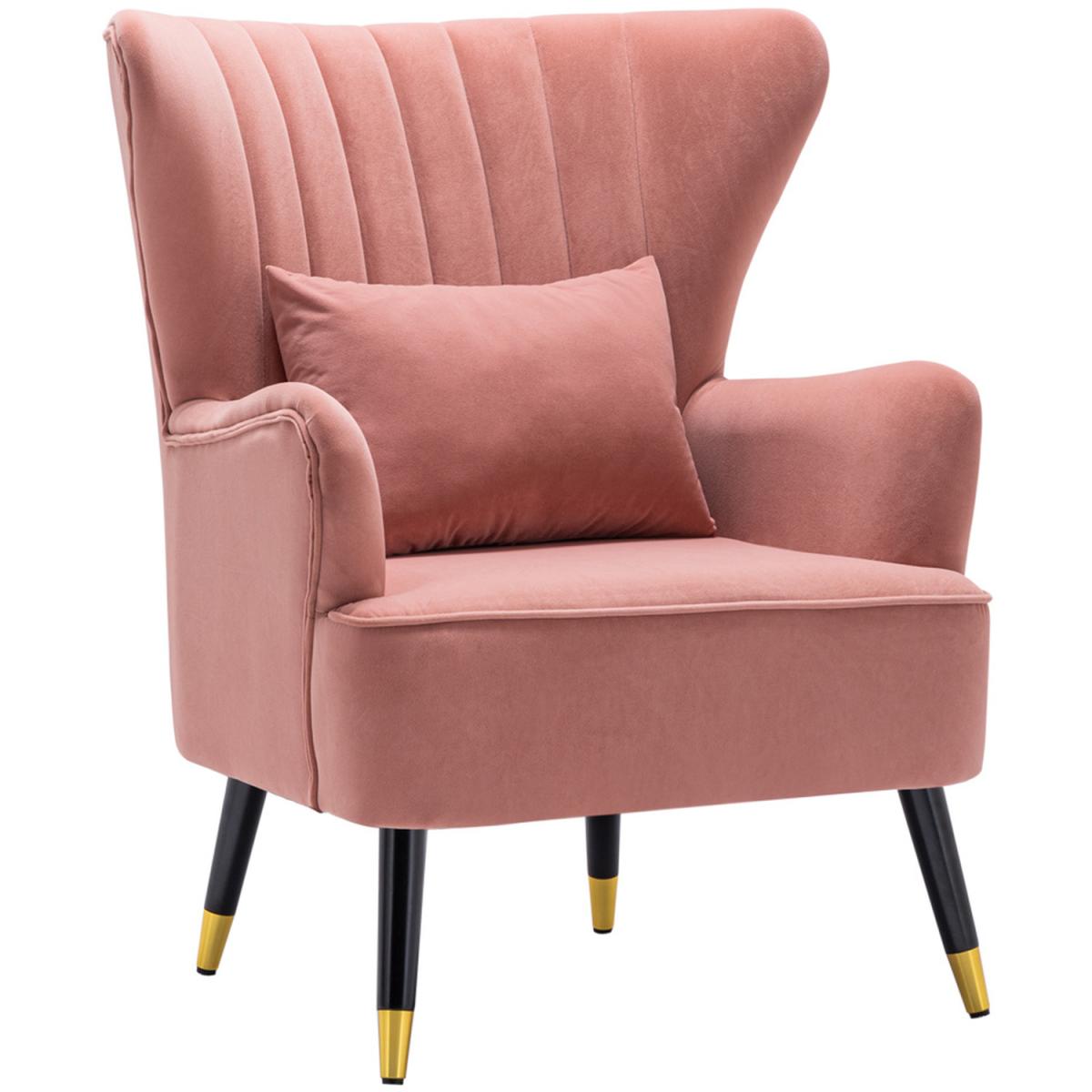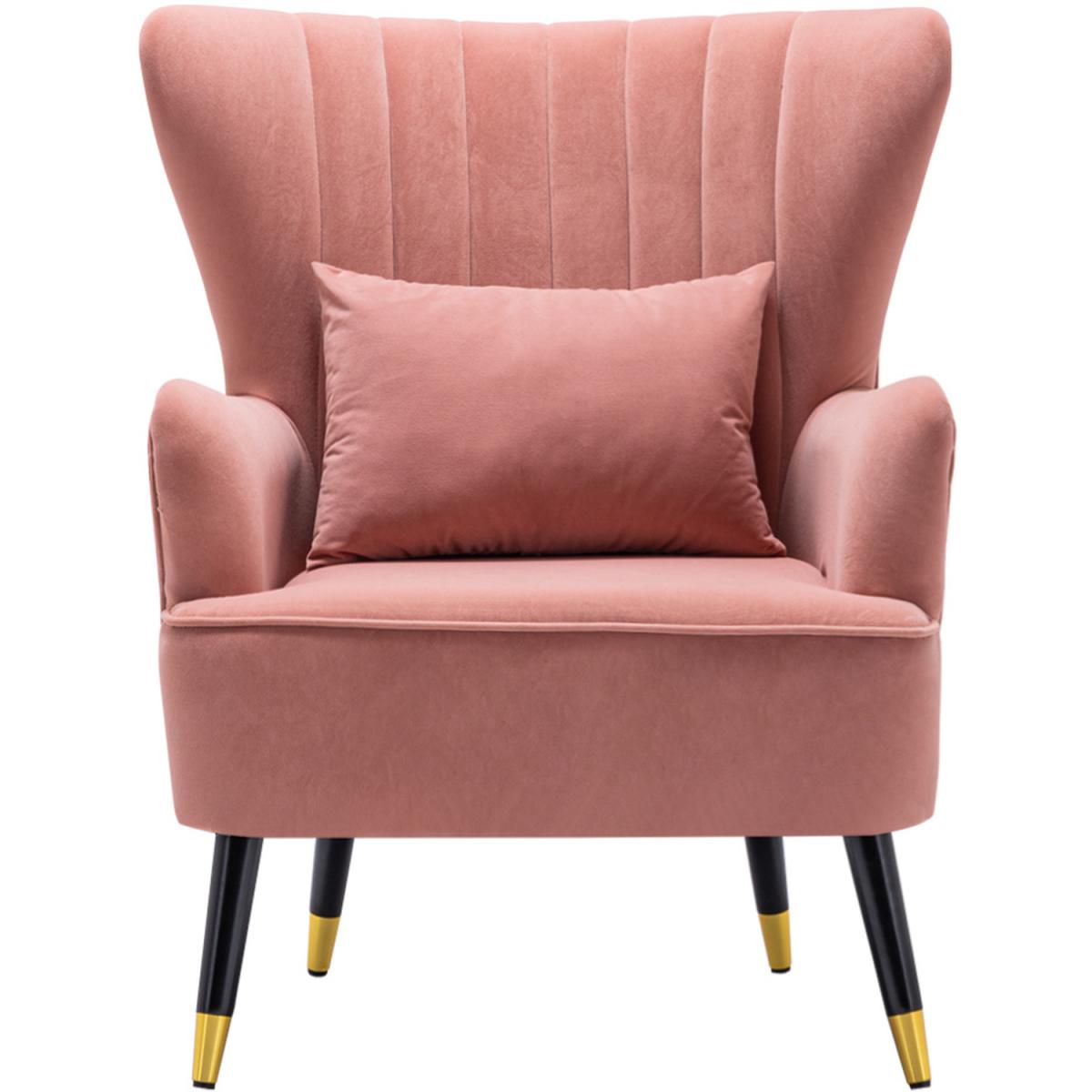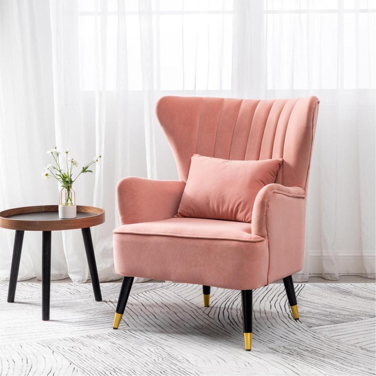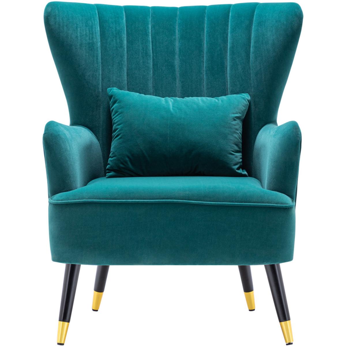 Choose this elegant single chair and decorate your home. The Chair finished with wooden legs and has a pillow, which offers a more comfortable resting place. The angle formed by the wingback and armrest adds a sense of design to the chair. Its plush padding is upholstered in velour fabric in a selection of colours. Assembly is required.