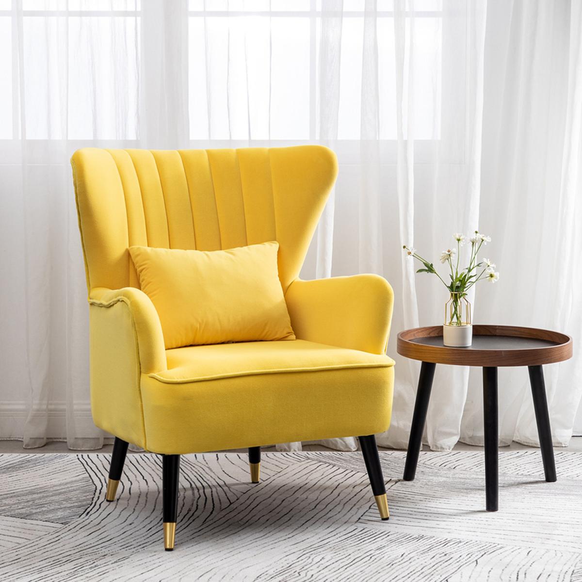 Velvet Wingback Accent Chair - Yellow